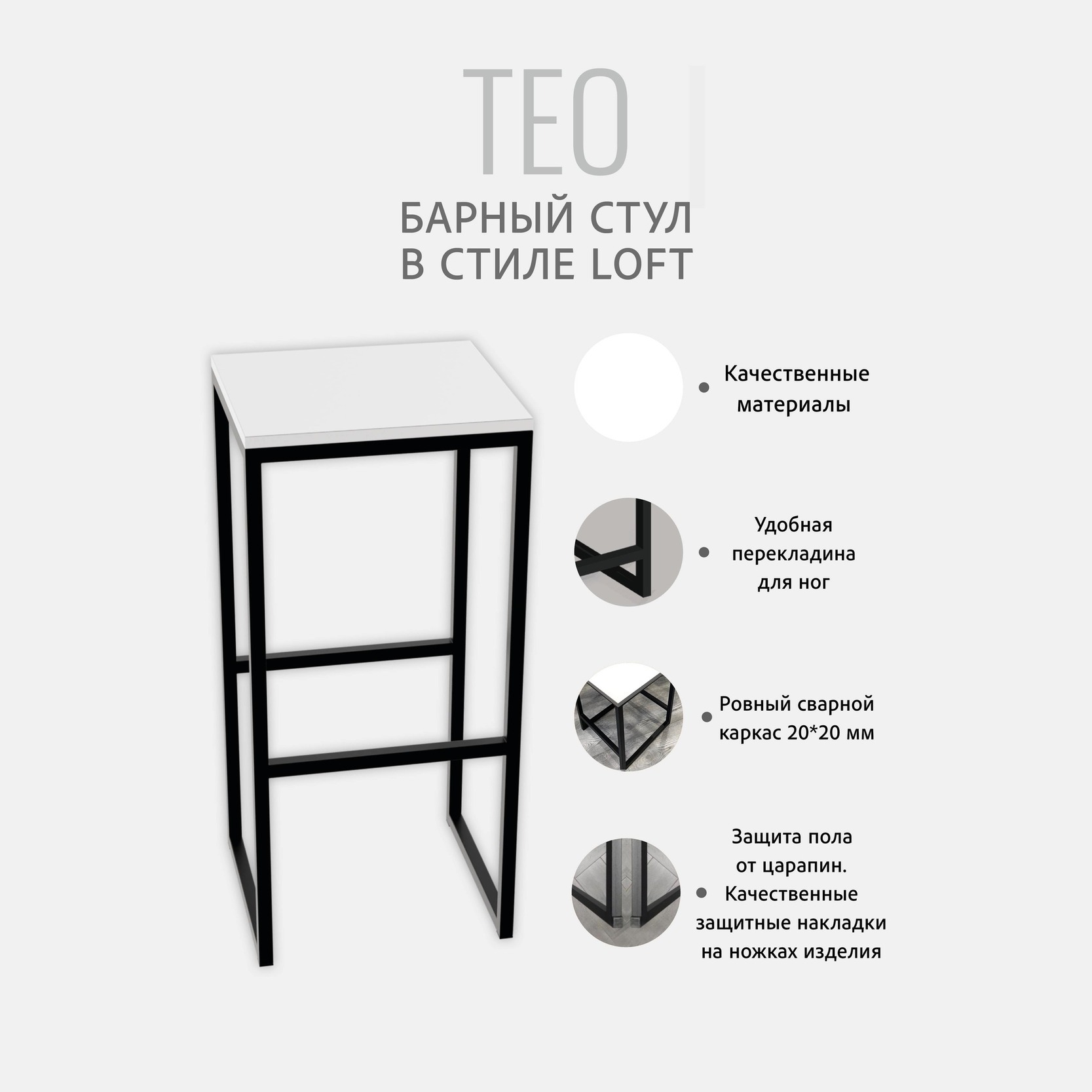 Стул барный кухонный ТEO в стиле лофт. Наши современные стулья прекрасно впишутся в интерьер кухни, столовой, гостиной, кафе и ресторанов, где присутствует скандинавский стиль.Стул для кухни: высокий, лаконичен, прост и компактен. Высокий обеденный стул из дерева без спинки идеально сочетается с дизайном мебели икеа (ikea), hoff и подойдет для обеденной зоны в гостиной, он станет отличным дополнением балкона и лоджии.