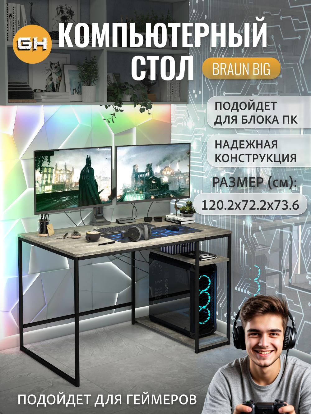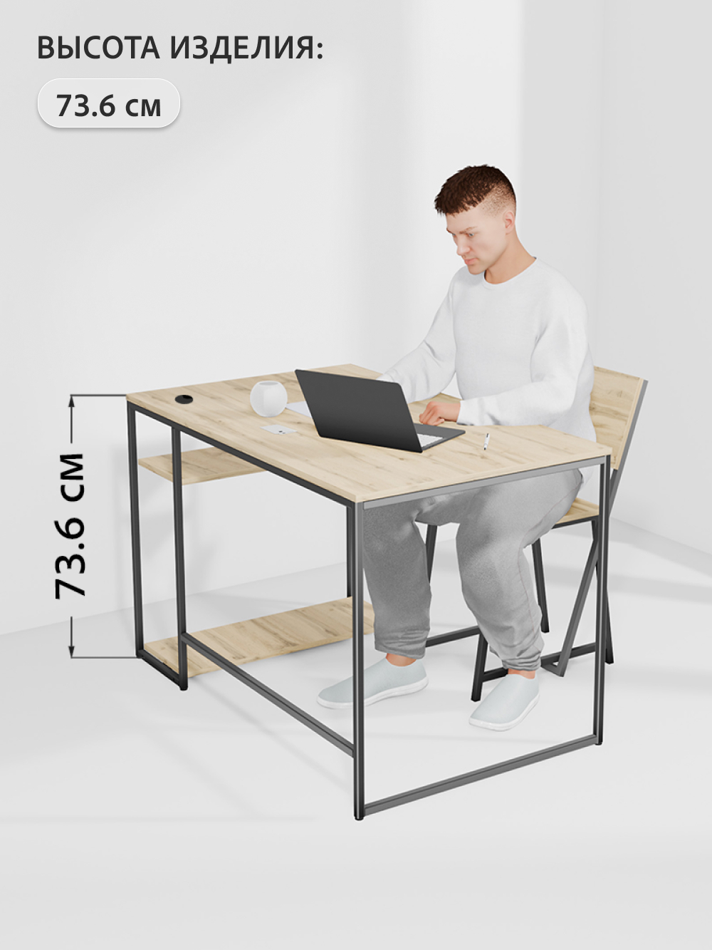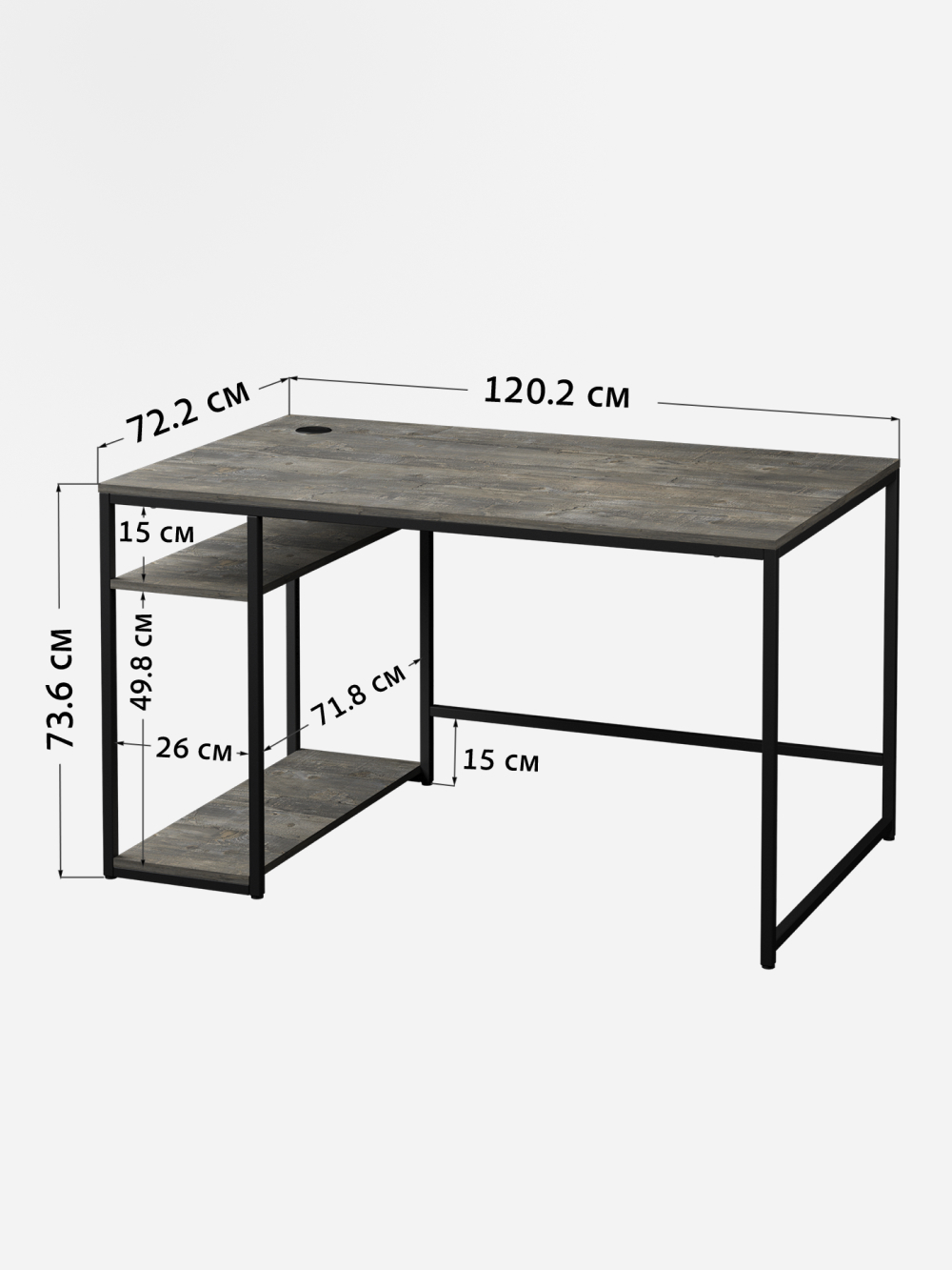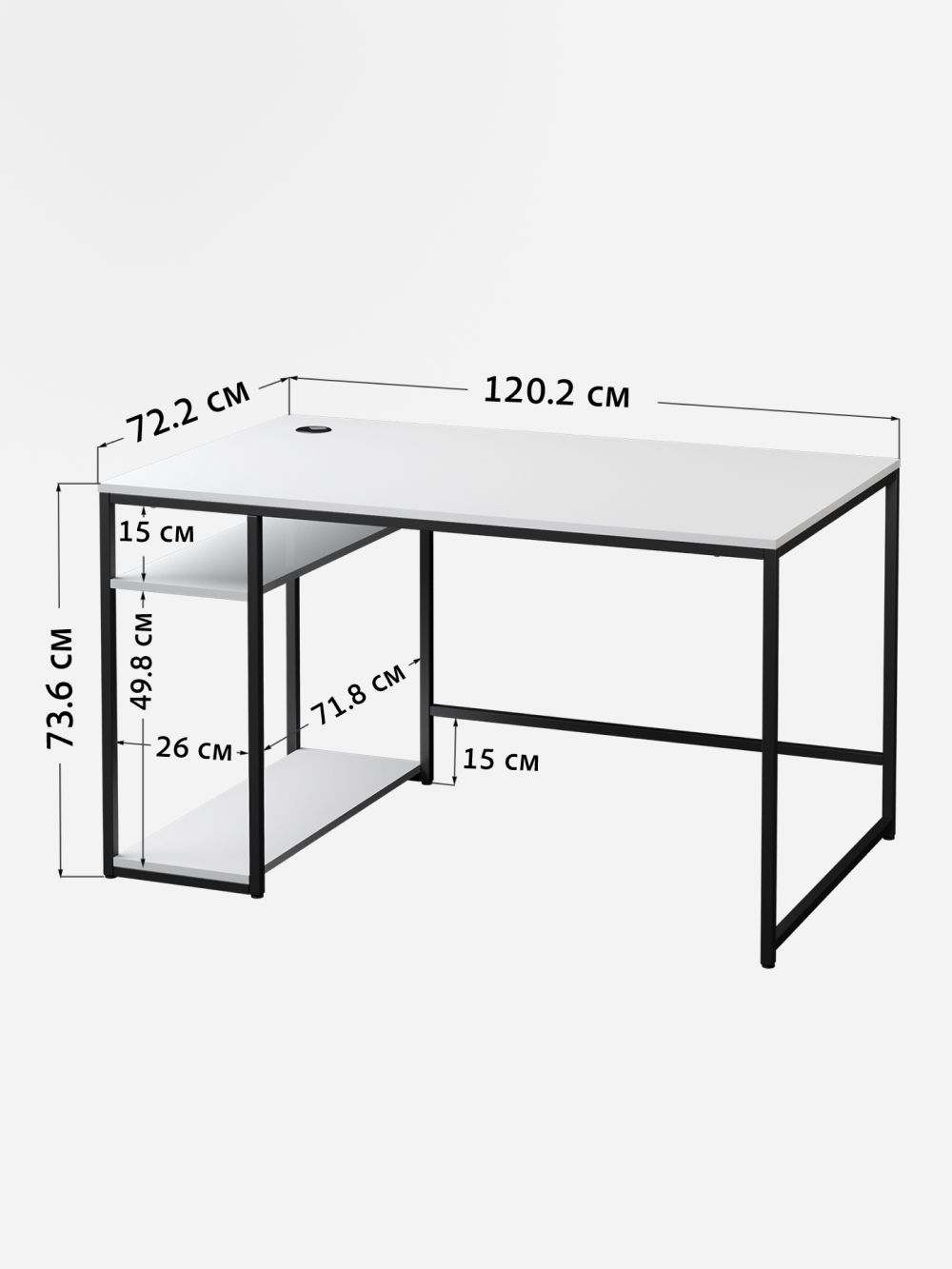 — Просторная столешница (120×72,2 см) из прочного ЛДСП с ламинированным покрытием устойчива к ударам, влаге и царапинам.