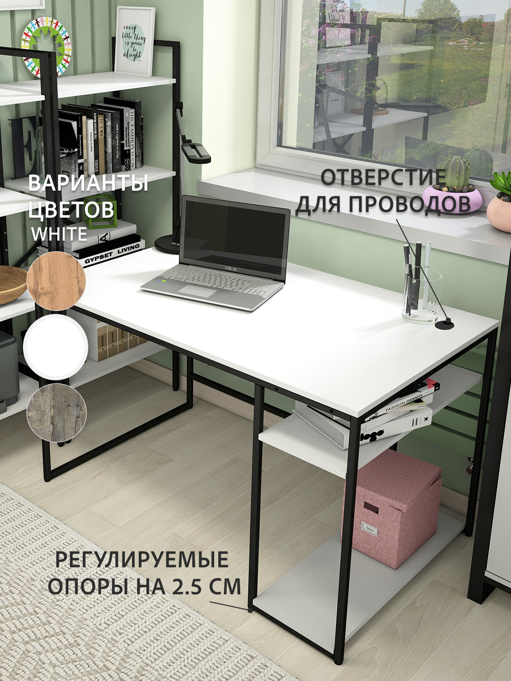 — Удобное хранение вещей благодаря полкам и подставке под системный блок.