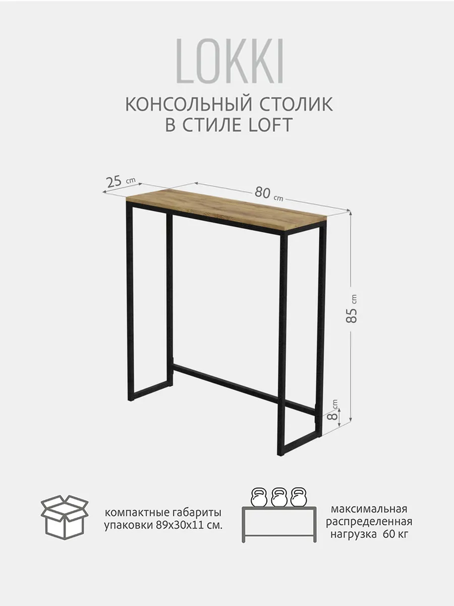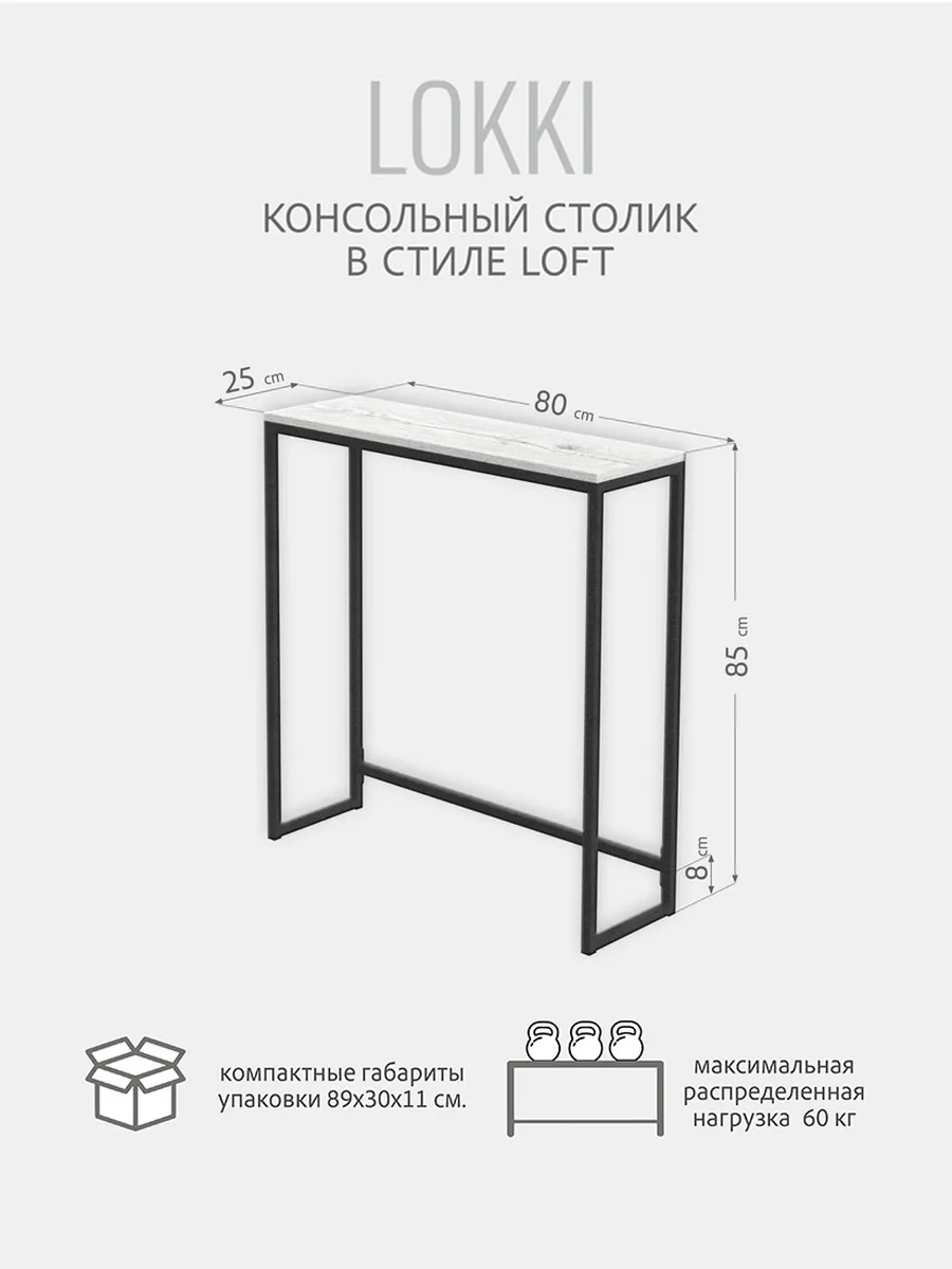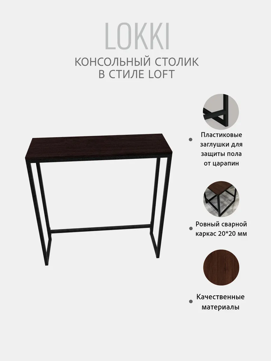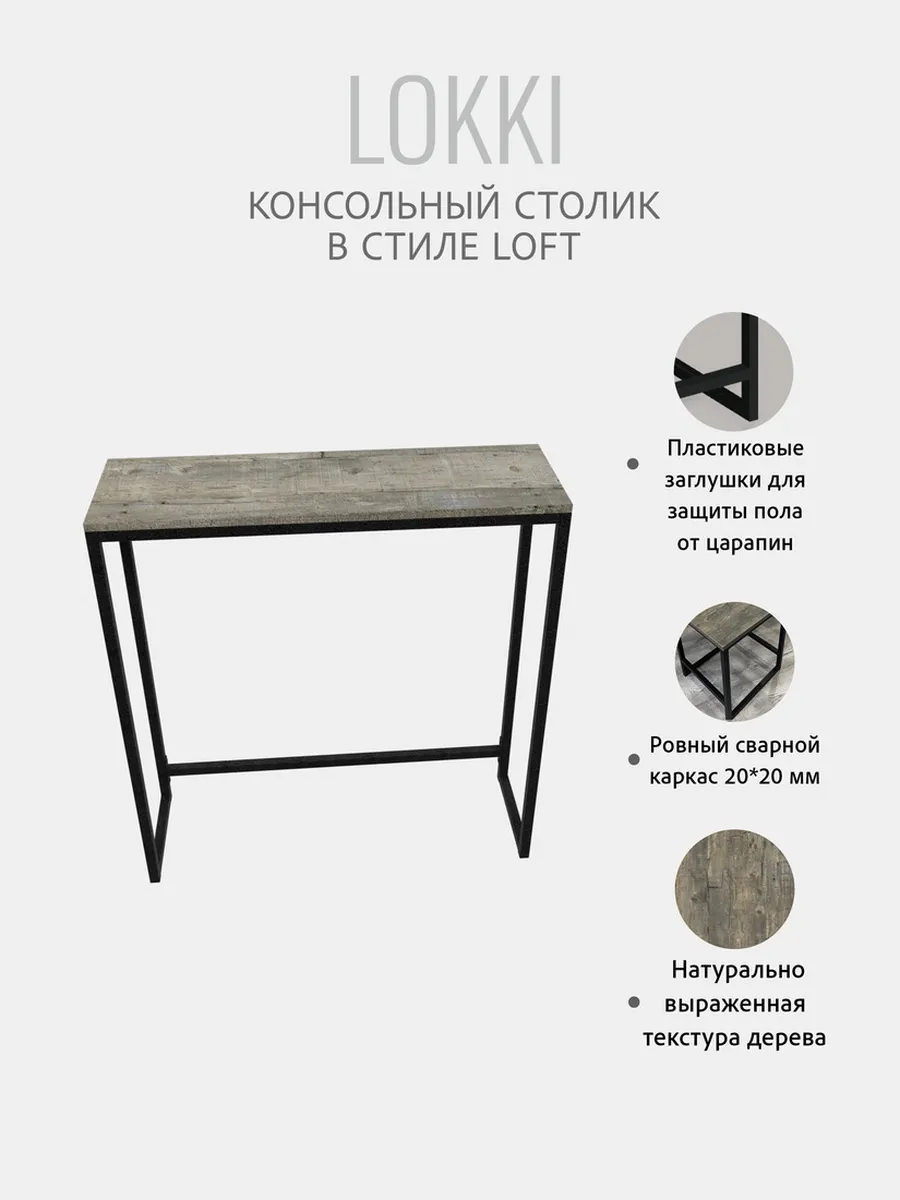 Консольный столик LOKKI изготовлен в стиле лофт. Конструкция туалетного столика проста и лаконична. Консоль можно применить в любой зоне вашей квартиры, в доме, в прихожей, в спальне, в офисе, в гостиной, на кухне, в мастерской.