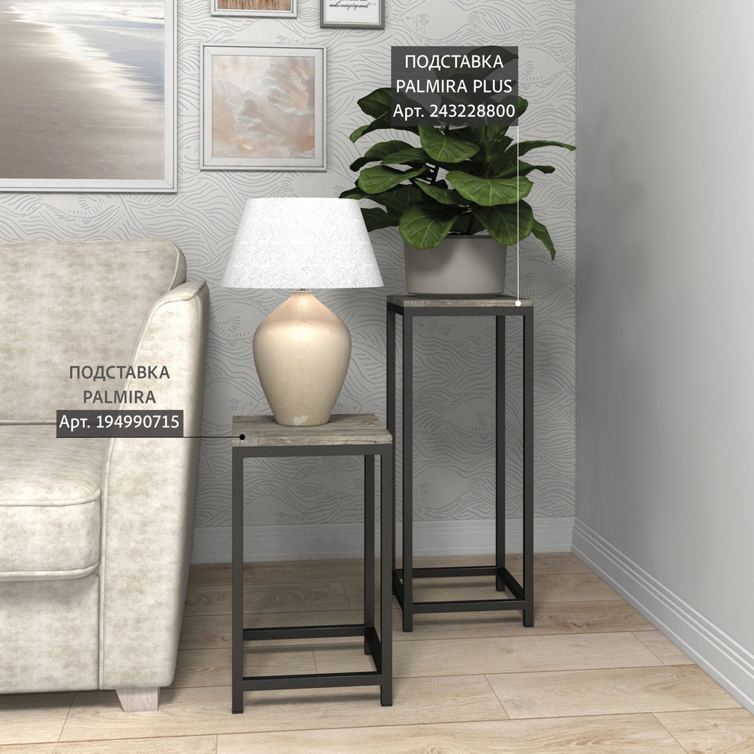 Подставка для цветов в стиле лофт изготовлена из прочного усиленного металлического каркаса, что позволяет выдерживать вес 30 кг, столешница изготовлены из высококачественного ЛДСП, толщиной 16 мм, покрытое влагозащитным ламинированным покрытием, которое является водонепроницаемым, устойчивым к царапинам и легко моется. Устойчивая конструкция позволяет без труда передвигать подставку в любое удобное место.