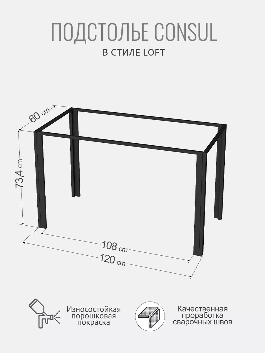 Подстолье для стола CONSUL выполнено из прочного металла, что обеспечивает его долговечность и надежность. Оно идеально подходит для создания стильной и современной мебели в стиле лофт. В комплект входят ножки - 2 штуки, которые не только служат опорой для столешницы, но и придают изделию эстетически привлекательный вид. Мебельное подстолье подходит для кухонных и обеденных столов, компьютерных и письменных столов.