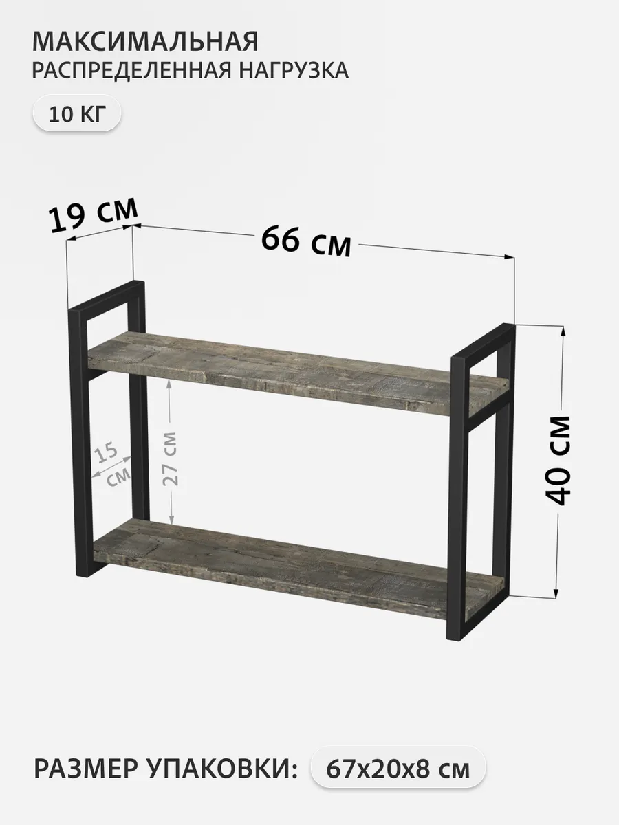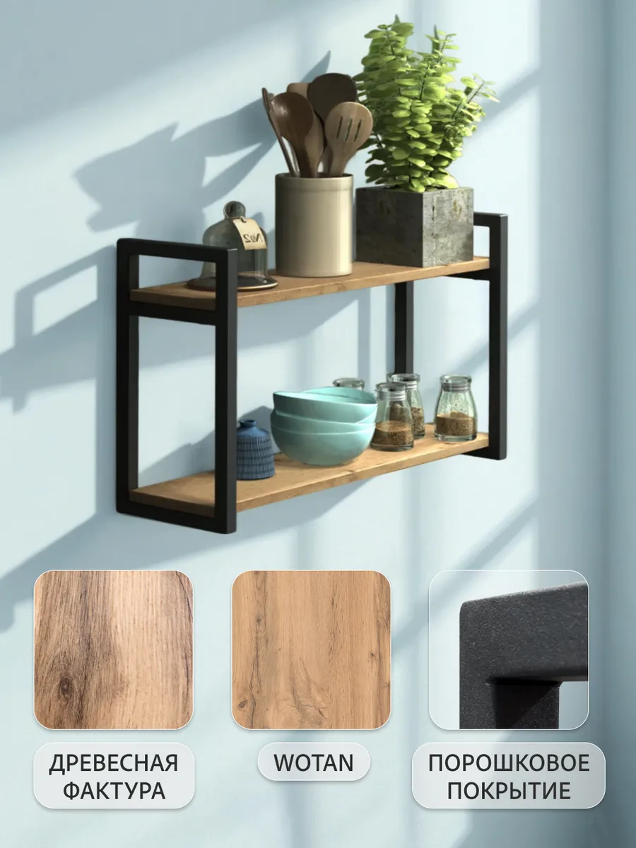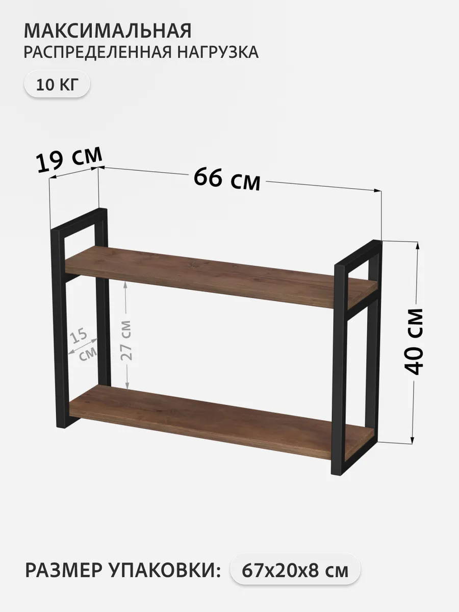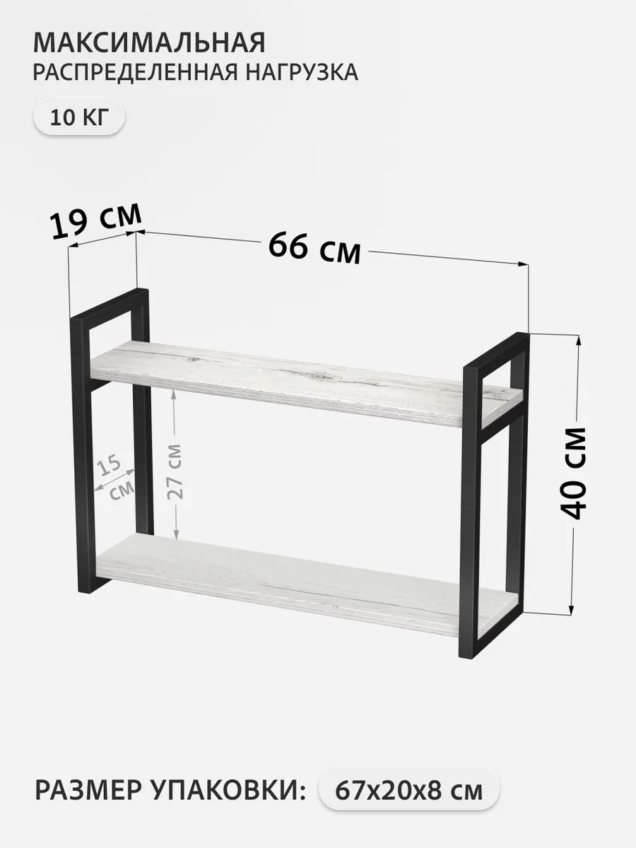 Металлические кронштейны с матовым покрытием придают полке лофтовый характер, а ЛДСП-полки устойчивы к влаге и механическим воздействиям. Конструкция выдерживает до 10 кг, что делает её практичной для повседневного использования.