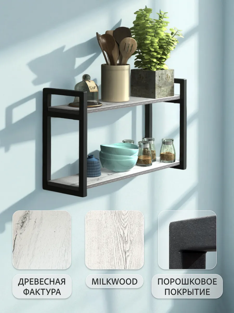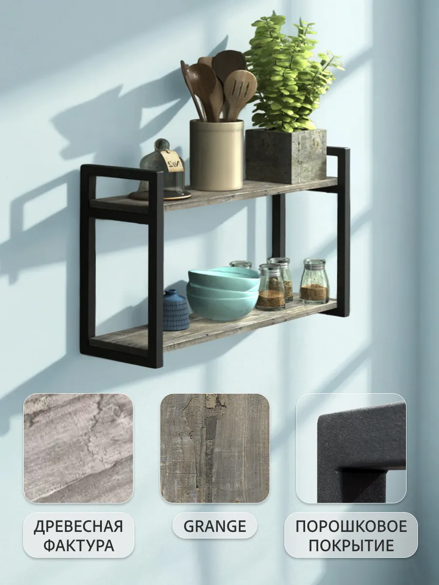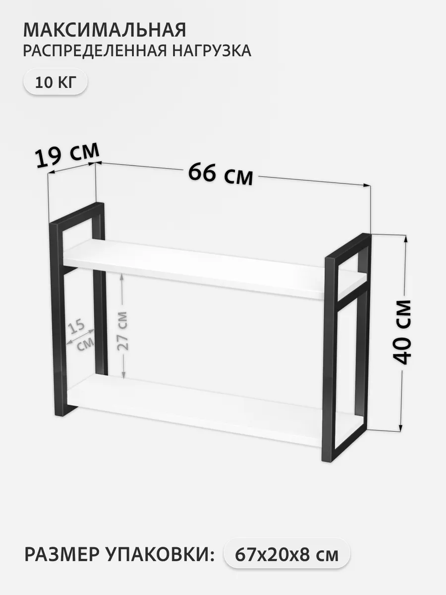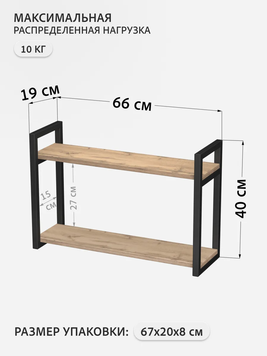 Металлические кронштейны с матовым покрытием придают полке лофтовый характер, а ЛДСП-полки устойчивы к влаге и механическим воздействиям. Конструкция выдерживает до 10 кг, что делает её практичной для повседневного использования.