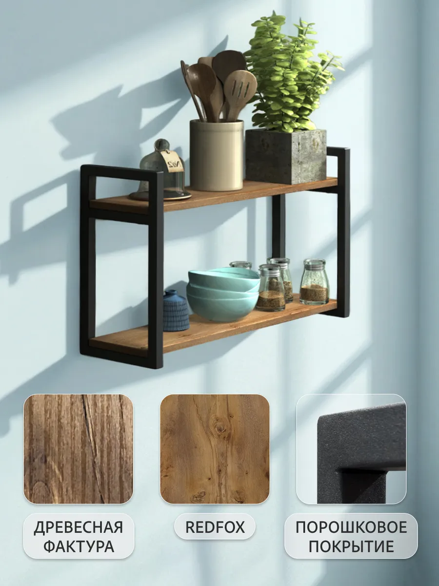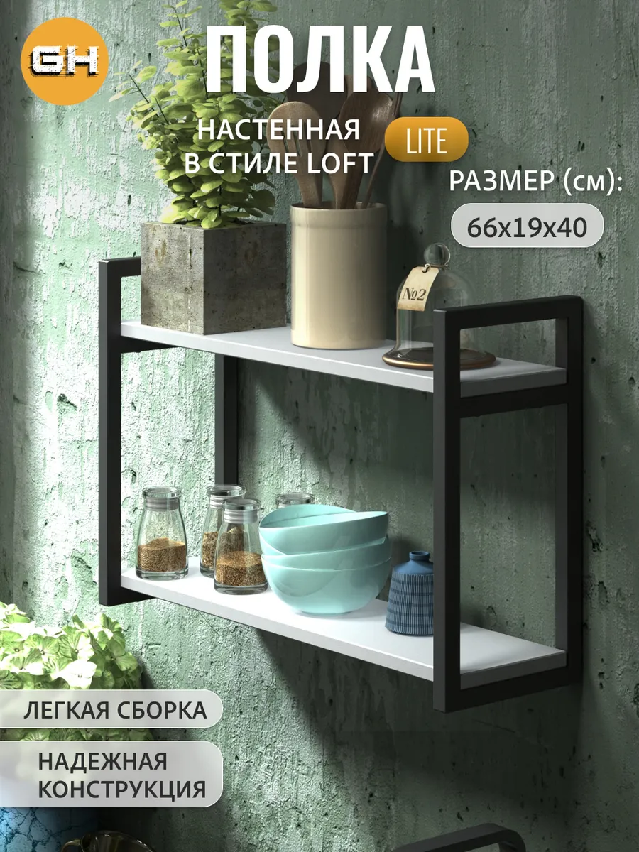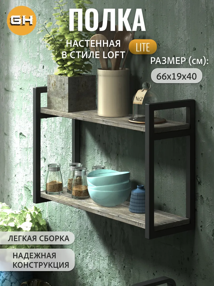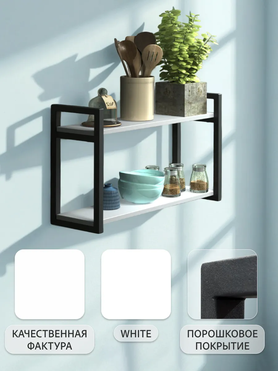 Металлические кронштейны с матовым покрытием придают полке лофтовый характер, а ЛДСП-полки устойчивы к влаге и механическим воздействиям. Конструкция выдерживает до 10 кг, что делает её практичной для повседневного использования.