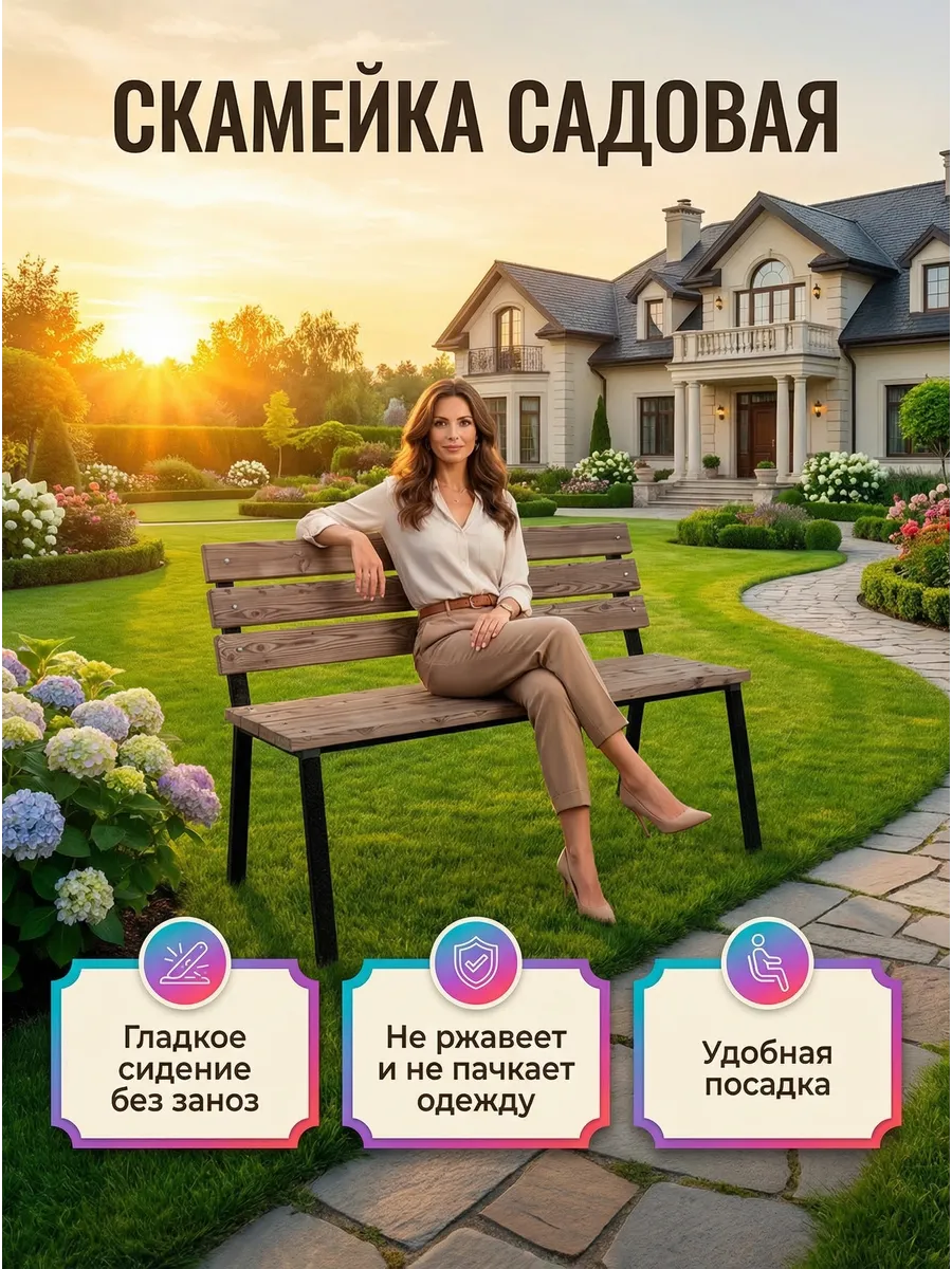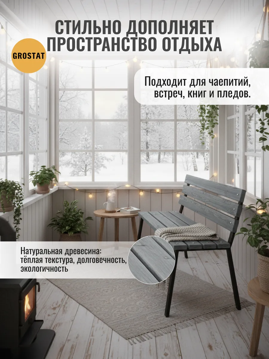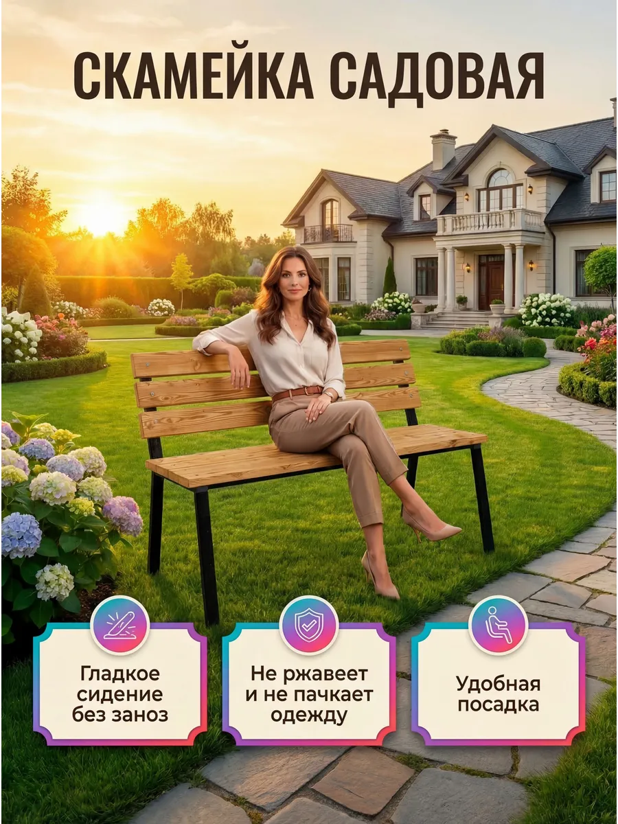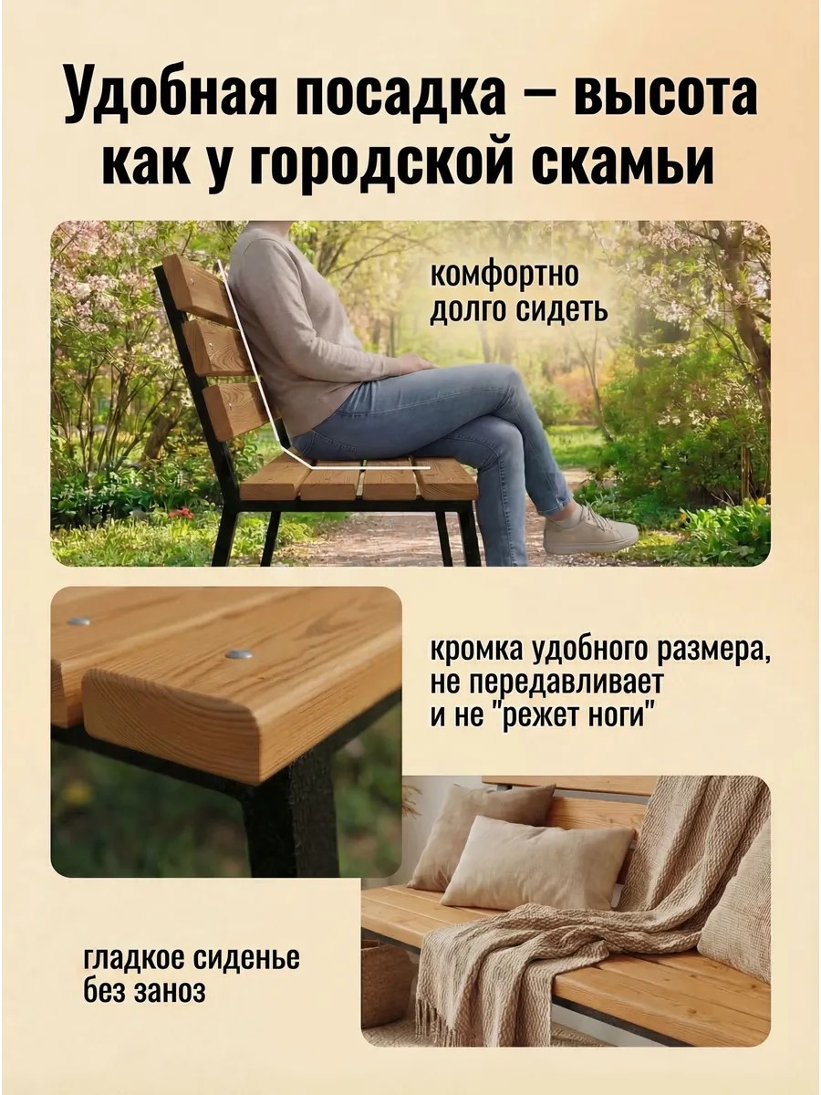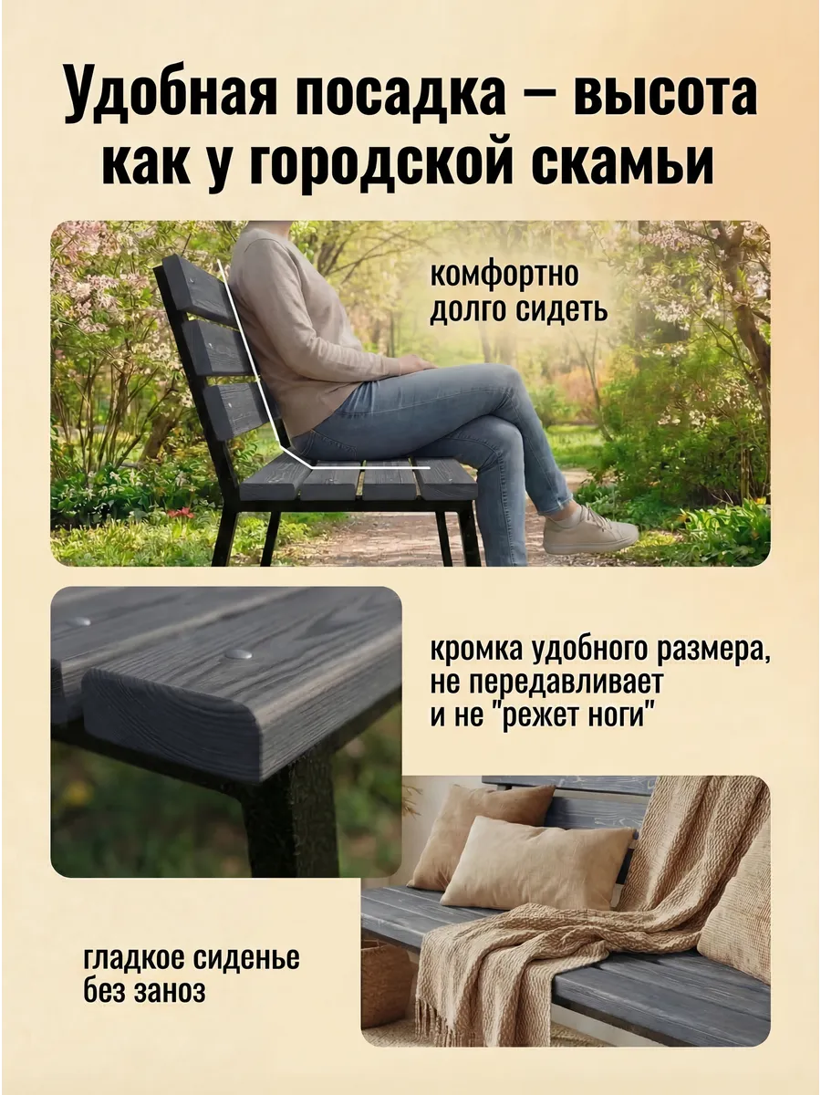 Используемые при производстве материалы обеспечивают надежность и долговечность конструкции, и дает возможность использовать скамью в любое время года.
