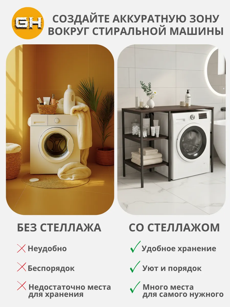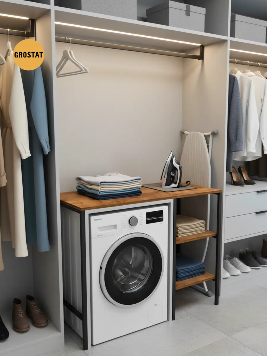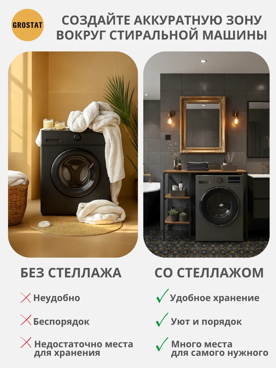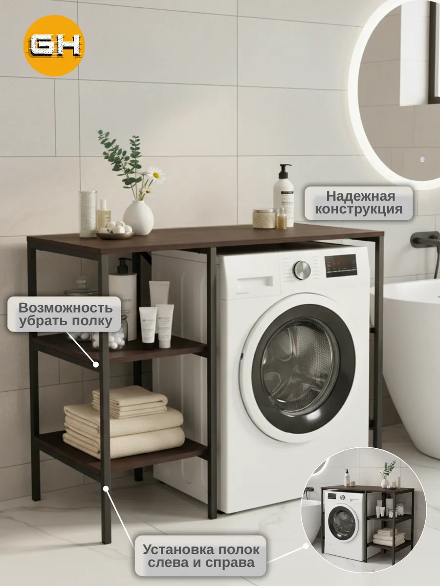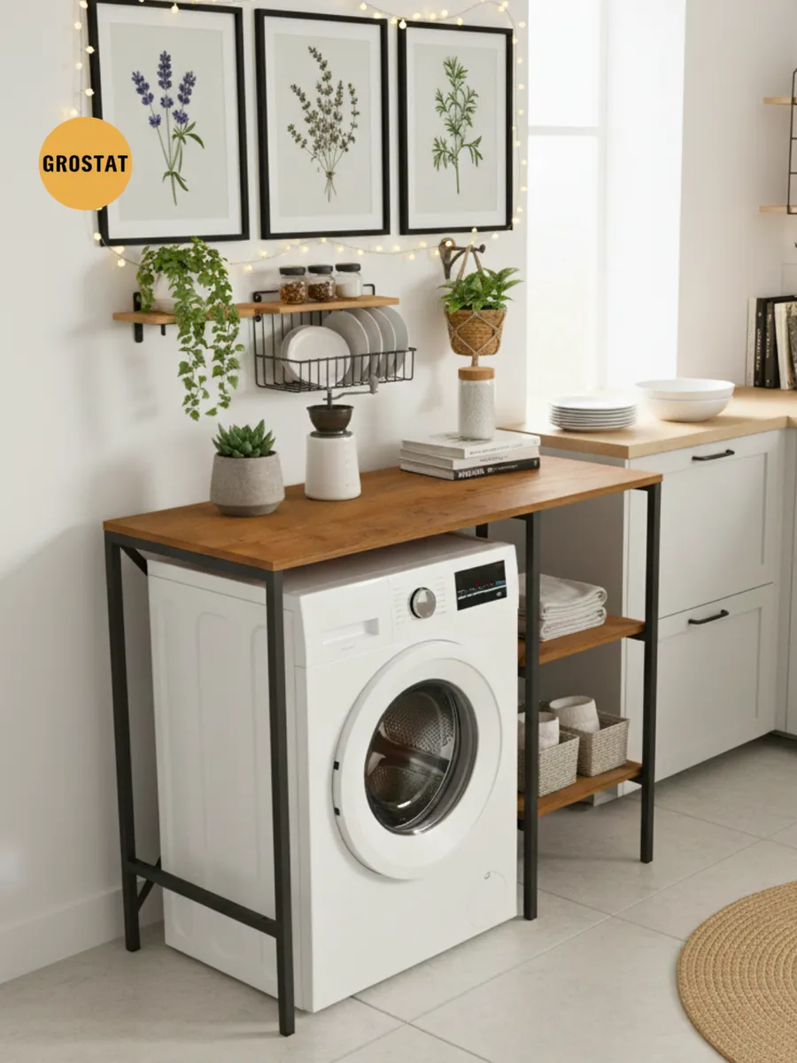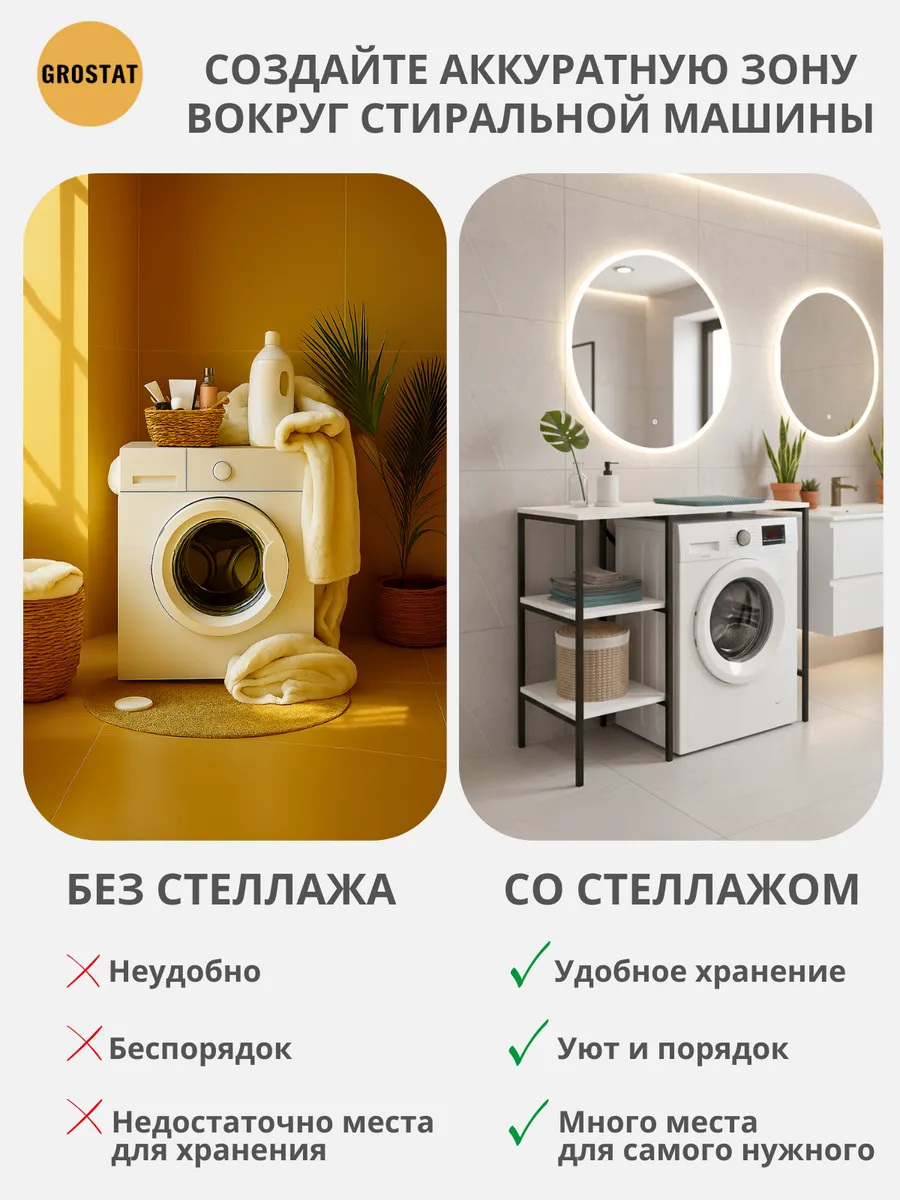 Универсальный стеллаж со столом TVATT loft для стиральной машины - настоящий органайзер для всех ваших вещей и аксессуаров. Стильный и компактный, он идеально впишется в любую ванную комнату, придавая ей порядок и уют. Достоинство данного стеллажа в ванную - удобное хранение в ванной различных предметов. Вы можете использовать его как тумбочку, на которой будут размещены косметика и принадлежности для ухода за собой. А благодаря высоким полкам на них смогут разместиться все вещи, необходимые для ежедневной жизни, декоративные корзинки, коллекция ароматических свечей, полотенец и даже есть место для массажной ванночки для ног или тазика. Полка над стиральной машиной станет идеальным местом для хранения необходимых предметов вашего быта. Используйте шкаф пенал, как полку для посуды, моющих средств или стойка для цветов, этот стеллаж органично впишется в интерьер вашей гостиной или кухни. Его модульный дизайн позволяет создавать оригинальные композиции из нескольких шкафчиков и полок нашего производства UNA LOFT и UNA LOFT mini. Прочная разборная конструкция и качественные материалы гарантируют надежность и долговечность этажерки. Каждая полка стеллажа может выдерживать нагрузку от 15 до 20 кг, что позволяет разместить на ней все необходимые предметы без беспокойства о прочности. Стол-стеллаж металлический оснащен регулируемыми опорами на ножках, которые обеспечивают устойчивость и защищают пол от царапин и вмятин. Вы можете легко подстроить его под любую поверхность для оптимального использования пространства.