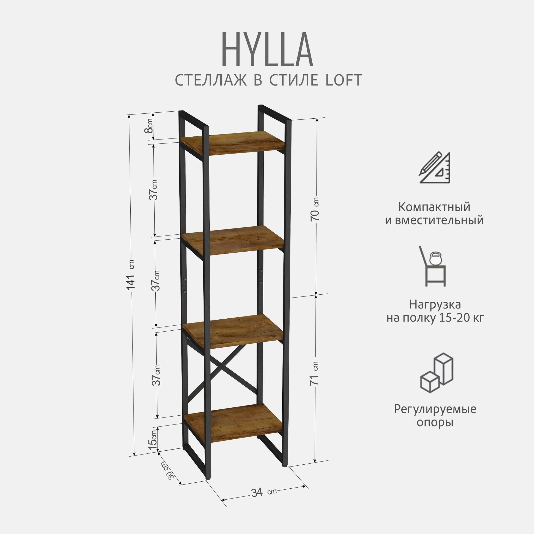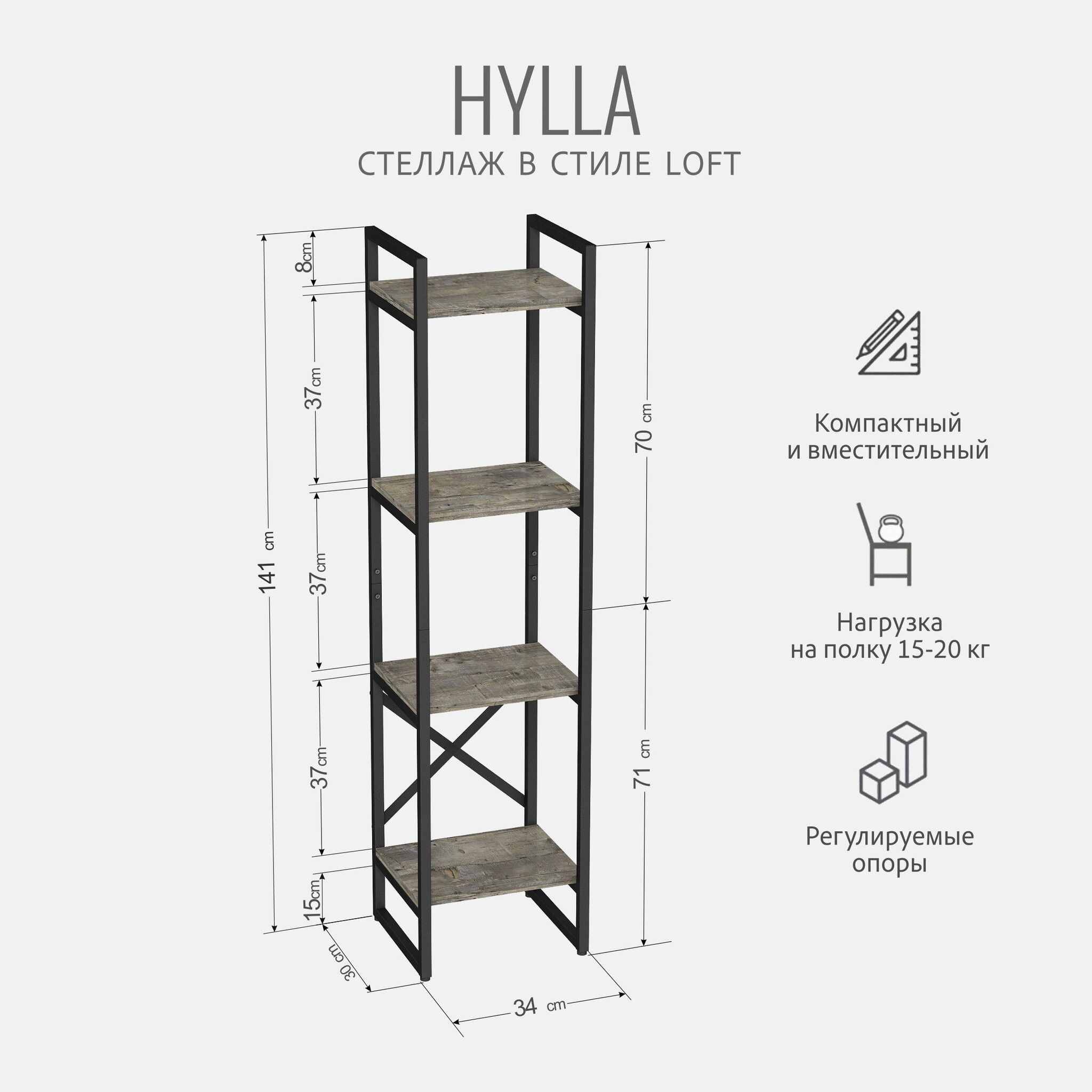 Модульный металлический стеллаж HYLLA mini- универсальное решение для хранения вещей в любом помещении. Современный дизайн стеллажа в стиле лофт отлично впишется в интерьер квартиры, прихожей, дачного дома, гаража, балкона, офиса, склада или магазина. Высокий, узкий напольный стеллаж идеально подойдет для зонирования комнаты, тем самым поможет организовать пространство и создать уютную атмосферу.