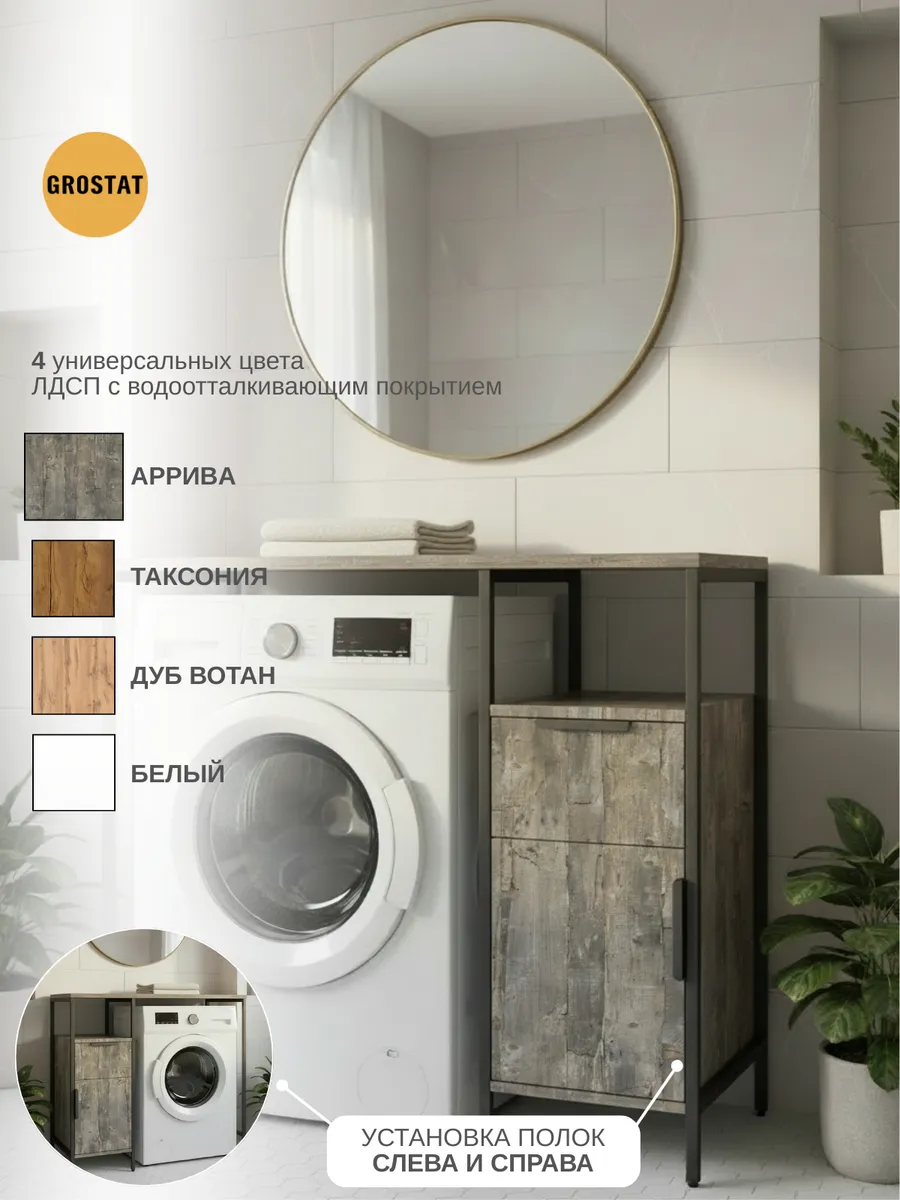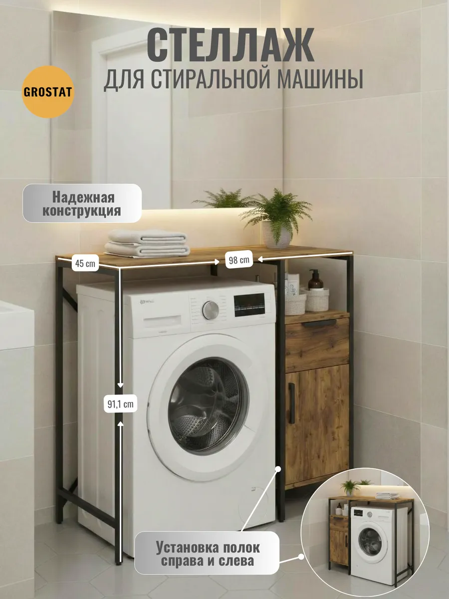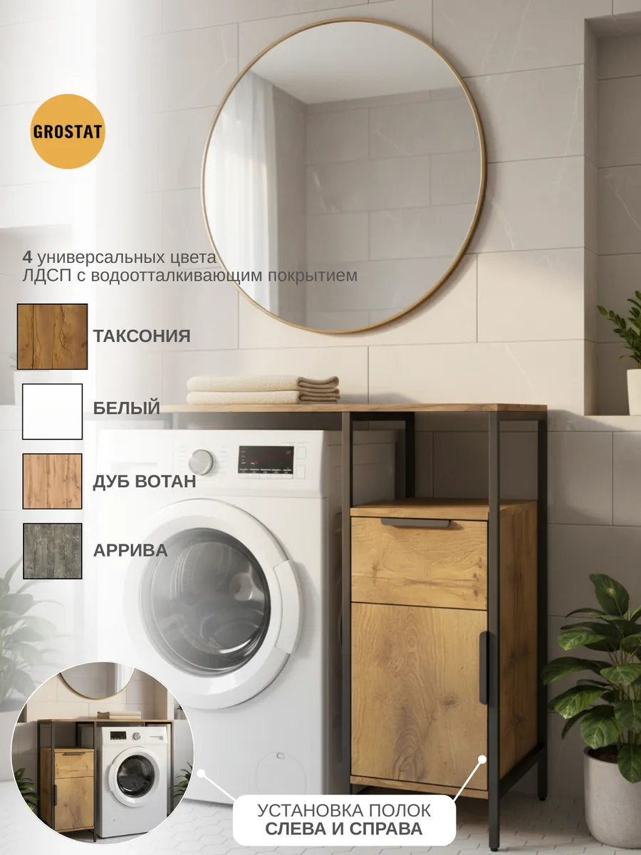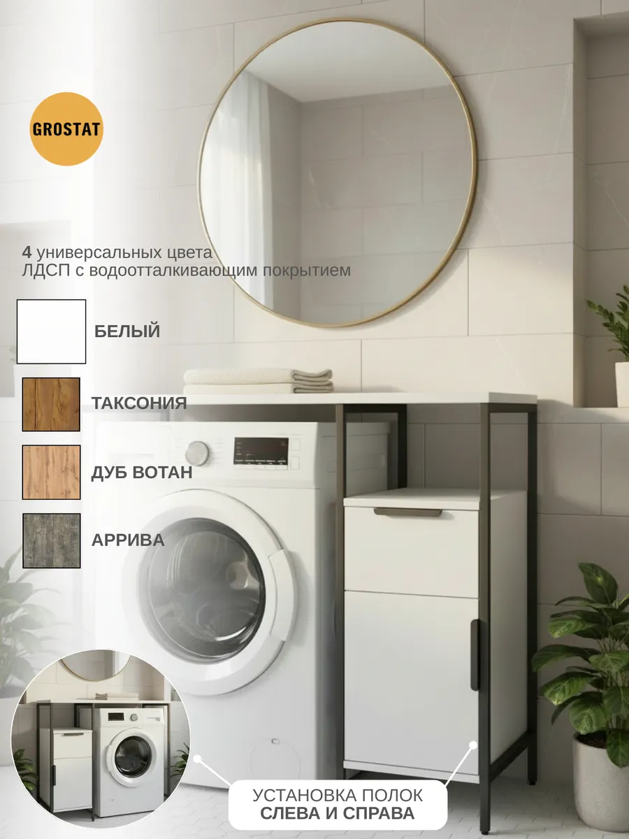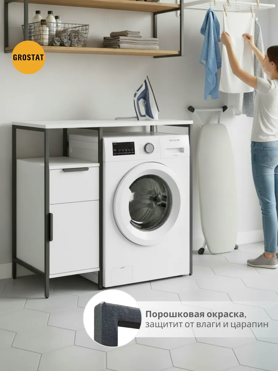 Универсальный стеллаж со столом LINNE loft для стиральной машины - настоящий органайзер для всех ваших вещей и аксессуаров. Стильный и компактный, он идеально впишется в любую ванную комнату, придавая ей порядок и уют. Достоинство данного стеллажа в ванную - удобное хранение в ванной различных предметов. Вы можете использовать его как тумбочку, на которой будут размещены косметика и принадлежности для ухода за собой. А благодаря высоким полкам на них смогут разместиться все вещи, необходимые для ежедневной жизни, декоративные корзинки, коллекция ароматических свечей, полотенец и даже есть место для массажной ванночки для ног или тазика.
