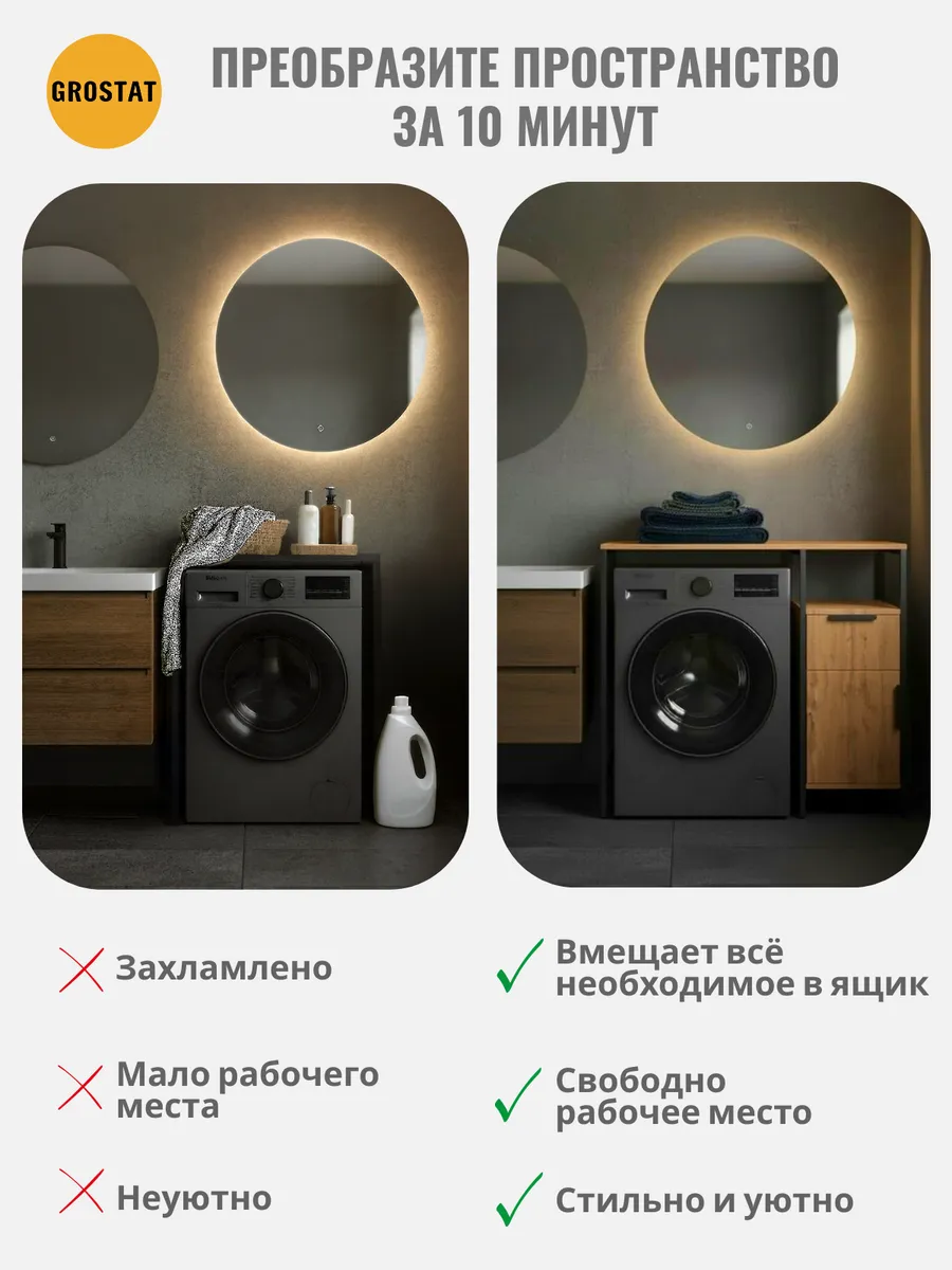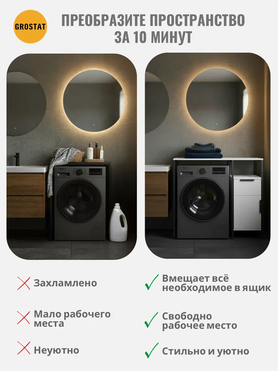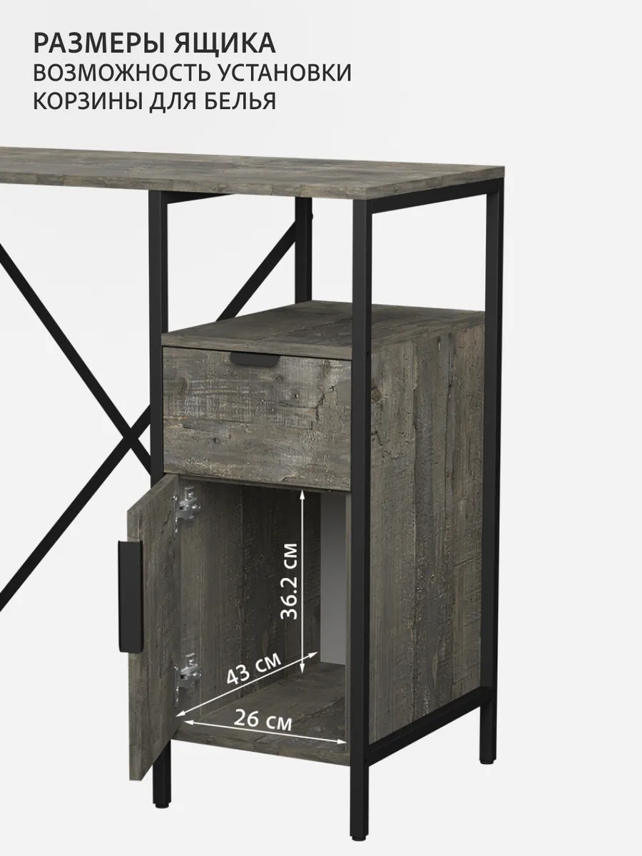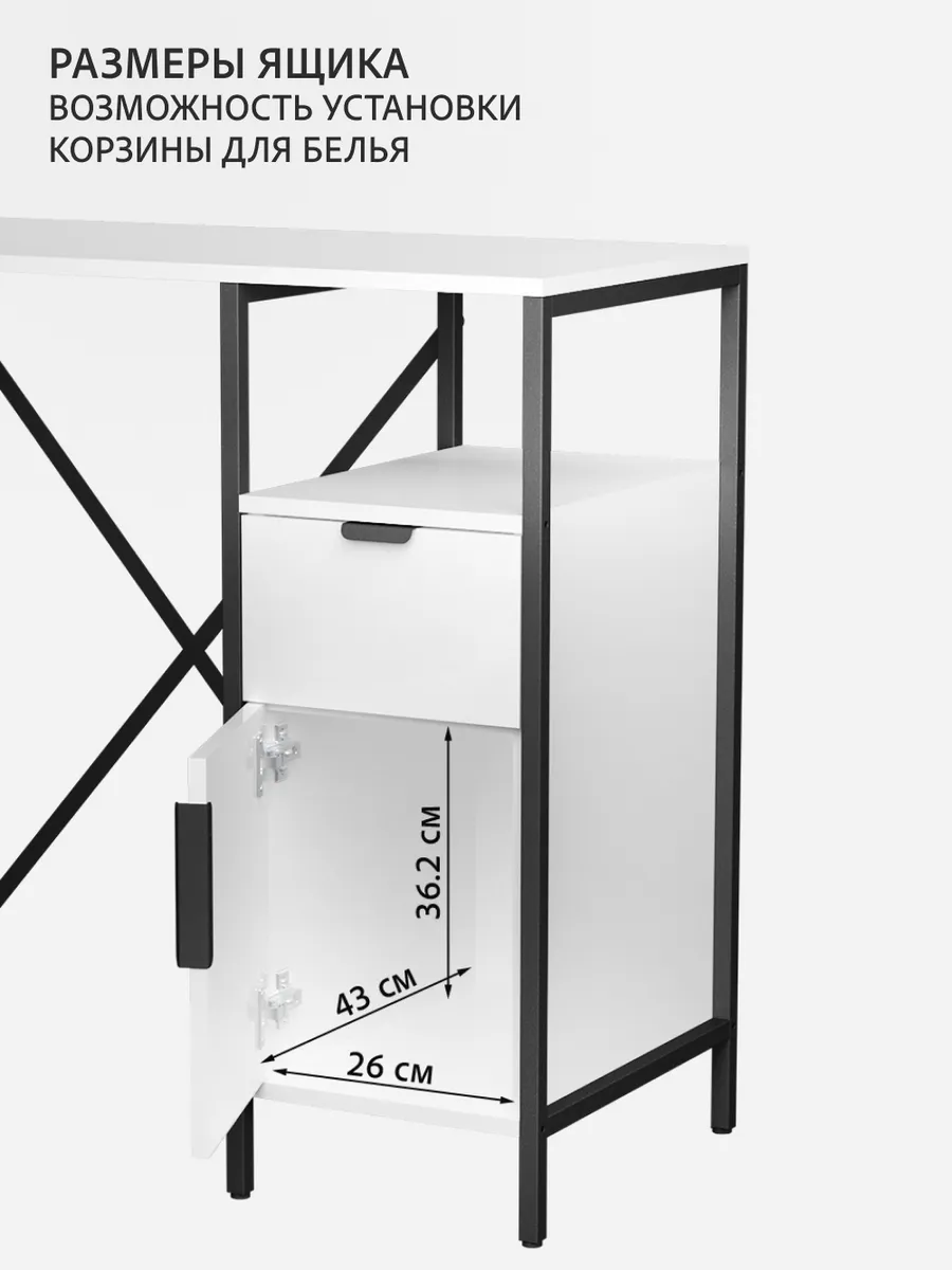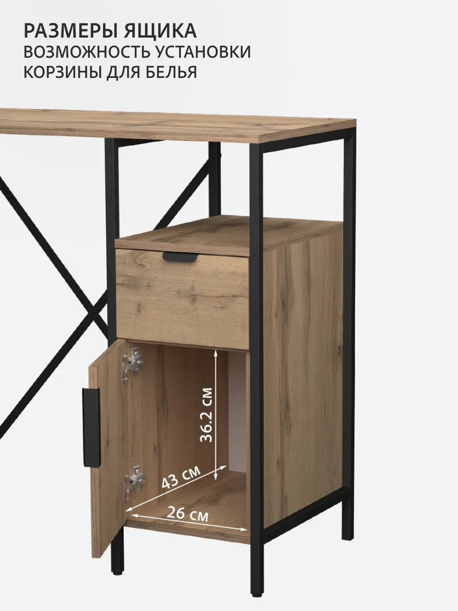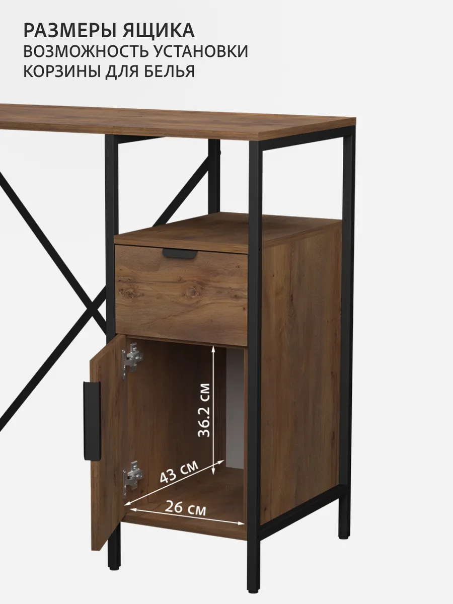 Универсальный стеллаж со столом LINNE loft для стиральной машины - настоящий органайзер для всех ваших вещей и аксессуаров. Стильный и компактный, он идеально впишется в любую ванную комнату, придавая ей порядок и уют. Достоинство данного стеллажа в ванную - удобное хранение в ванной различных предметов. Вы можете использовать его как тумбочку, на которой будут размещены косметика и принадлежности для ухода за собой. А благодаря высоким полкам на них смогут разместиться все вещи, необходимые для ежедневной жизни, декоративные корзинки, коллекция ароматических свечей, полотенец и даже есть место для массажной ванночки для ног или тазика.