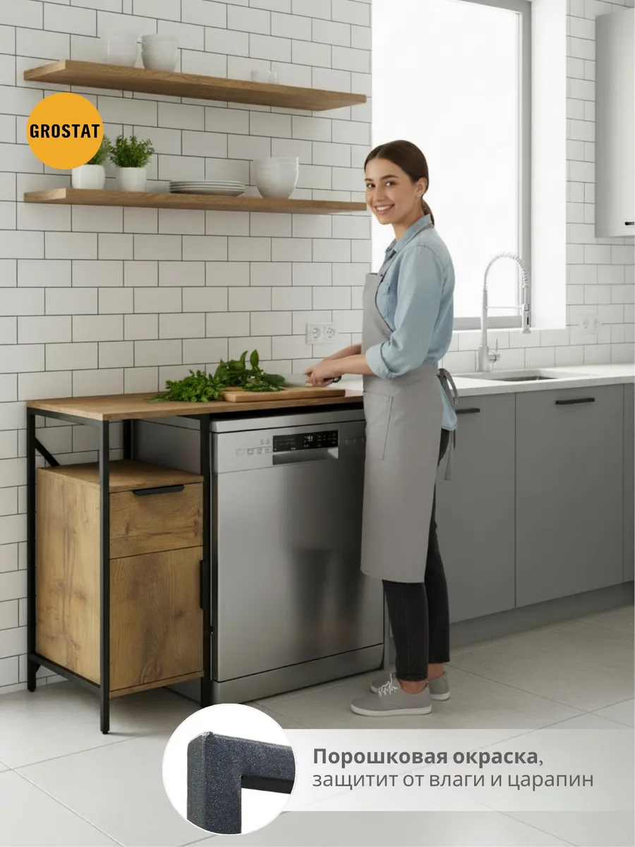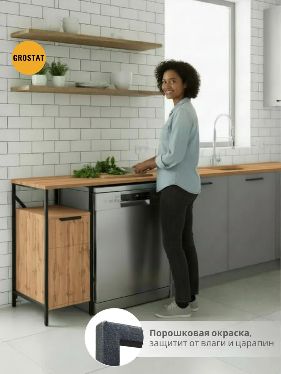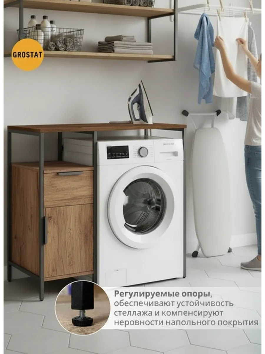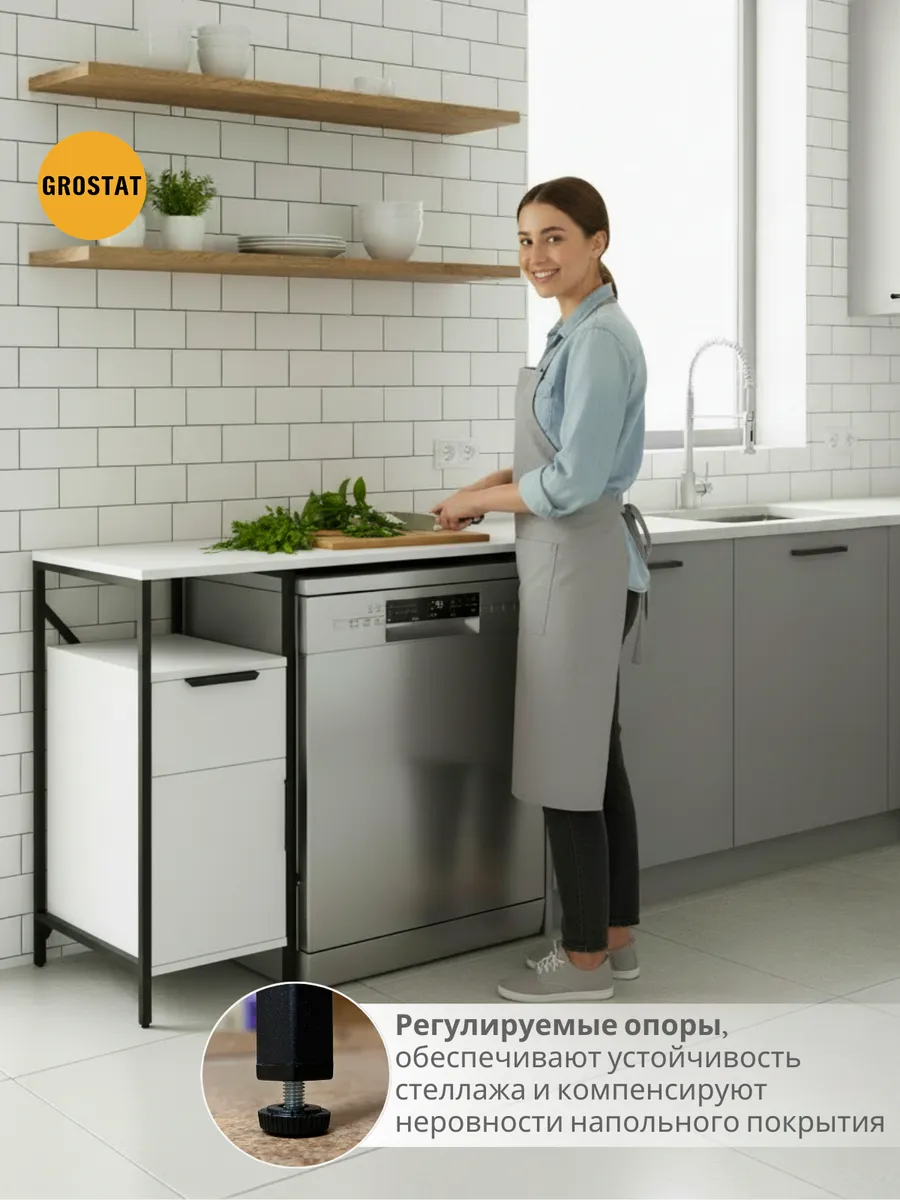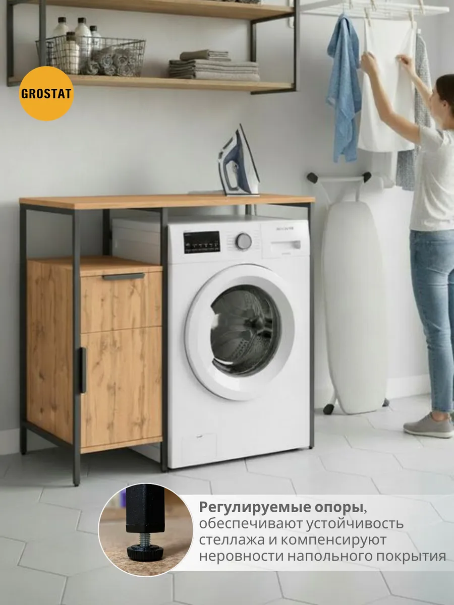 Полка над стиральной машиной станет идеальным местом для хранения необходимых предметов вашего быта. Используйте шкаф пенал, как полку для посуды, моющих средств или стойка для цветов, этот стеллаж органично впишется в интерьер вашей гостиной или кухни. Его модульный дизайн позволяет создавать оригинальные композиции из нескольких шкафчиков и полок нашего производства UNA LOFT и UNA LOFT mini. Прочная разборная конструкция и качественные материалы гарантируют надежность и долговечность этажерки. Каждая полка стеллажа может выдерживать нагрузку от 15 до 20 кг, что позволяет разместить на ней все необходимые предметы без беспокойства о прочности. Стол-стеллаж металлический оснащен регулируемыми опорами на ножках, которые обеспечивают устойчивость и защищают пол от царапин и вмятин. Вы можете легко подстроить его под любую поверхность для оптимального использования пространства.