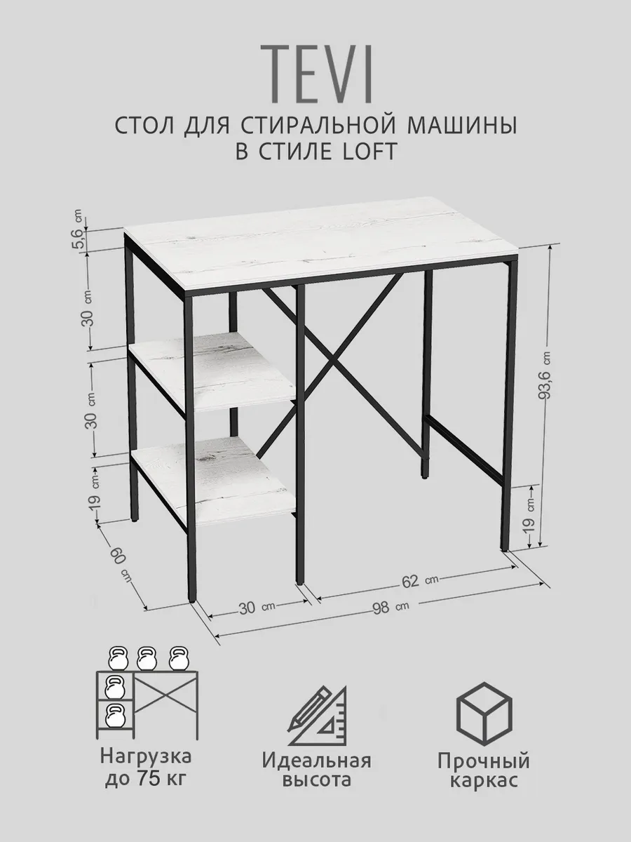 Универсальный стеллаж TEVI для ванной — идеальное решение для организации пространства в вашей ванной комнате. Этот стильный и компактный стеллаж под стиральную машину обеспечит удобное хранение всех необходимых вещей и аксессуаров. Стеллаж стол для ванной над стиральной машиной позволит Вам организовать хранение предметов первой необходимости. Одним из главных достоинств этого стеллажа в ванну является его многофункциональность. На нем можно разместить косметические средства, аксессуары для ухода за собой, а также другие важные мелочи. Высокие полки позволят организовать пространство для хранения полотенец, декоративных корзинок, коллекций ароматических свечей и даже небольших предметов, таких как массажная ванночка для ног или тазик.