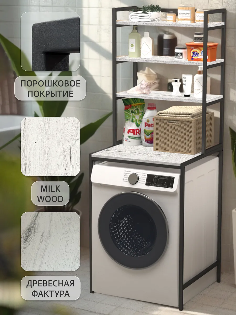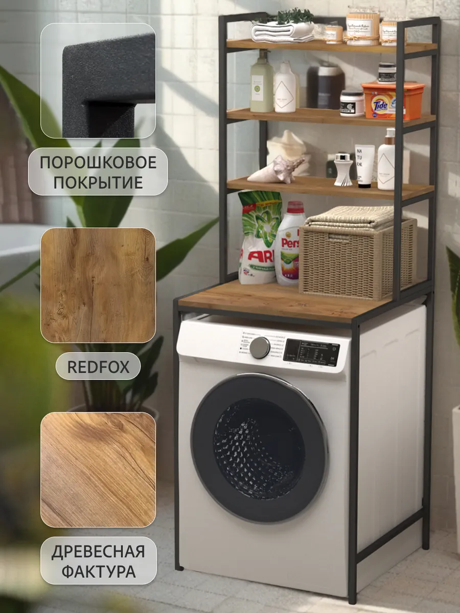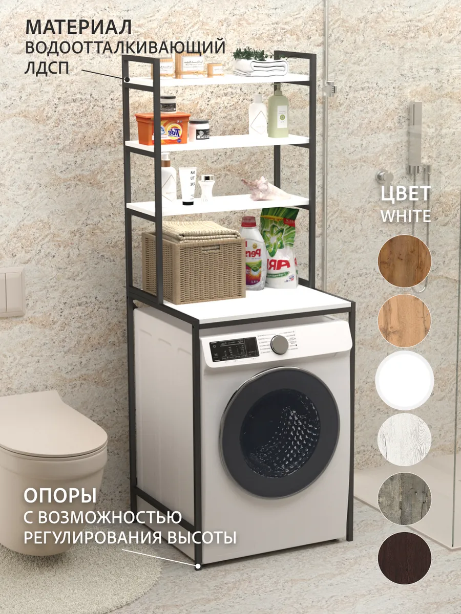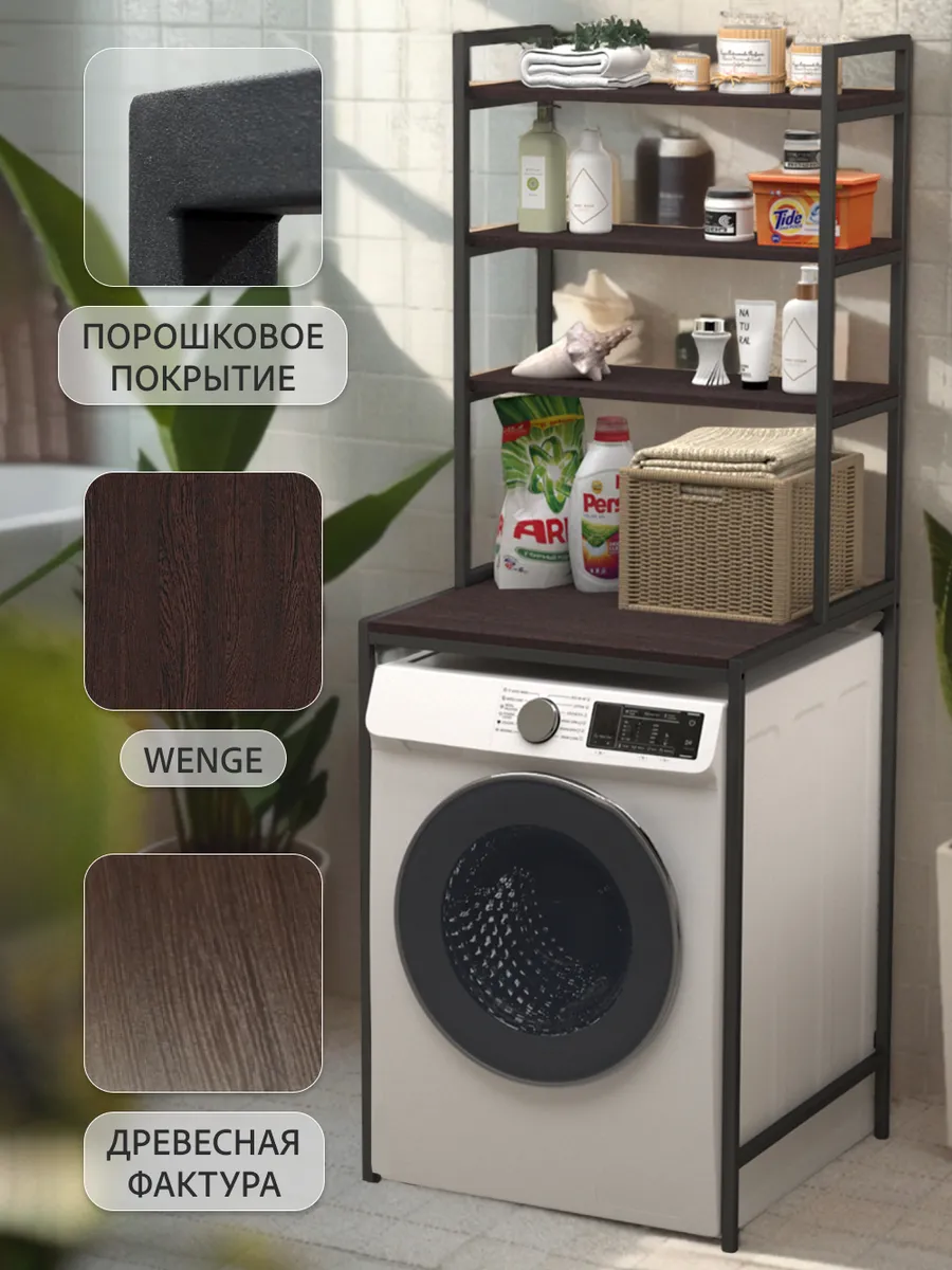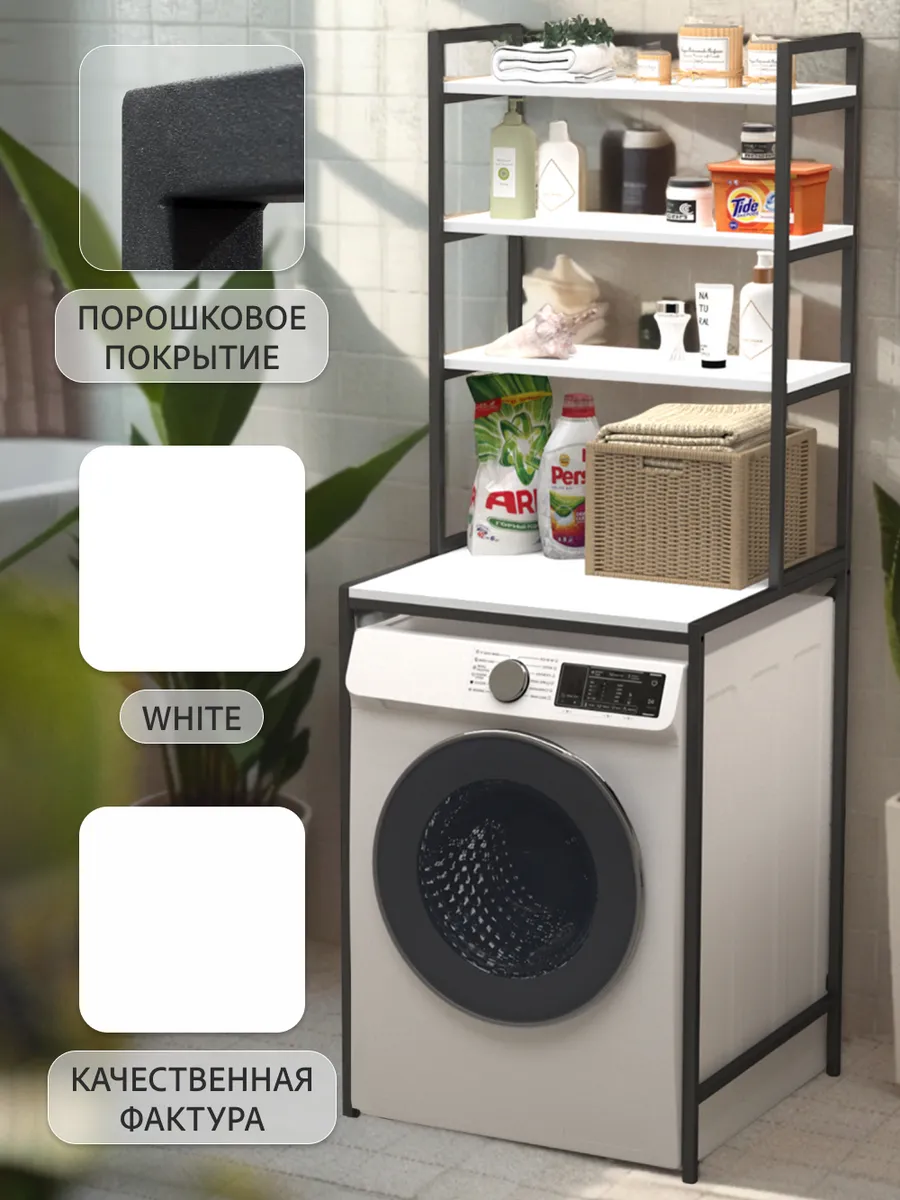Ваша ванная комната превратится в приятный лофт-стильный уголок с этим модным мебельным элементом. Стеллаж под стиральную машину может быть использован для хранения предметов личной гигиены, косметики, полотенец и других необходимых аксессуаров. На нем можно расположить цветы или коллекцию свечей, чтобы добавить уютности вашему пространству ванной комнаты.
