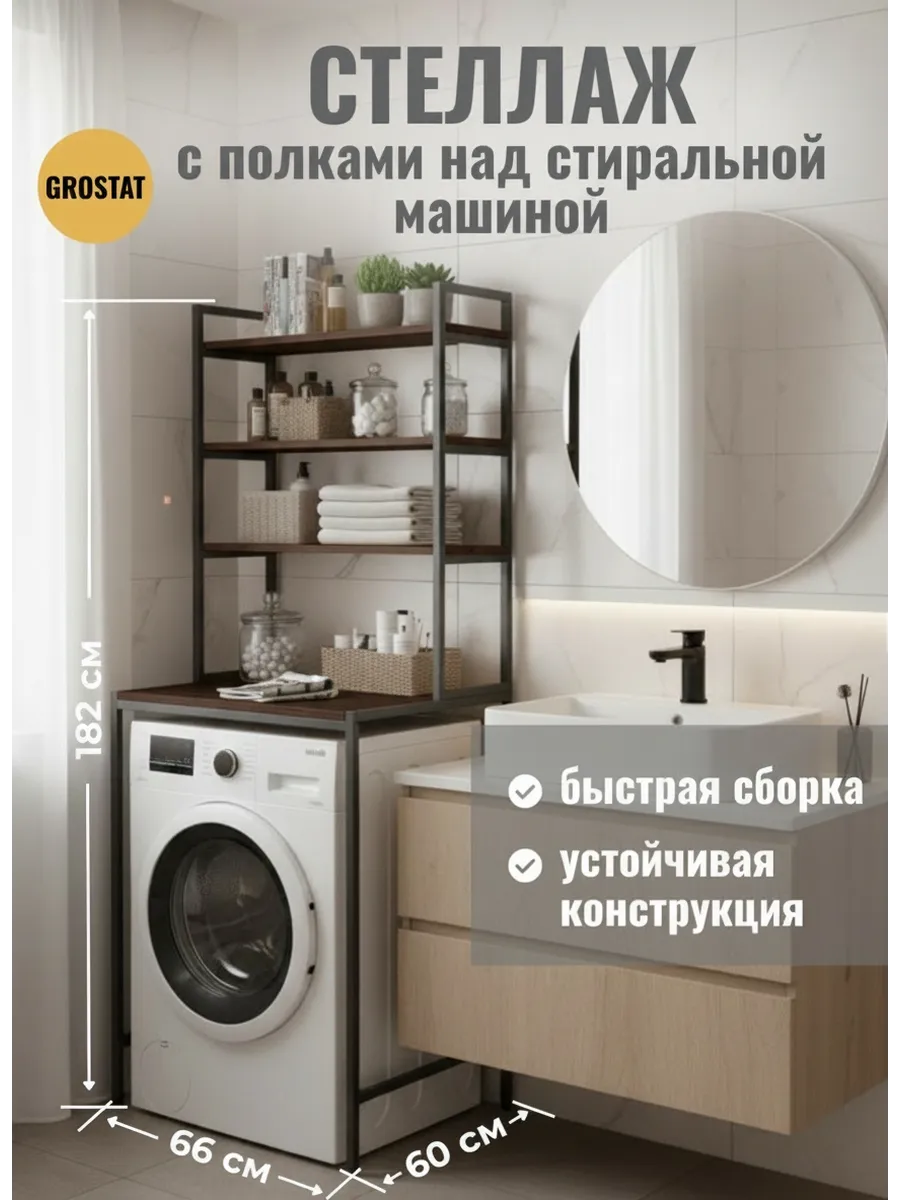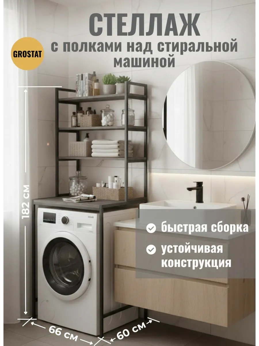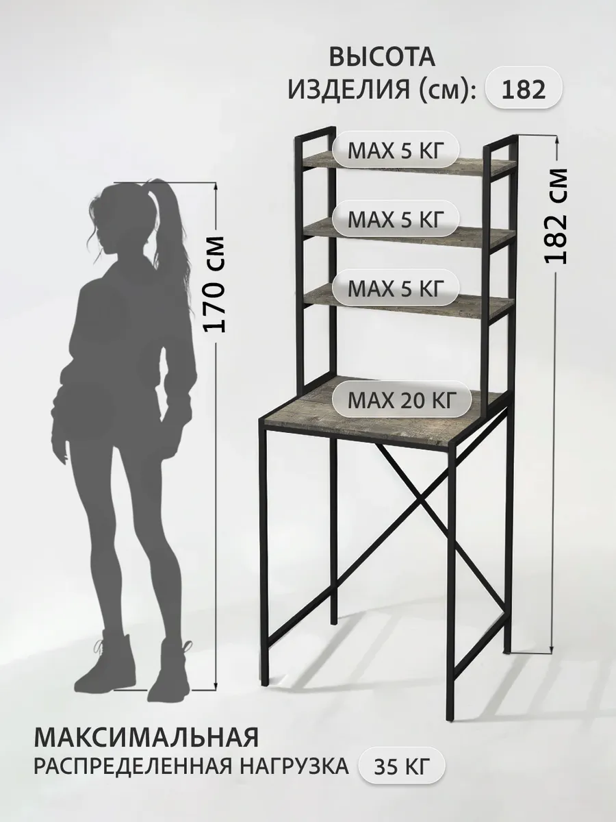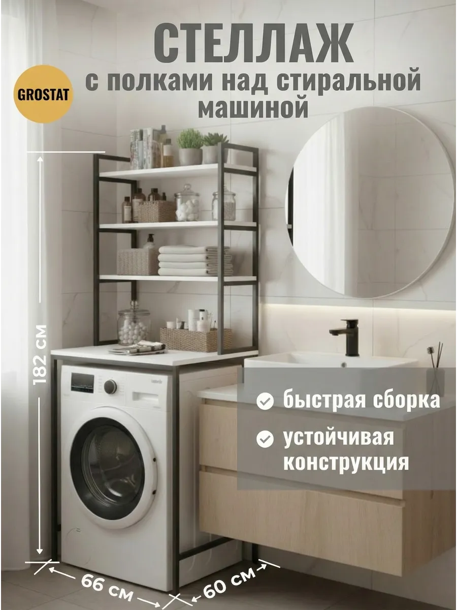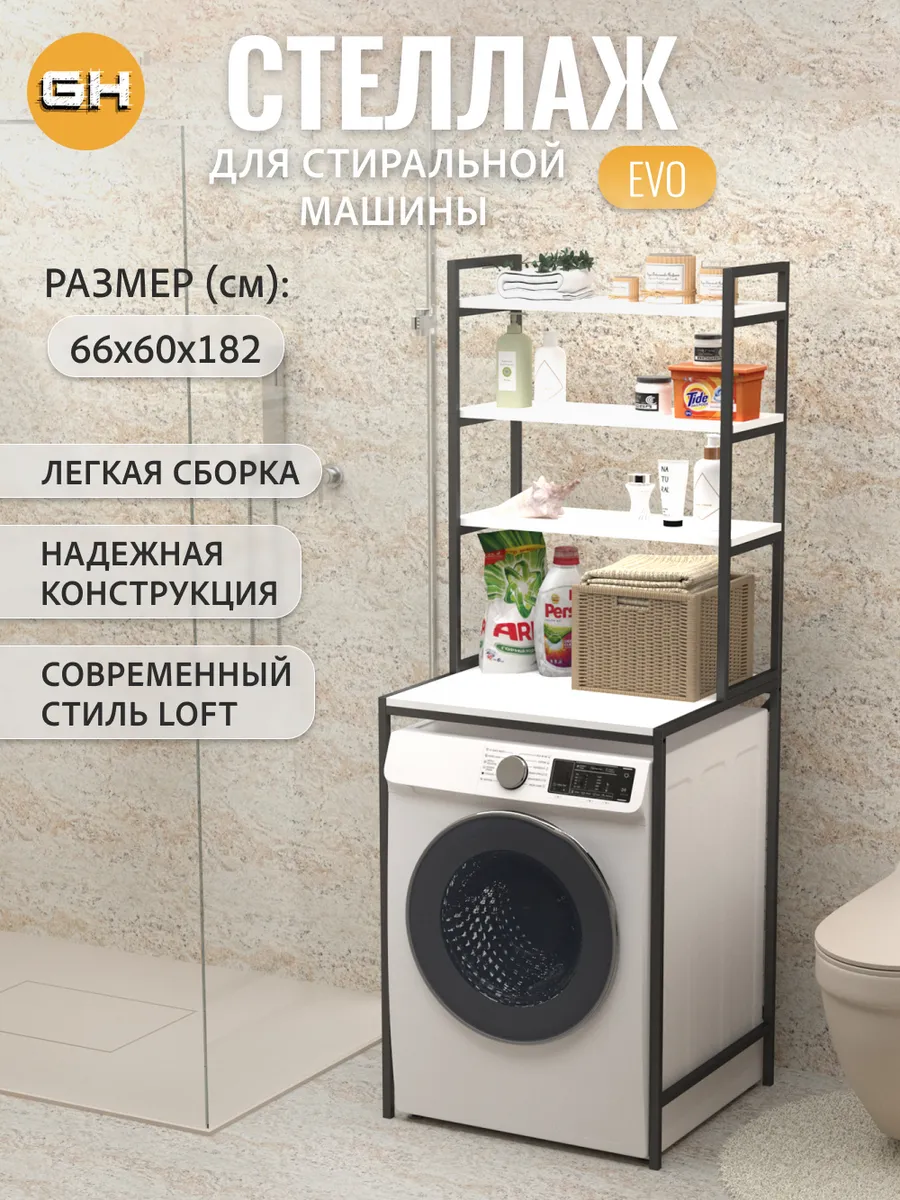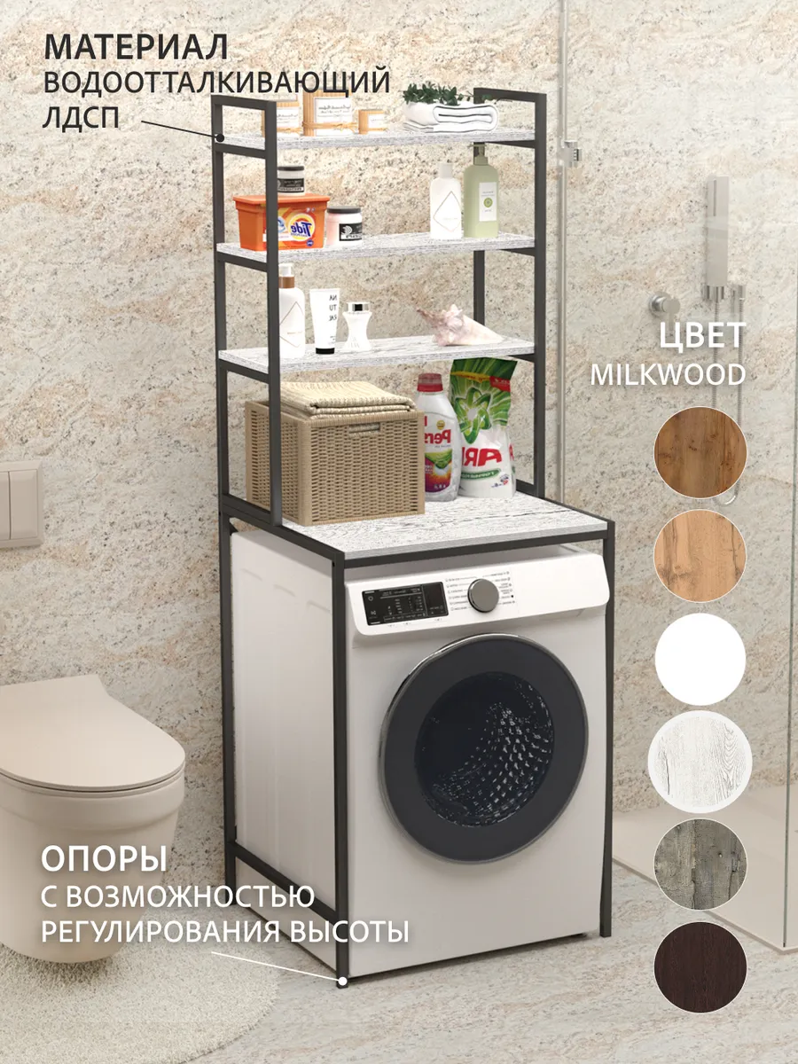 Ваша ванная комната превратится в приятный лофт-стильный уголок с этим модным мебельным элементом. Стеллаж под стиральную машину может быть использован для хранения предметов личной гигиены, косметики, полотенец и других необходимых аксессуаров. На нем можно расположить цветы или коллекцию свечей, чтобы добавить уютности вашему пространству ванной комнаты.
