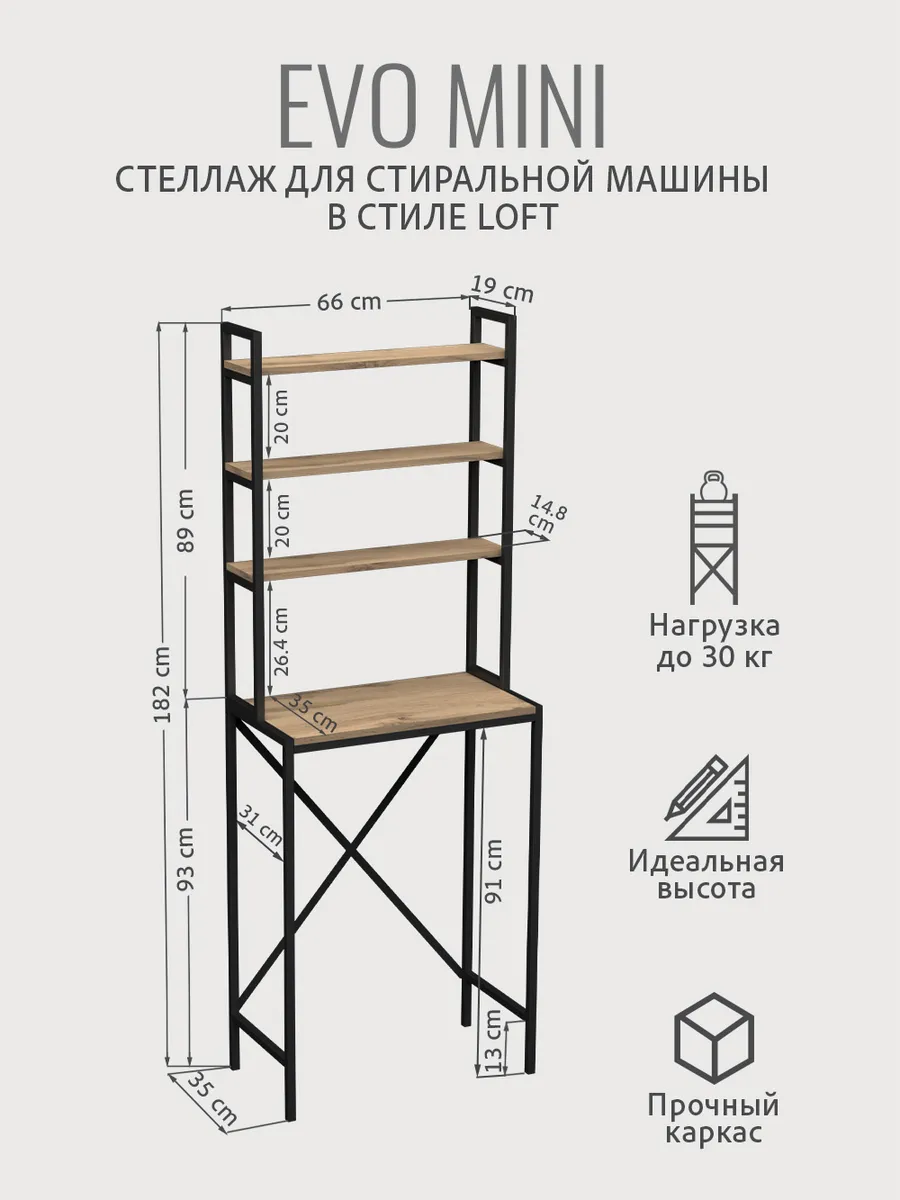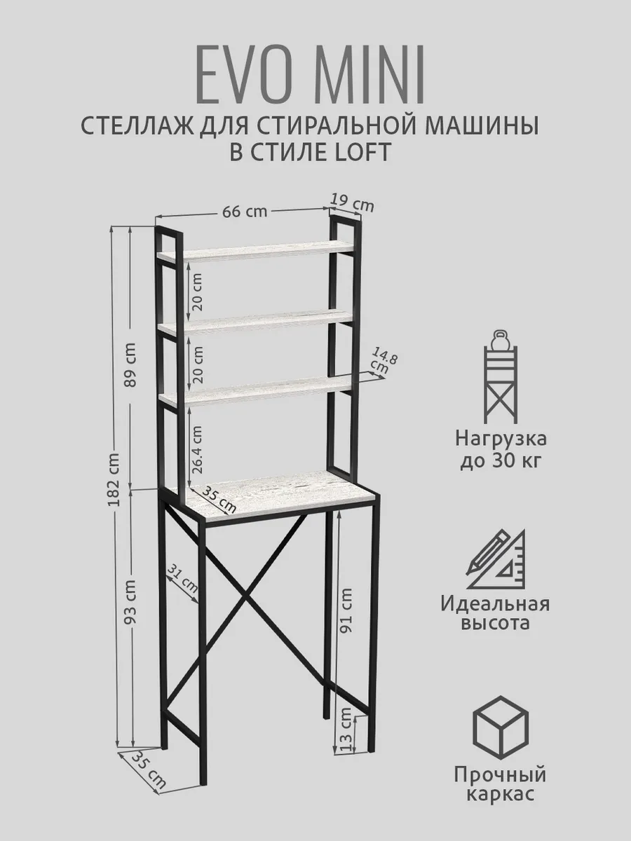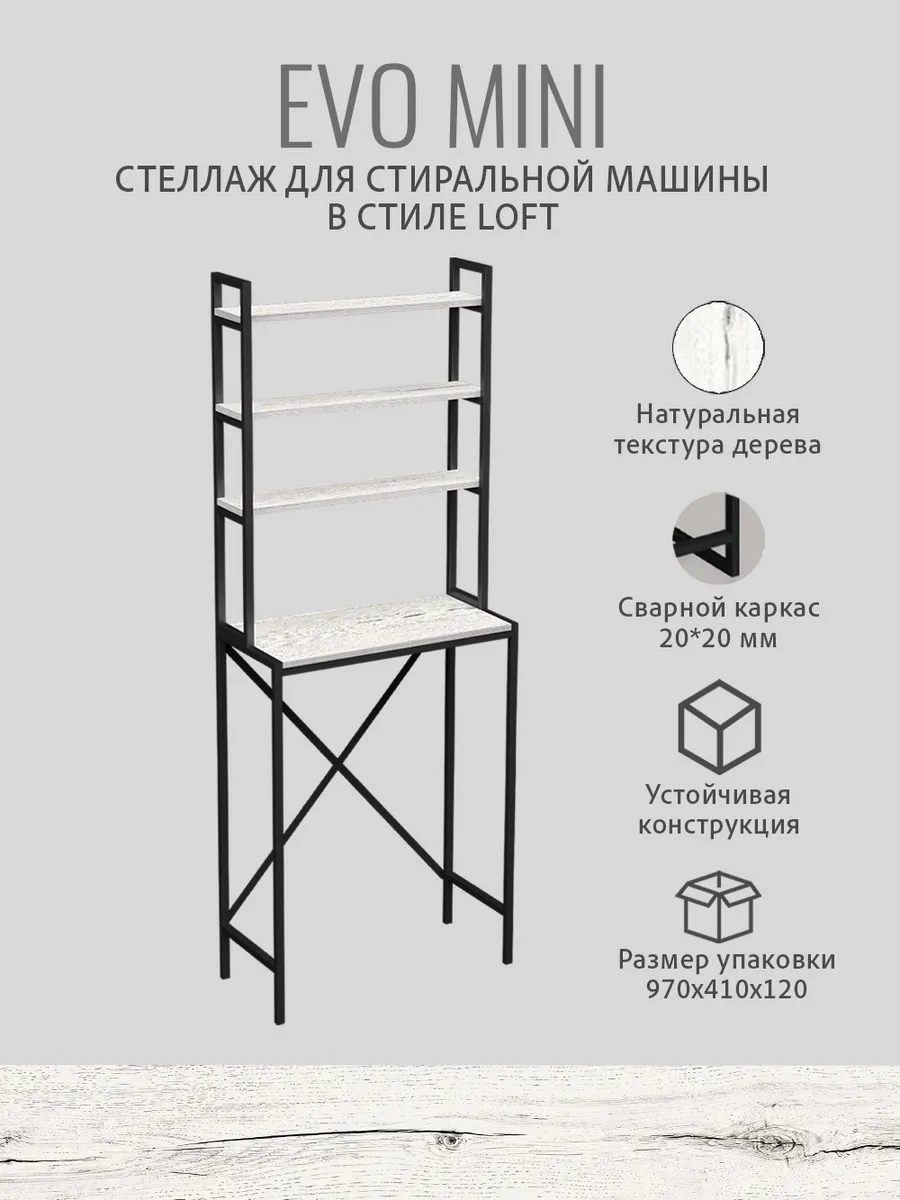 Модульная тумбочка EVO mini loft под стиральную машину — это идеальное и полезное решение для тех, кто стремится к оптимальной организации пространства ванной комнаты или дома.