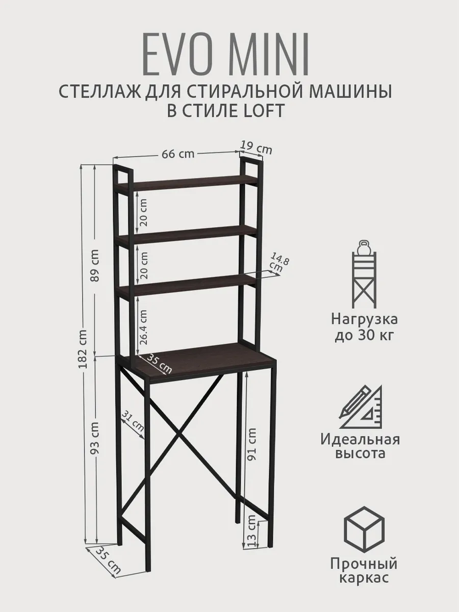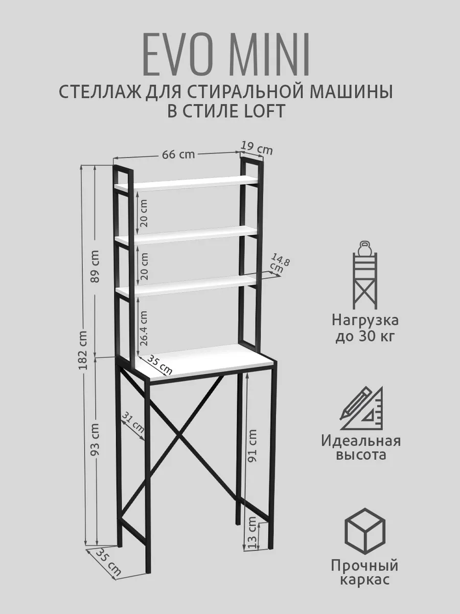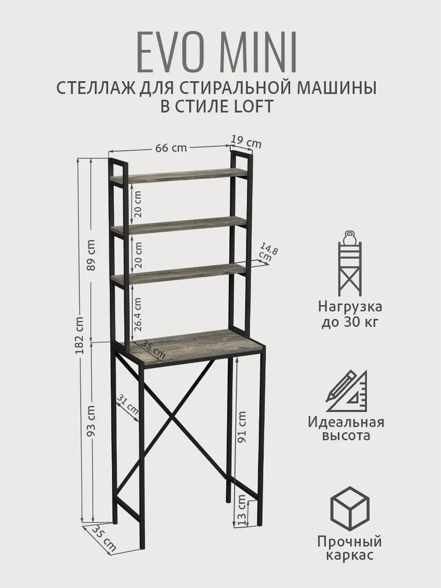 Модульная тумбочка EVO mini loft под стиральную машину — это идеальное и полезное решение для тех, кто стремится к оптимальной организации пространства ванной комнаты или дома.