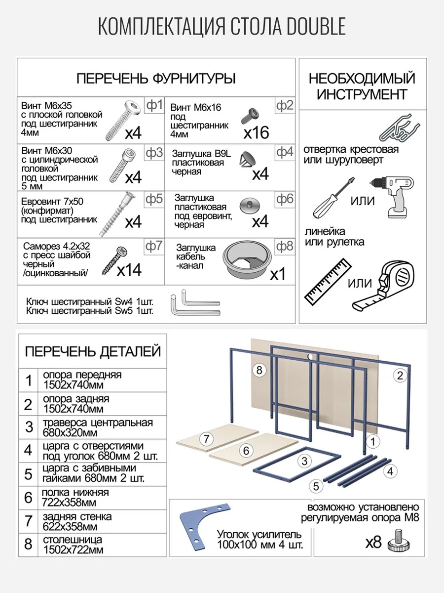 Поставляется стол в разобранном виде в 1 упаковке, комплект крепежа и инструкция по сборке входят в комплектацию. Легкая и быстрая сборка.