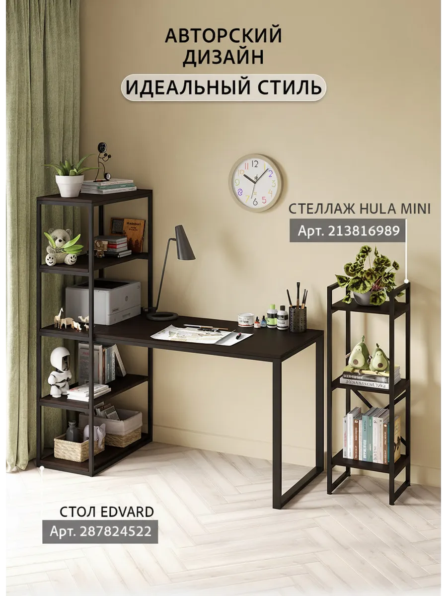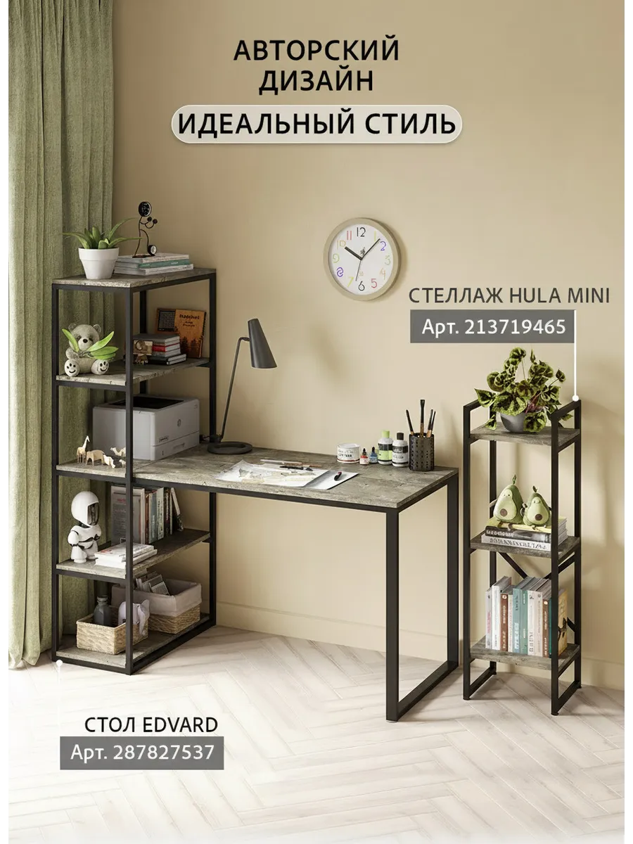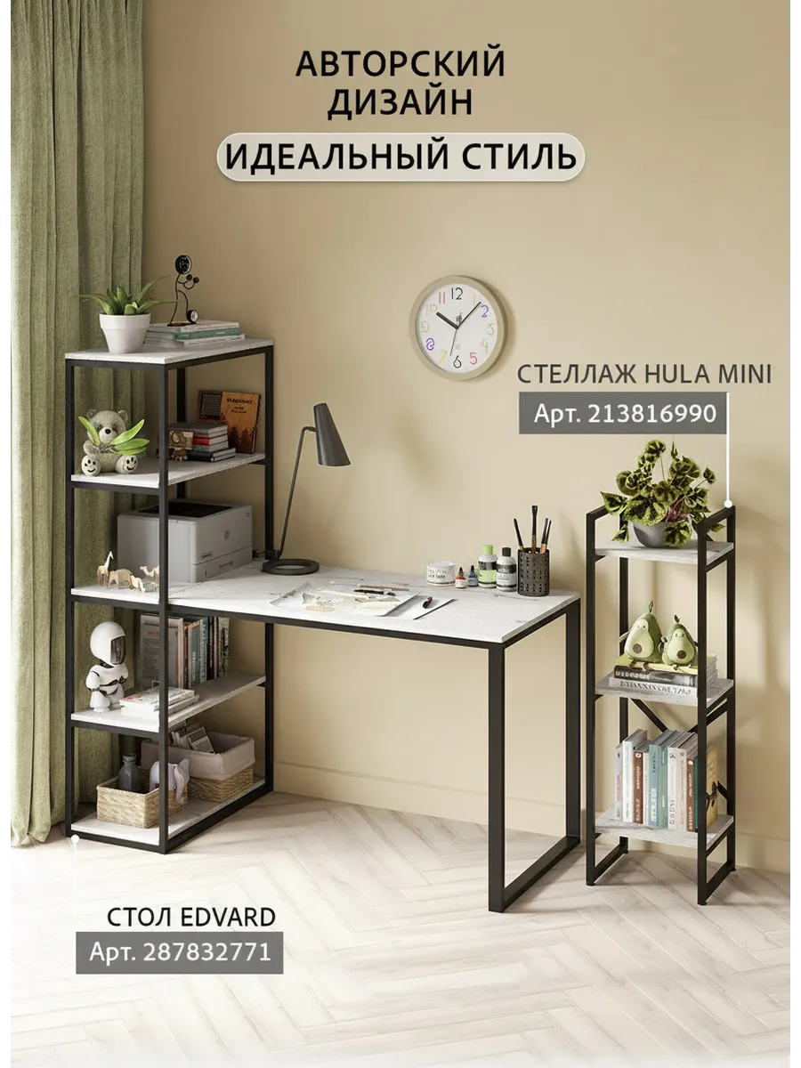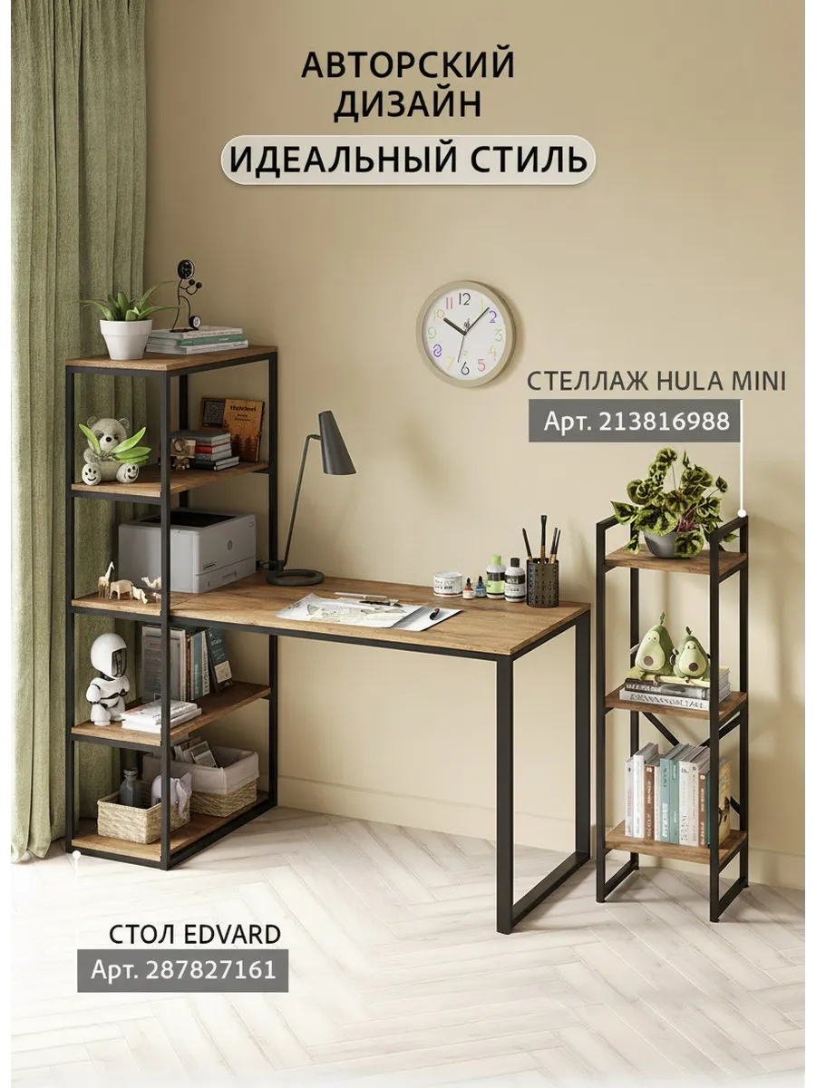 Стол компьютерный Эдвард комбинированный с открытой стеллажной системой, позволяет создать удобное, эргономичное и функциональное рабочее место на минимальной площади. Стеллаж можно заполнить книгами, учебниками, компьютерными принадлежностями, сувенирами, папками с документами.