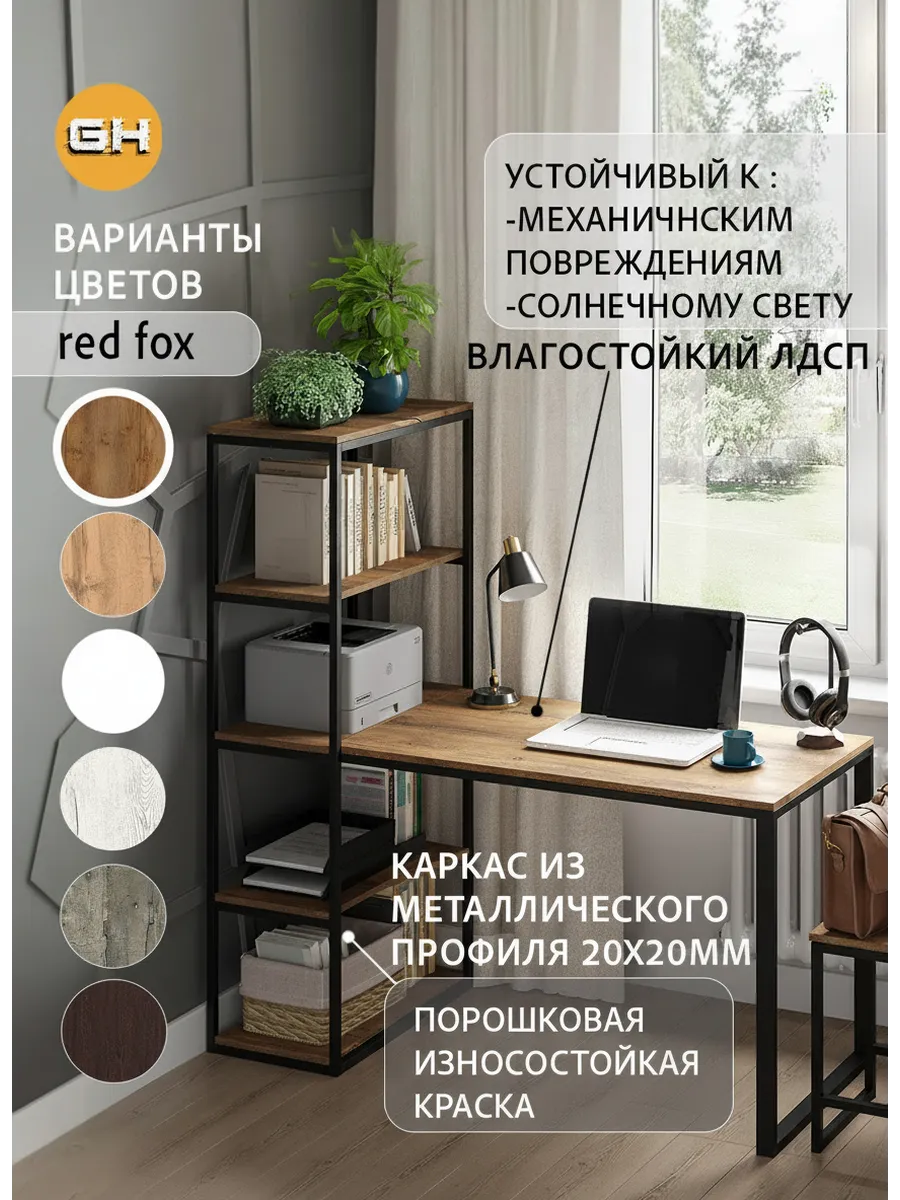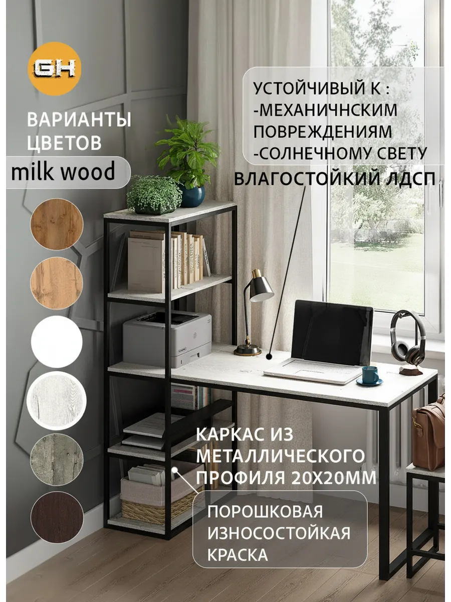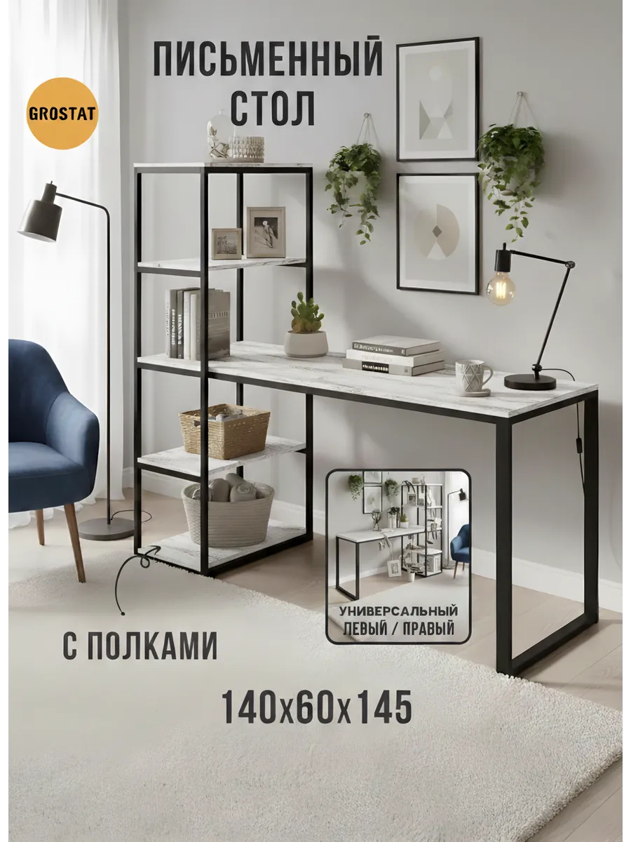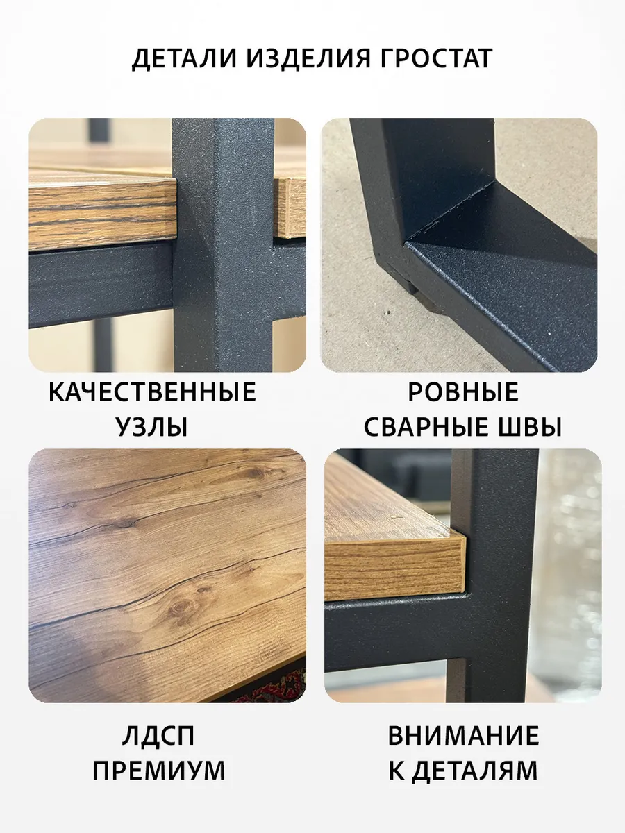 Металлическая конструкция выполнена из профильной трубы 40х20 мм и 20х20 мм, что позволяет выдерживать нагрузку 180 кг, стол так же усилен траверсой под самой столешницей для дополнительной устойчивости. Столешница изготовлена из высококачественного ЛДСП, специальное ламинированное покрытие делает ее ударопрочной и не царапающейся, а также защищает от влаги. На широкой столешнице можно свободно разместить ноутбук, настольную лампу, письменные принадлежности и другие предметы, необходимые для работы.