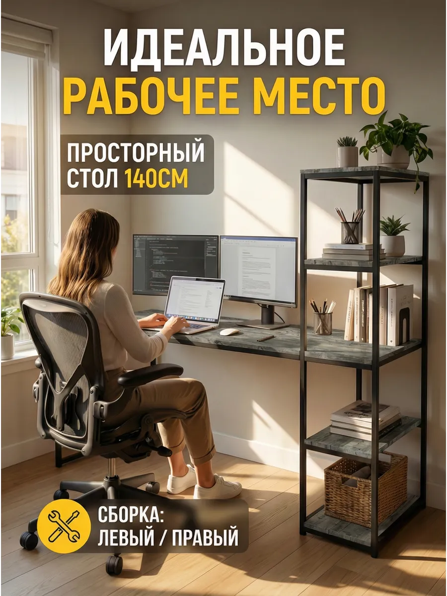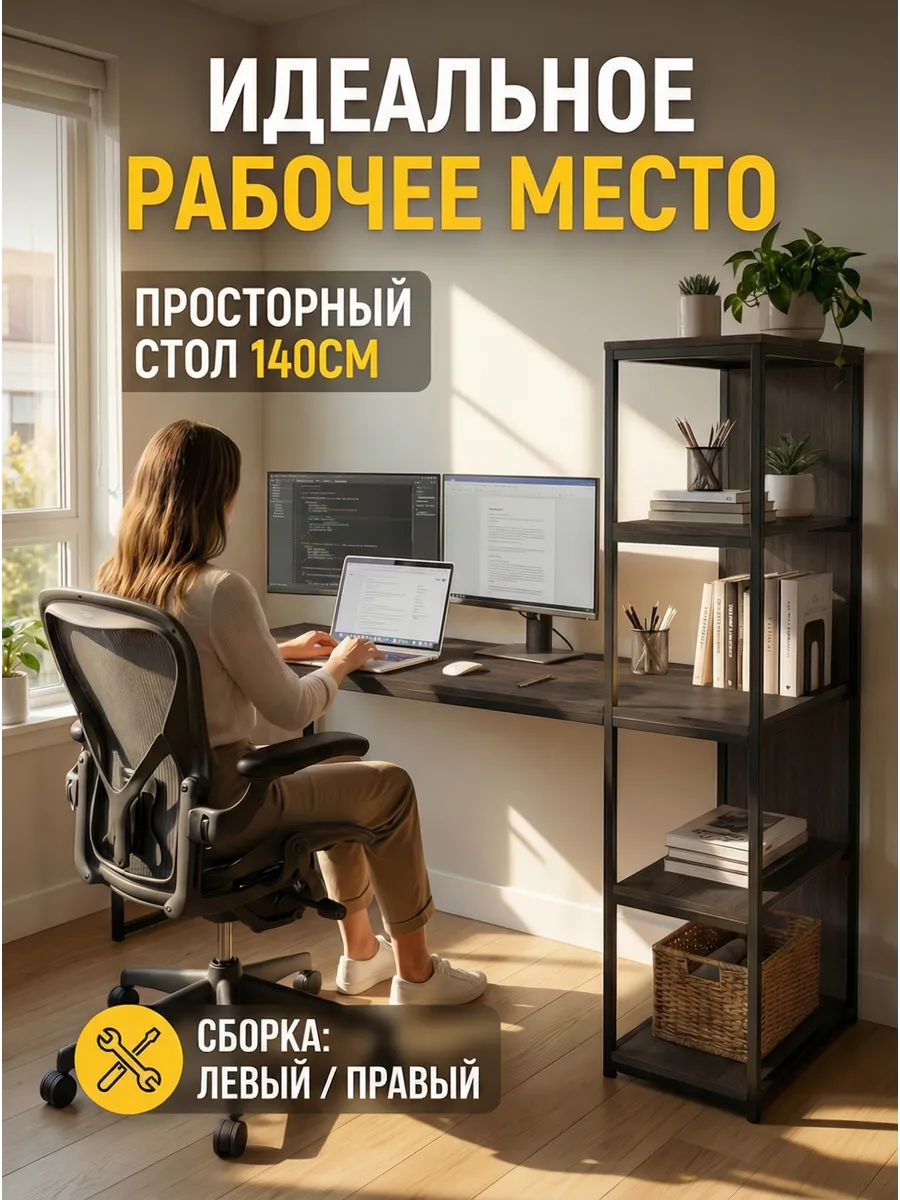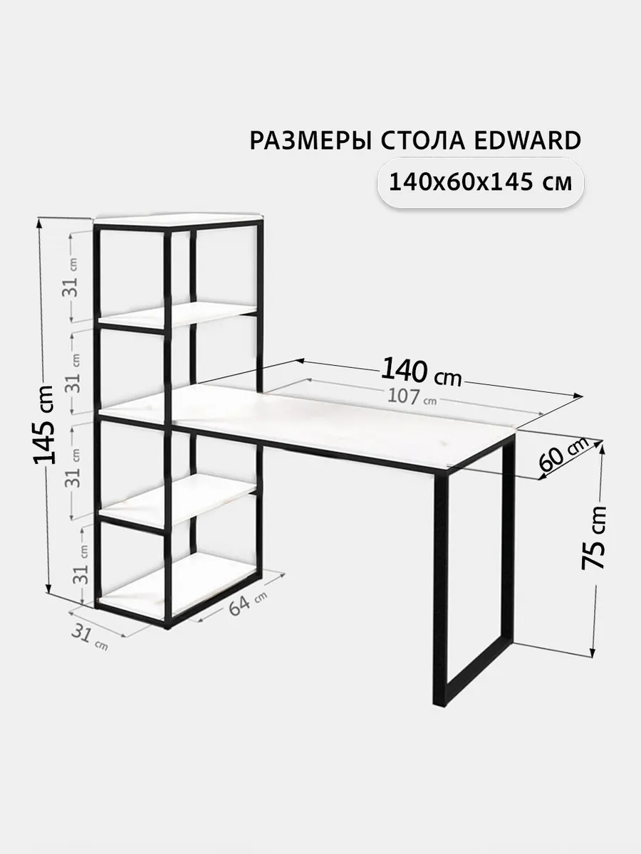 Письменный стол Edward изготовлен в стиле LOFT. Классическая модель компьютерного стола сочетает в себе оригинальный дизайн, практичность и качество. Стол идеально подойдет для работы и учебы, как письменный стол для школьника, парта для школьника, стол офисный, модуль для ресепшена и для организации домашнего рабочего пространства. Универсальная конструкция компьютерного стола позволяет менять расположение стеллажа на левую и на правую сторону.