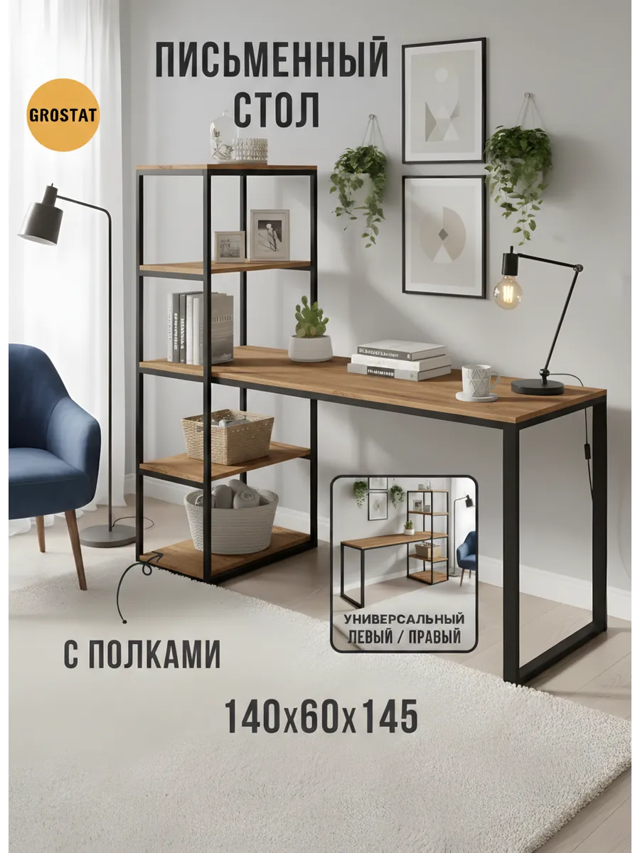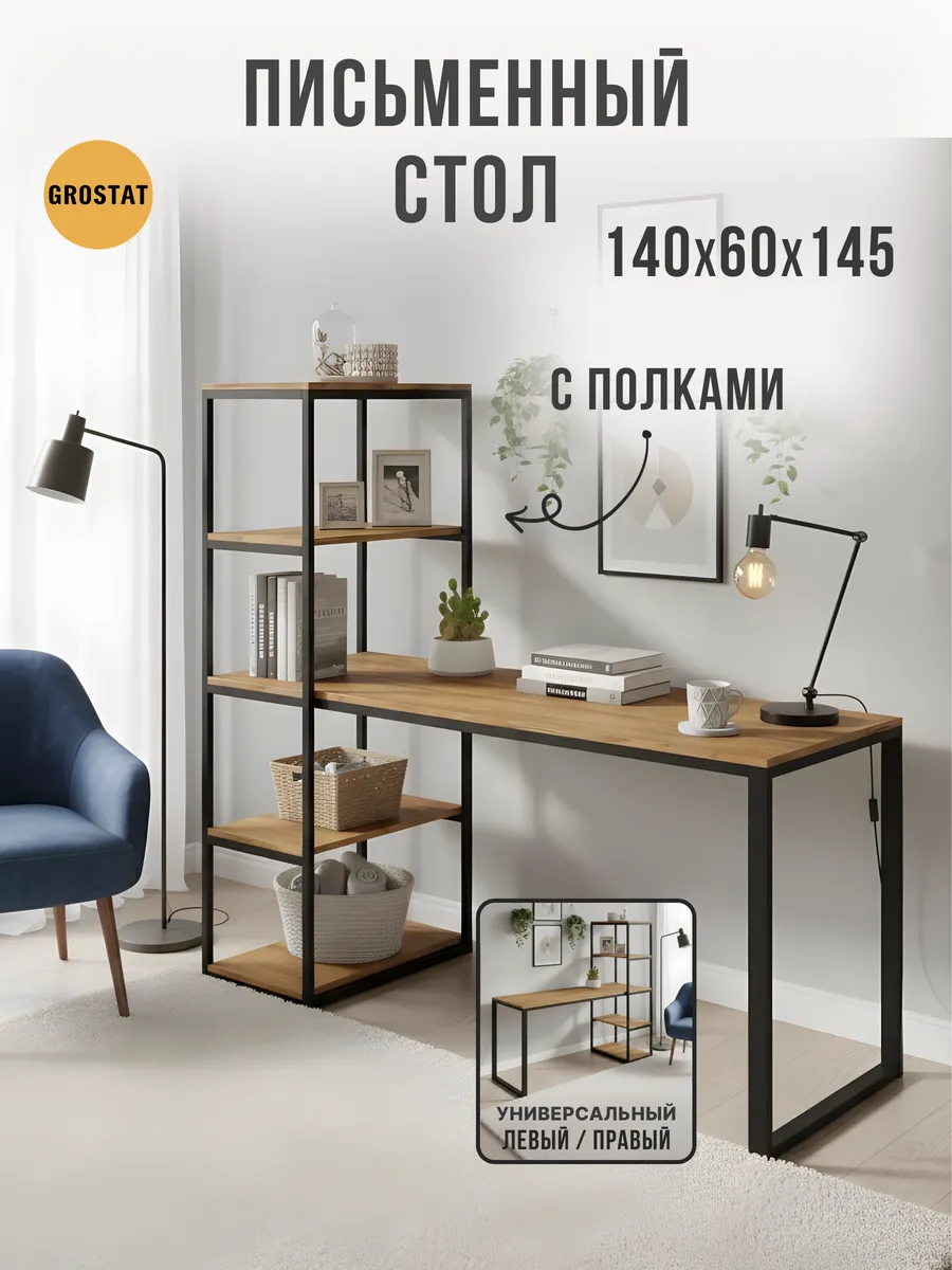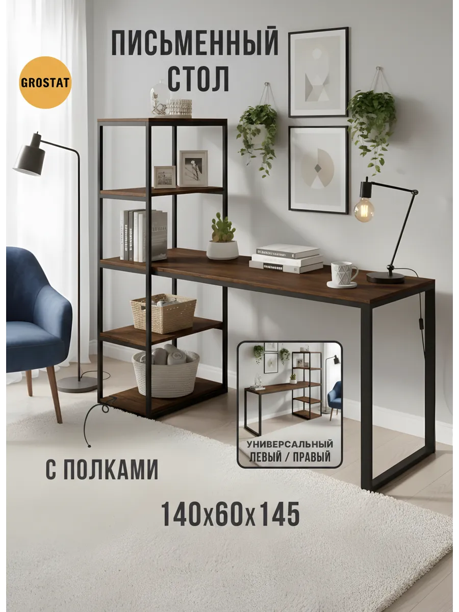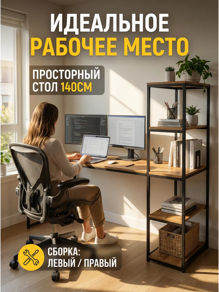 Письменный стол Edward изготовлен в стиле LOFT. Классическая модель компьютерного стола сочетает в себе оригинальный дизайн, практичность и качество. Стол идеально подойдет для работы и учебы, как письменный стол для школьника, парта для школьника, стол офисный, модуль для ресепшена и для организации домашнего рабочего пространства. Универсальная конструкция компьютерного стола позволяет менять расположение стеллажа на левую и на правую сторону.