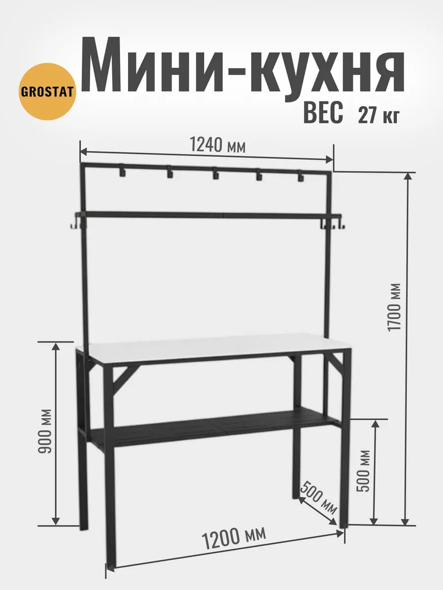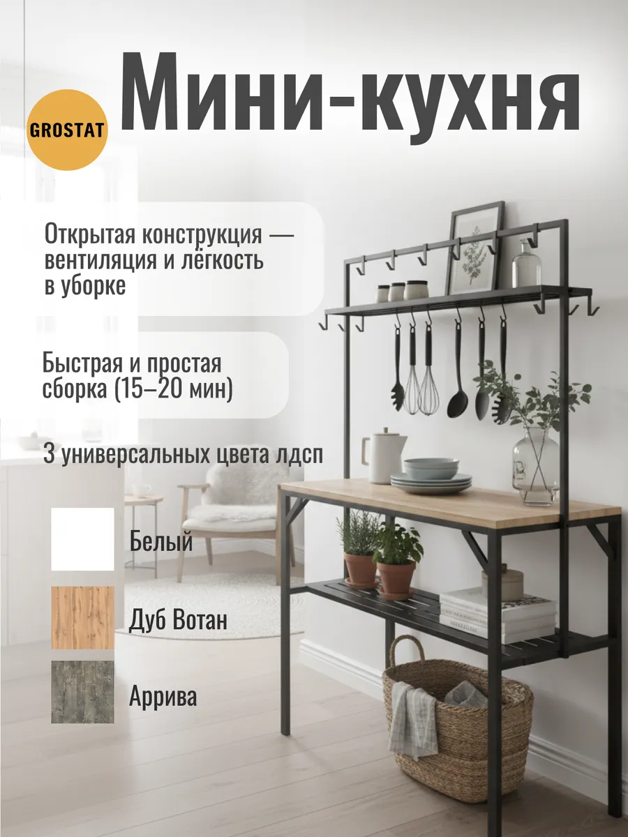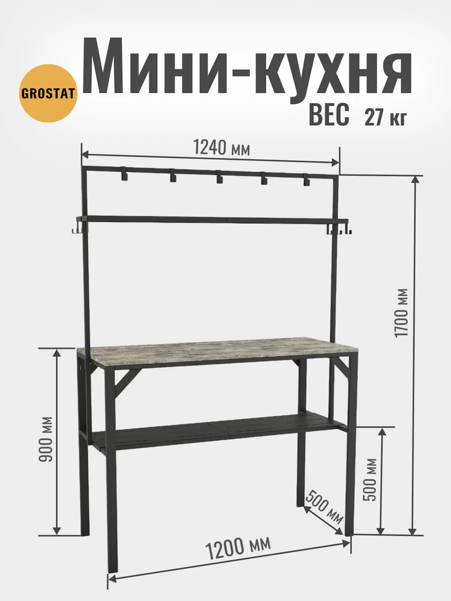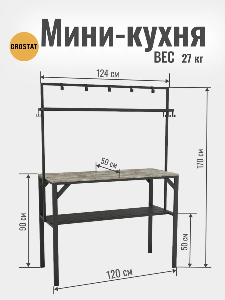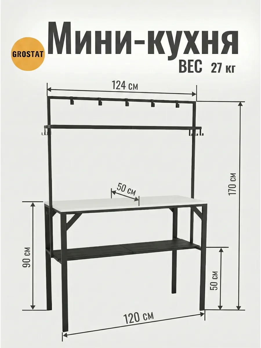 Большая рабочая поверхность отлично подходит для приготовления еды, сервировки обедов, рукоделия, шитья, пересадки растений и других бытовых задач. Под столешницей расположены удобные полки для хранения посуды, кухонной утвари и садового инвентаря, а над столешницей — дополнительные открытые полки и металлические крючки для аксессуаров, полотенец, садовых инструментов или швейных принадлежностей.