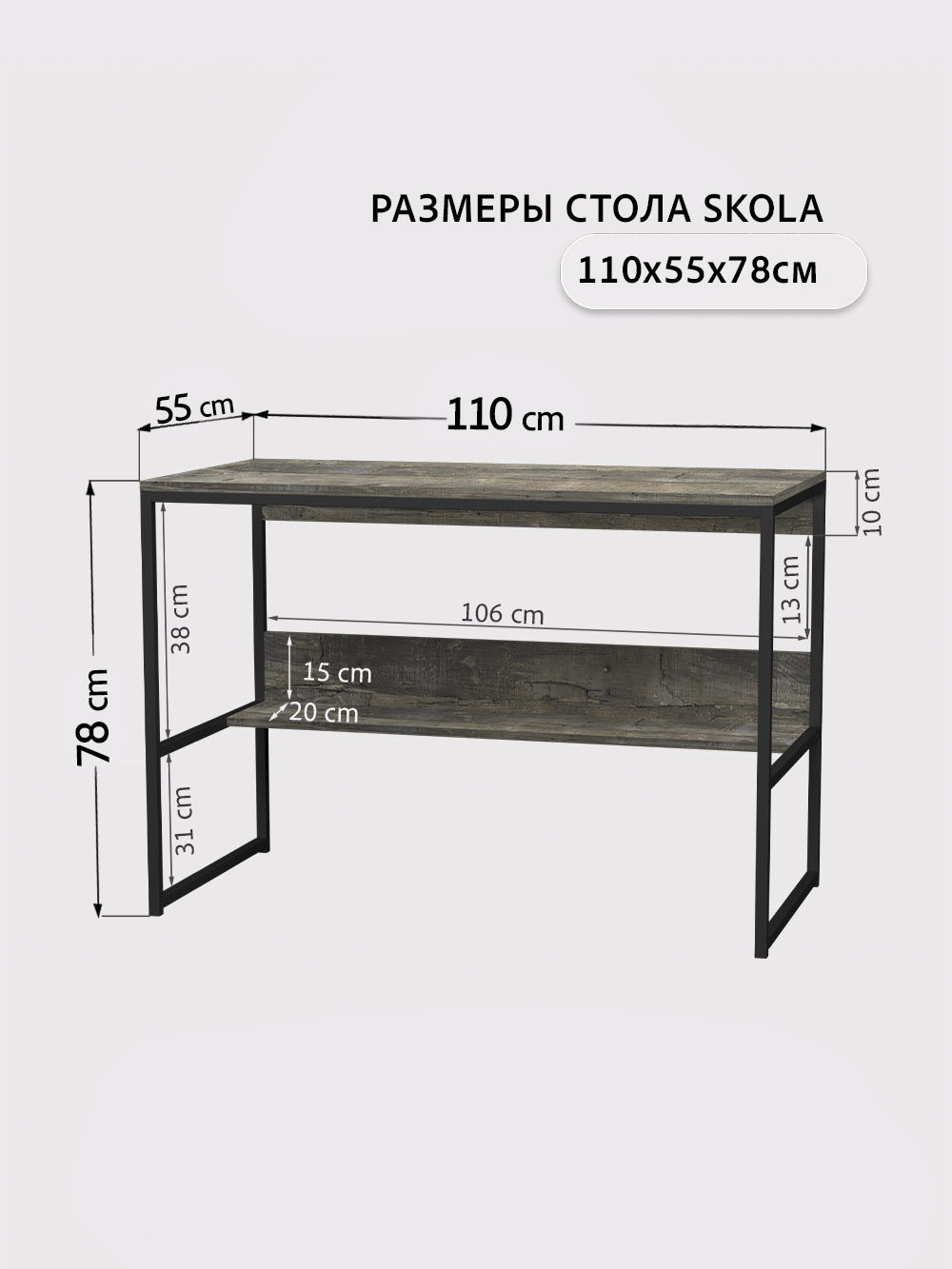 Письменный стол SKOLA - это идеальное дополнение для вашего дома или офиса. Этот универсальный письменный стол станет отличным рабочим местом как для школьника, так и для взрослого человека. Он выполнен в стиле мебель лофт, что позволяет ему гармонично вписаться в любой интерьер квартиры или дома. Стол компьютерный прекрасно подойдет для установки ноутбука или компьютера, обеспечивая комфортное пространство для работы.