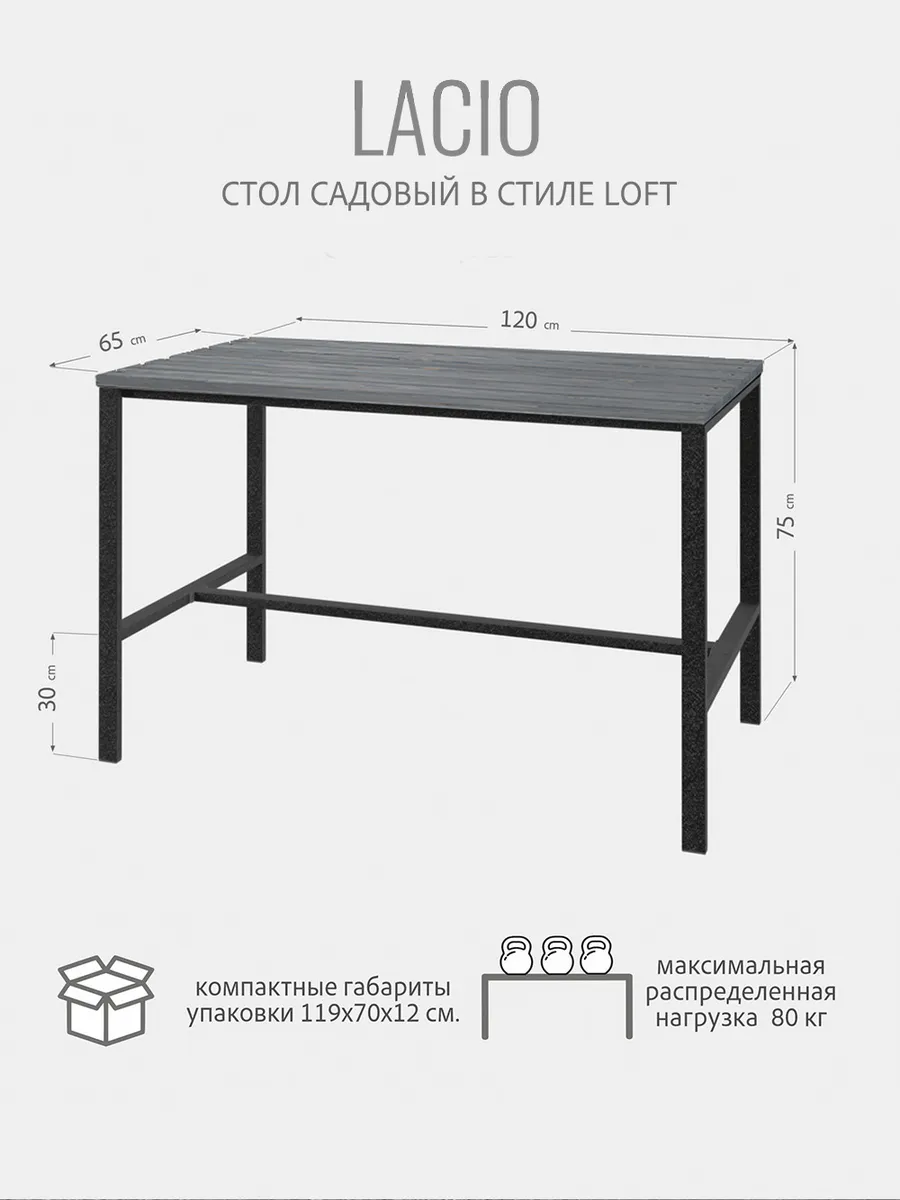 Стол садовый LACIO - идеальное решение для дома, для дачи в стиле лофт с легкостью впишется в интерьер вашего участка. Садовая мебель на дачном участке незаменима при оборудовании комфортного места отдыха на свежем воздухе. Этот уютный предмет мебели станет отличным дополнением к вашему загородному участку. С его помощью вы сможете создать комфортное пространство для отдыха и бесед с близкими. Садовый стол изготовлен из качественных материалов, что обеспечивает ему надежность и долгий срок службы. Он легко впишется в ландшафт вашего сада, придавая ему особый шарм.