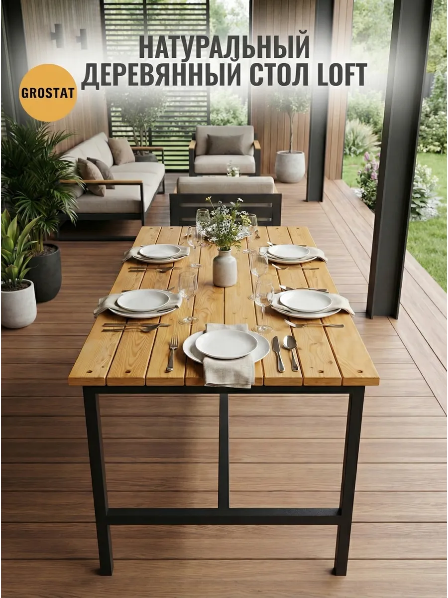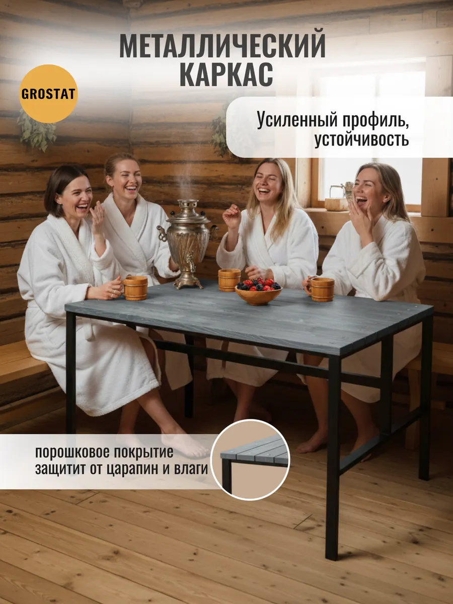 Стол изготовлен из профильной трубы 40х20 мм, имеет 2 опоры, металлические траверсы которые соединяют между собой опоры для жесткости и надежности. Стол облицован строганными досками. Дерево шлифовано, но НЕ ОКРАШЕНО, для того чтобы вы могли на свой вкус выбрать цвет. Порошковое окрашивание металлической конструкции защищает стол от ржавчины, плесени и других негативных внешних воздействий. Благодаря этому покрытию изделие выдерживает высокую влажность, отрицательные и высокие температуры. Данный стол возможно использовать как на улице, так и дома.