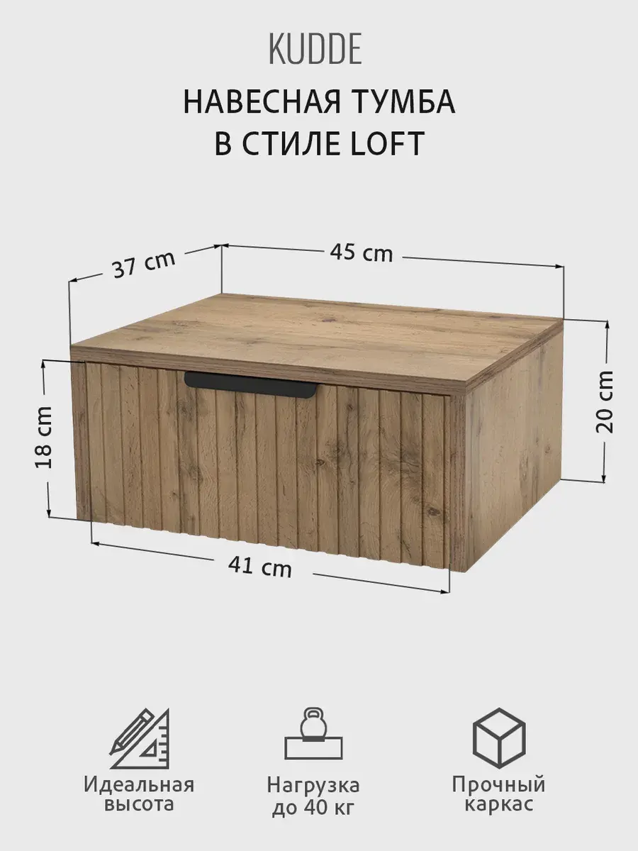 Представляем вам навесной туалетный столик Kudde, которая идеально подойдет для вашей комнаты. С его элегантным дизайном и цветом дуб вотан, он добавит тепла и стиля в любое помещение. Размеры 45х37х20 см делают этот столик компактным и функциональным, что позволяет использовать его даже в ограниченном пространстве.