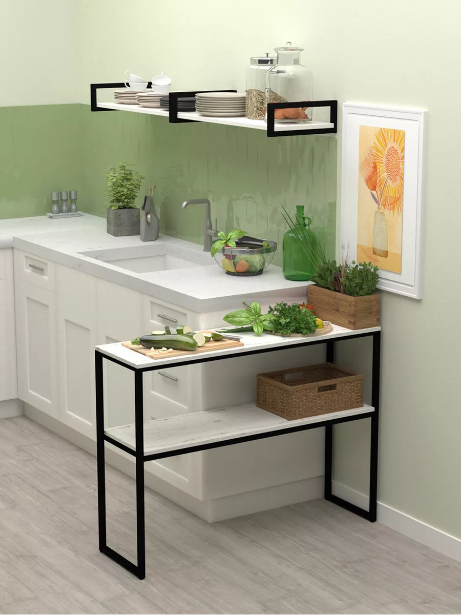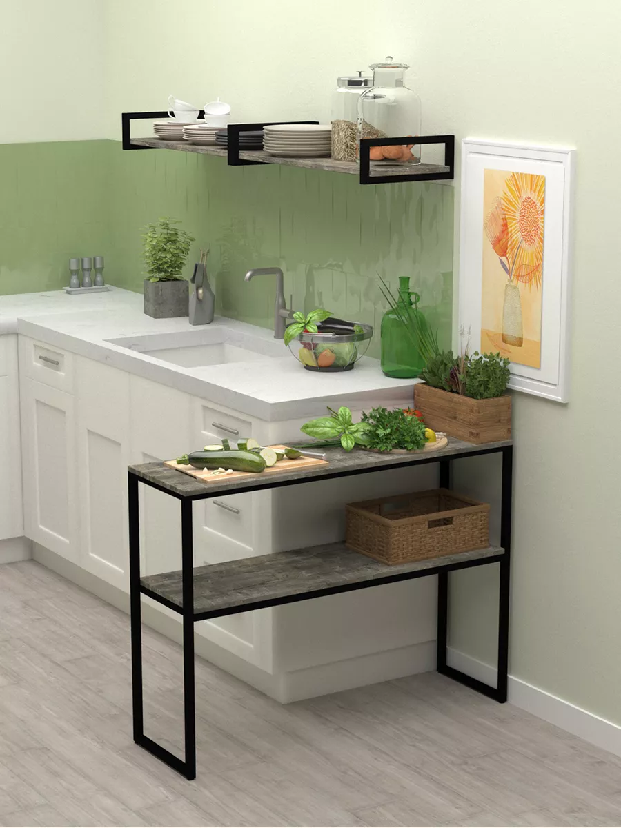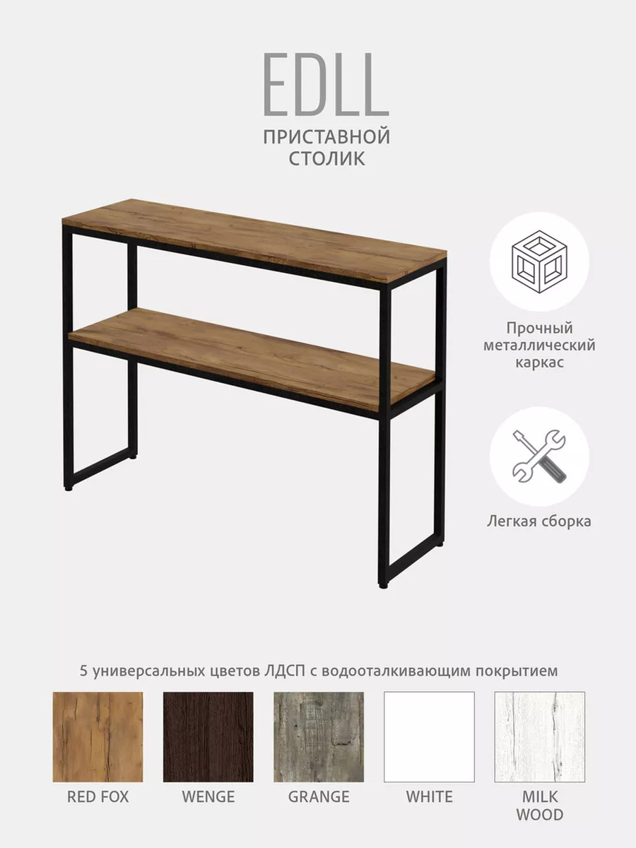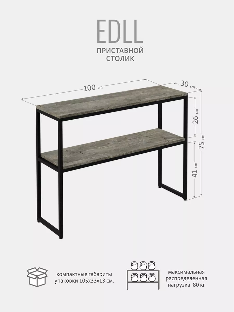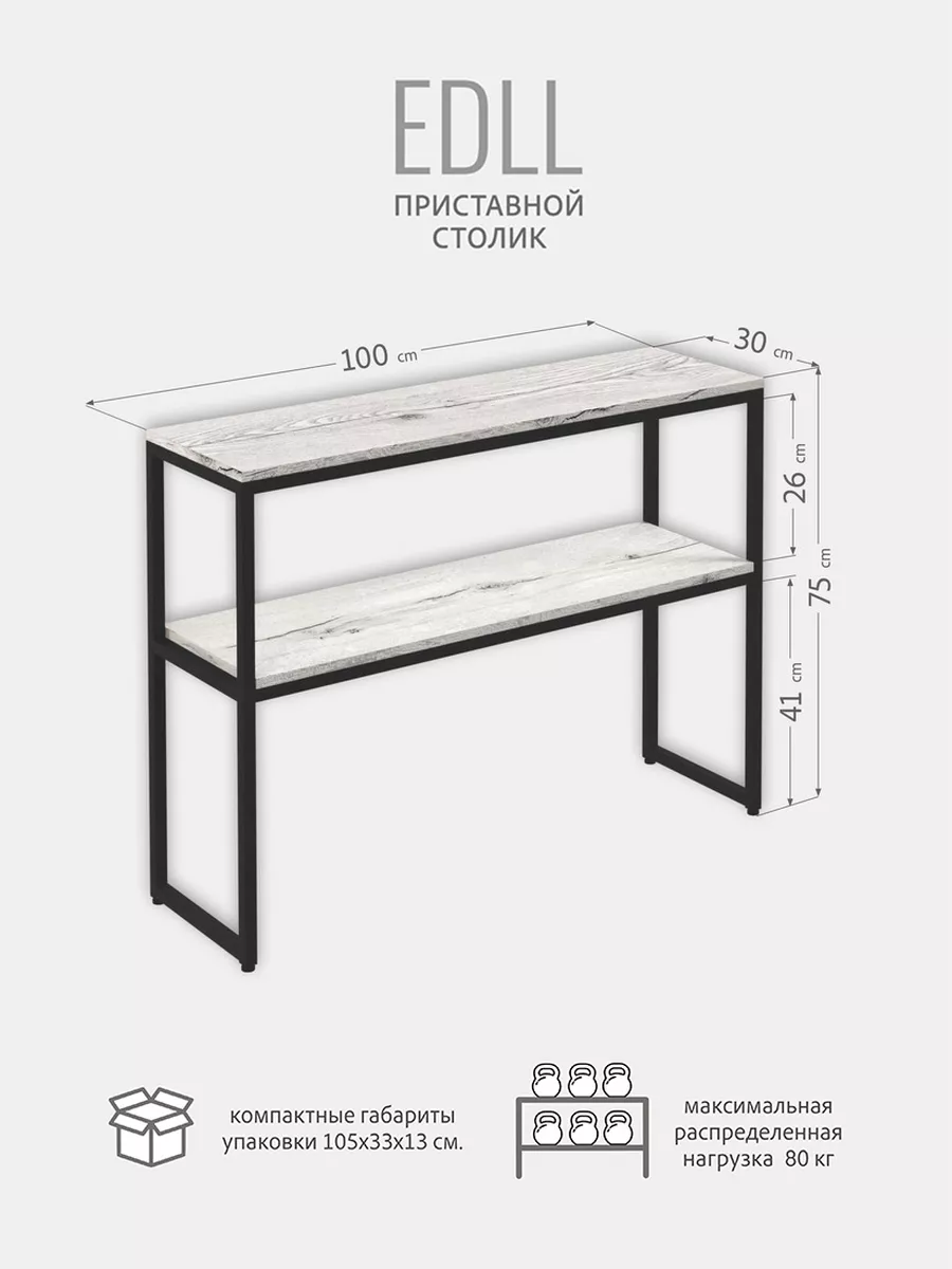 Стол-консоль с двумя уровнями обладает достаточной вместительностью, при этом не занимает большую площадь. Стеллаж EDLL в скандинавском стиле будет весьма удачным решением для создания интерьера в стиле лофт, консольный стол отлично сочетается с любой современной мебелью.
