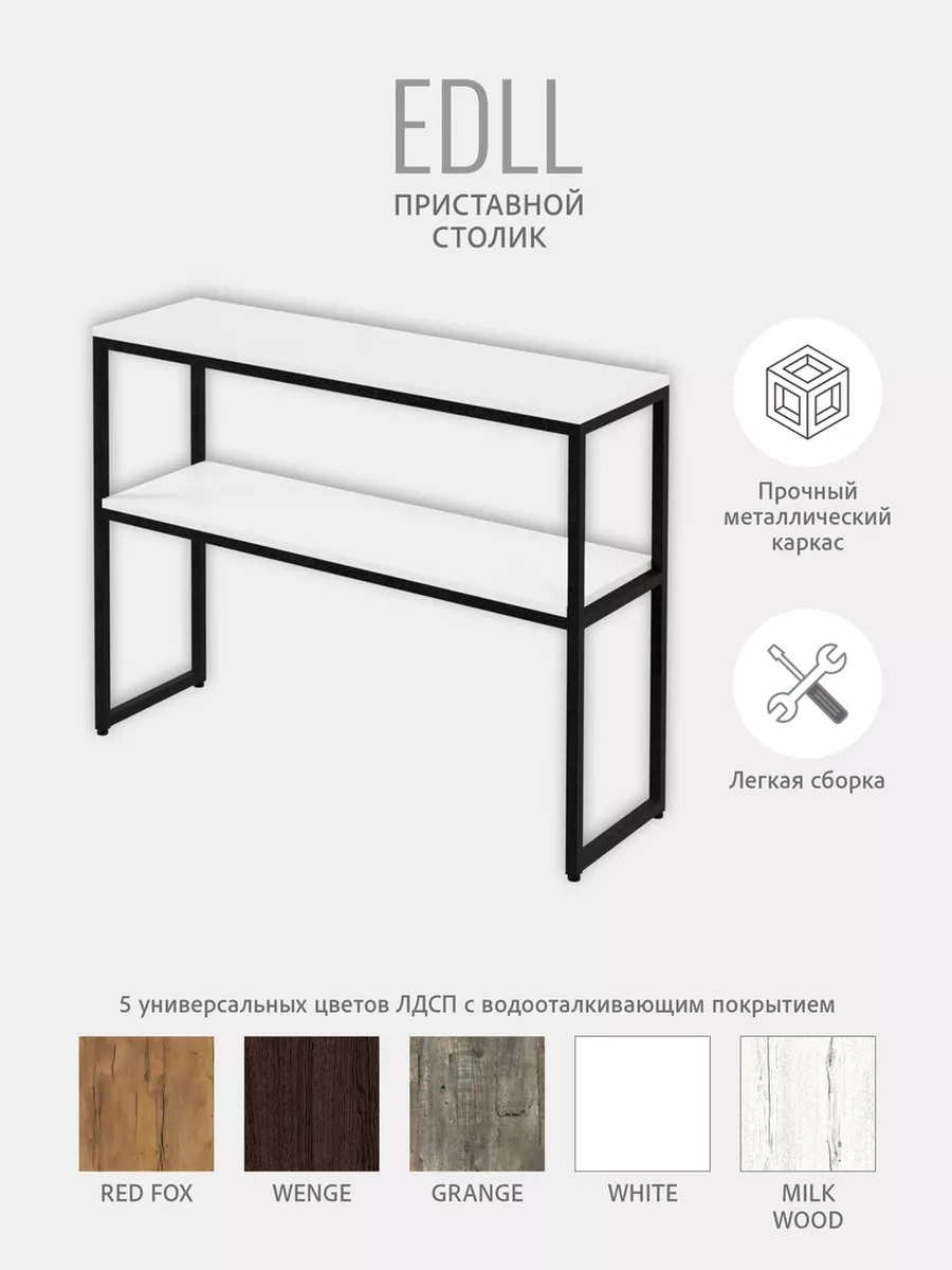 Консольный столик EDLL изготовлен в современном стиле LOFT. Внешний вид туалетного столика спроектирован простыми прямыми линиями для многофункционального применения в любой зоне вашей квартиры, дома, офиса, магазина или салона красоты, данная модель идеально впишется в интерьер и осовременит стильный дизайн, создаст атмосферу уюта и комфорта.