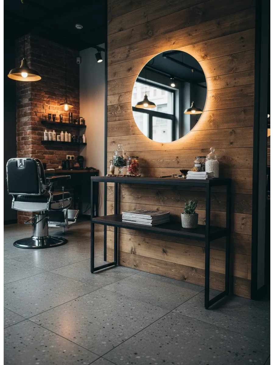 С современным консольным столиком лофт прекрасно сочетается мебель нашего производства: