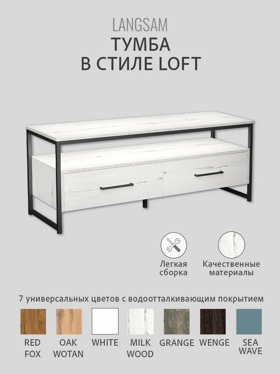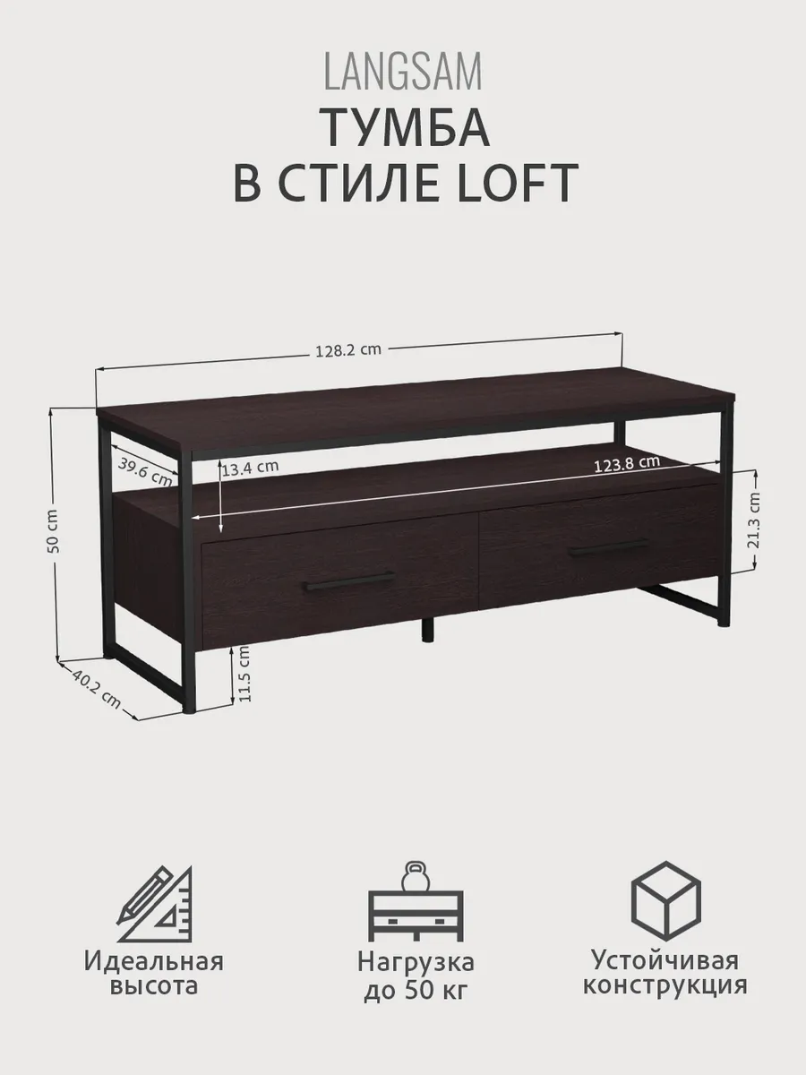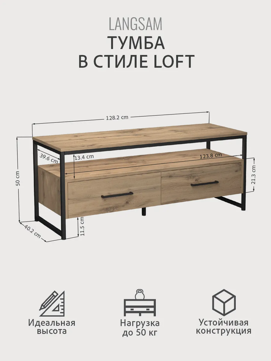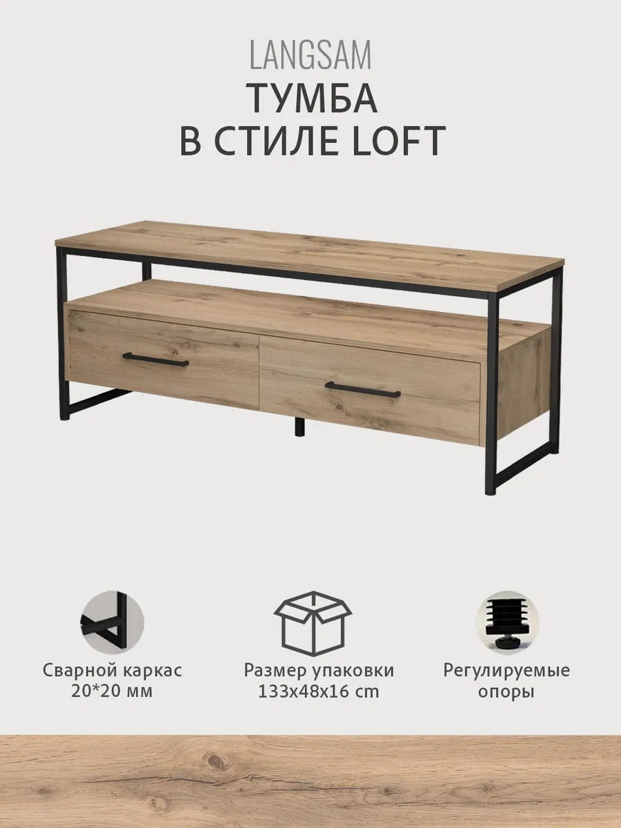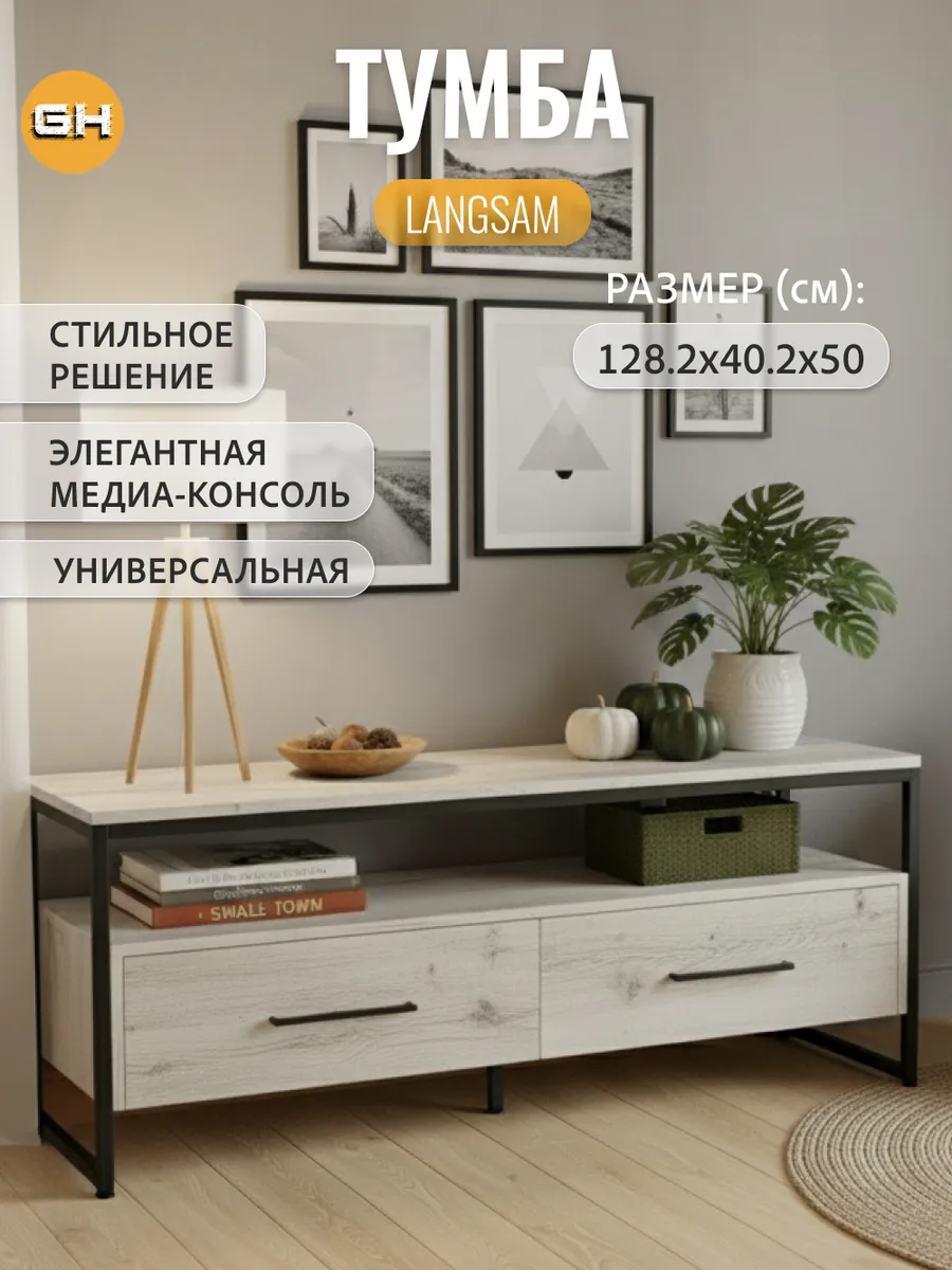 Тумба под телевизор LANGSAM станет отличным дополнением для вашего дома. Она сочетает в себе функцию комода с ящиками и низкого стеллажа, что делает её универсальной мебелью для любого помещения. Вы можете использовать её не только как тумбу под телевизор напольную с ножками, но и как элегантный стеллаж деревянный в прихожей.