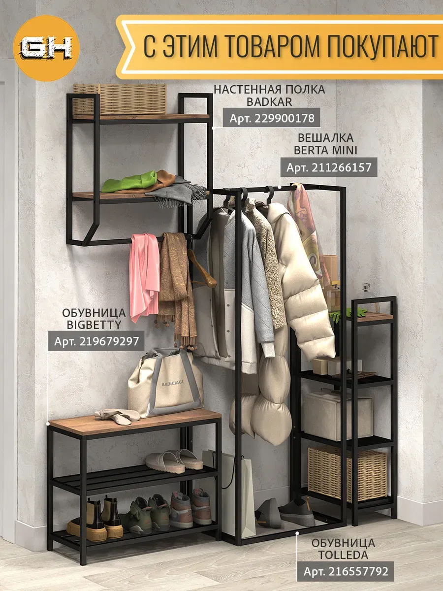Напольная вешалка в стиле лофт Berta mini создана для хранения верхней одежды, для брюк, для юбок.