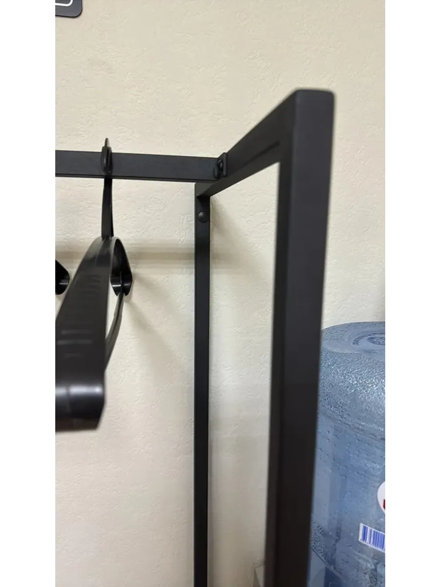 Вешалка напольная рейл для одежды достаточно компактная, при этом вмещает порядка 20 плечиков с одеждой.