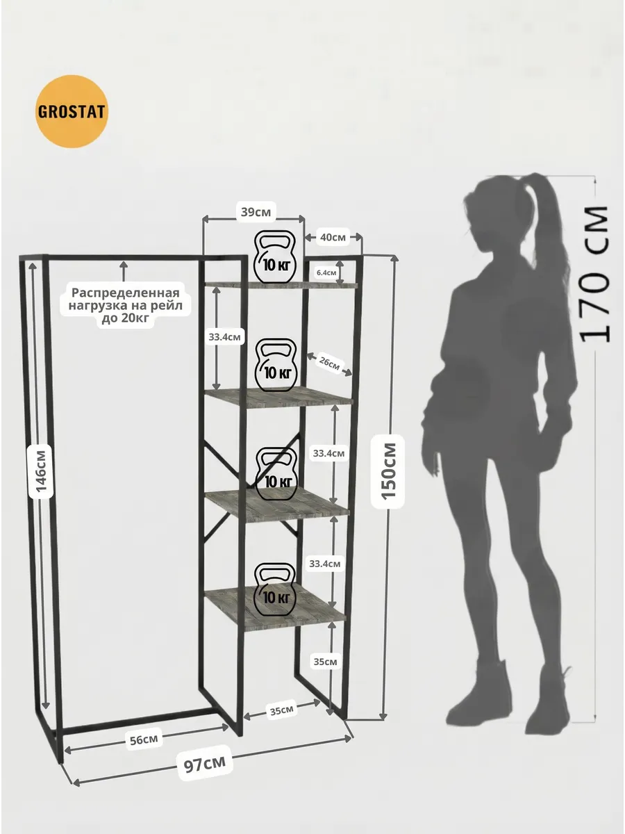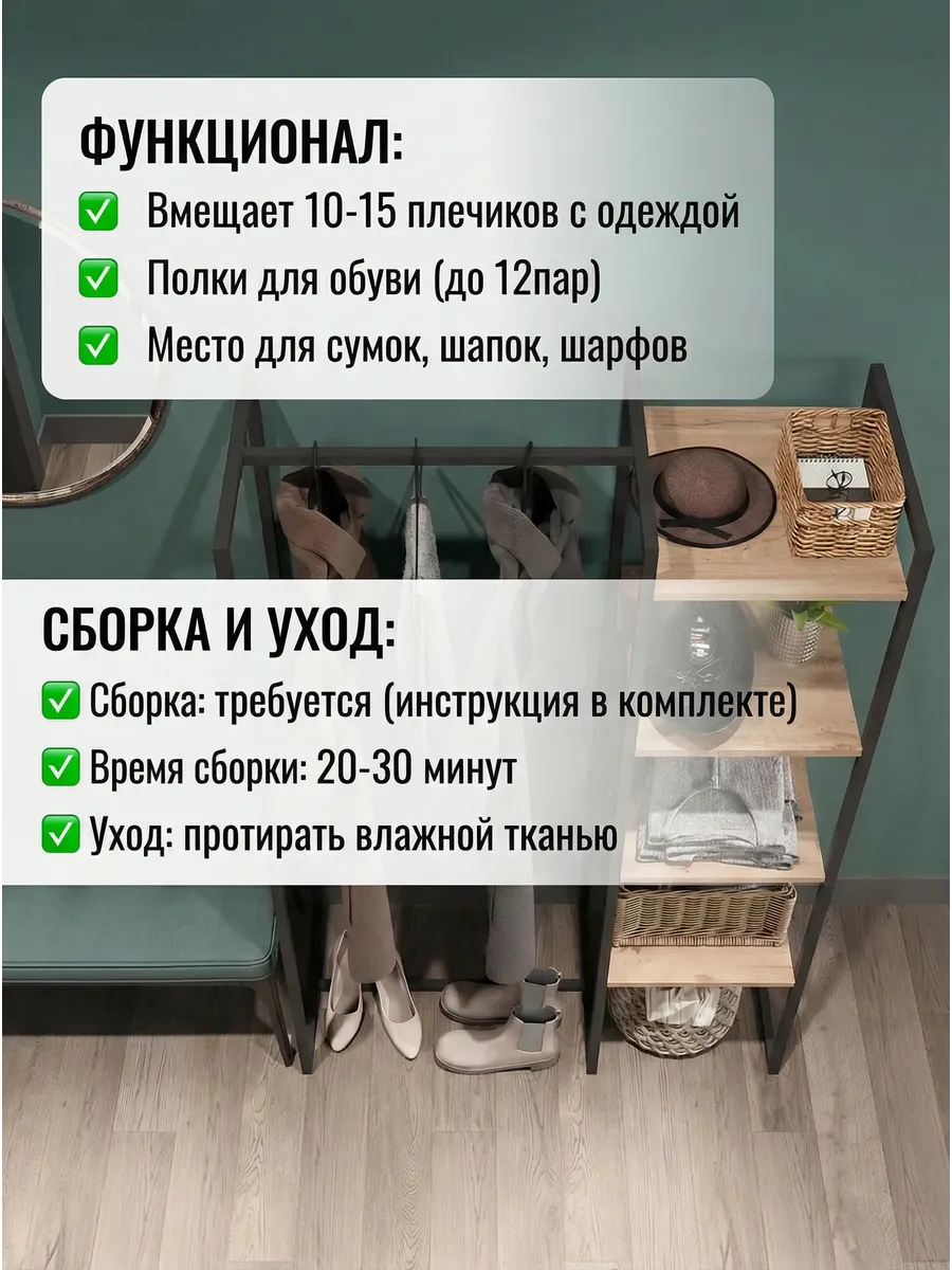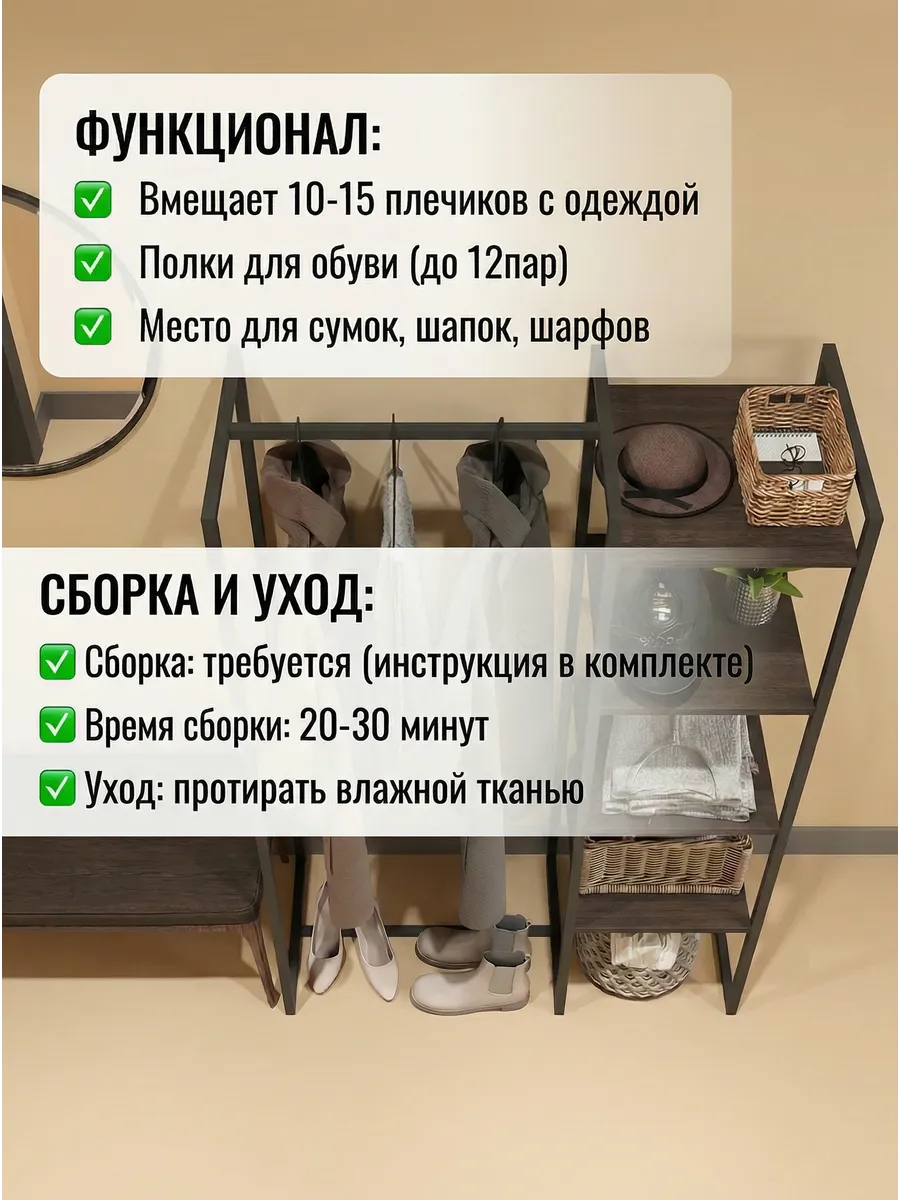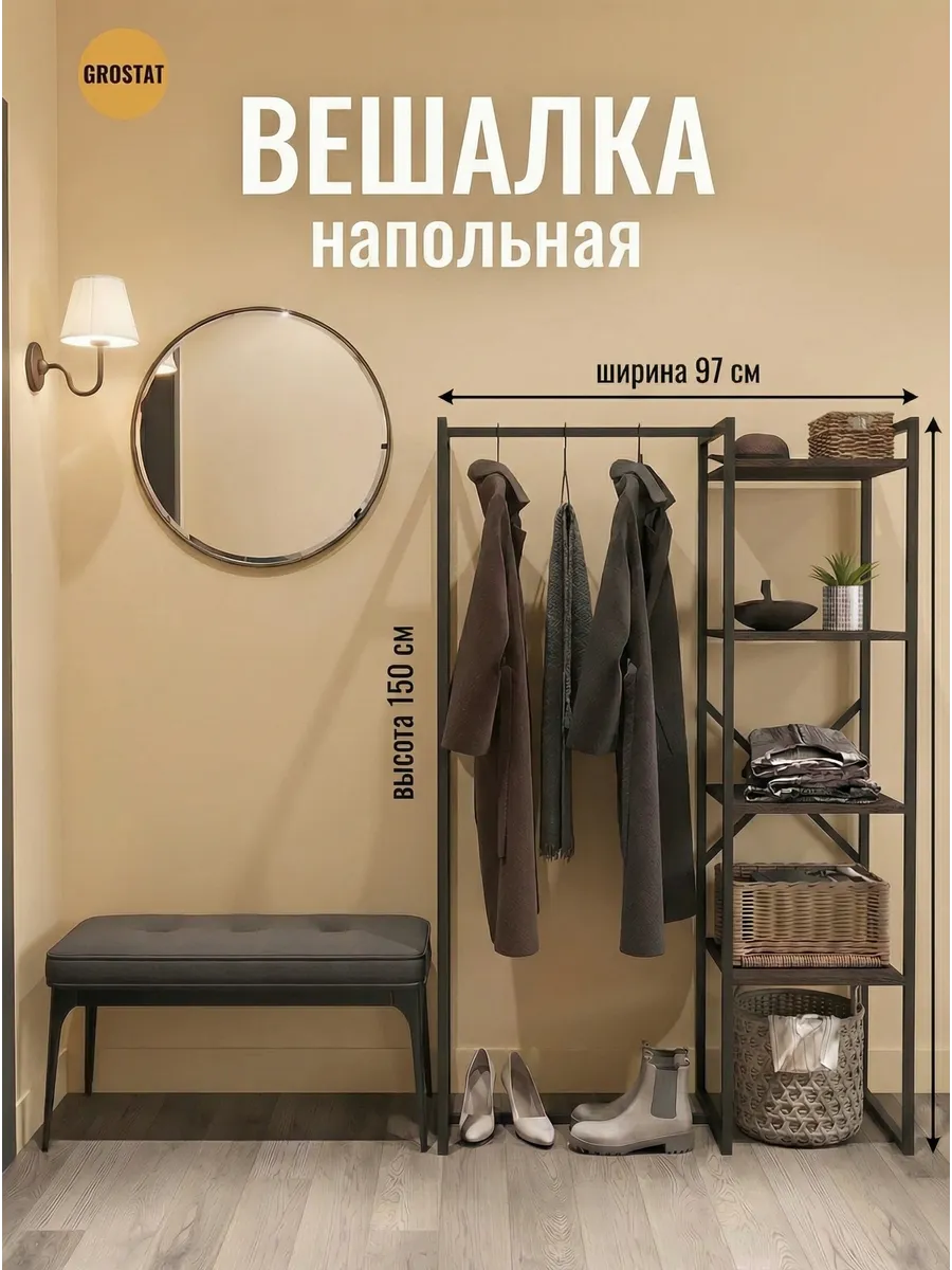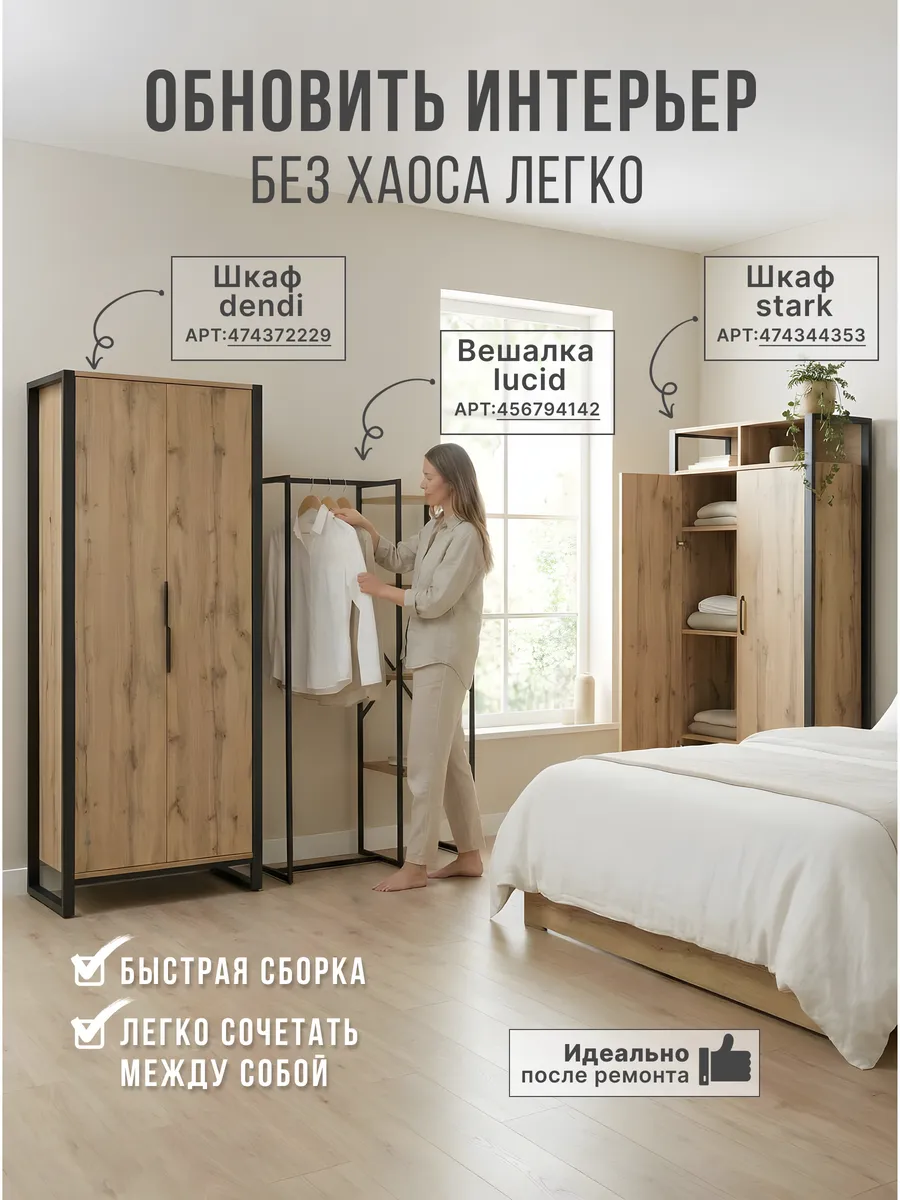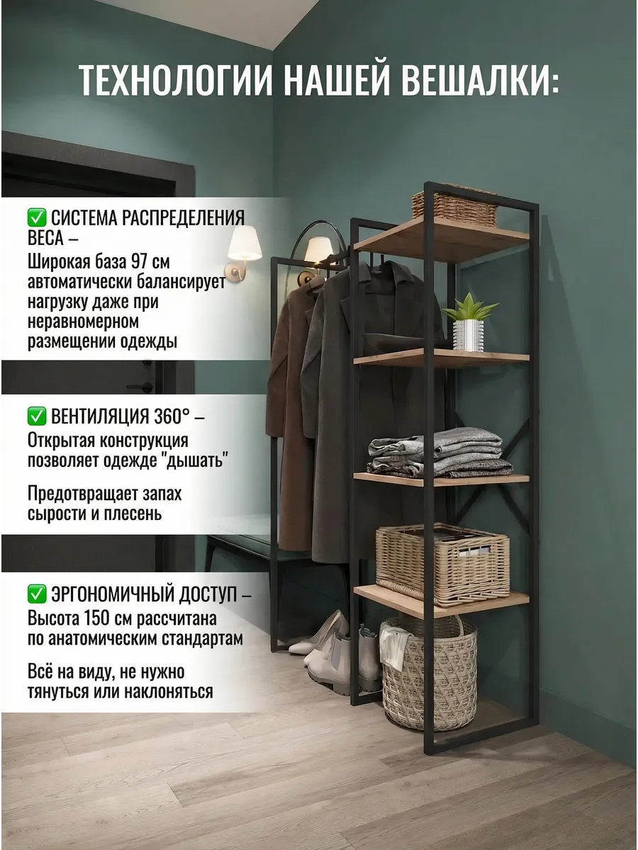 Представляем вашему внимаю напольyую гардеробную систему LUCID. Эта уникальная модель гардеробной вешалки с полками представляет собой идеальное сочетание современного дизайна, практичности и многофункциональности. Её минималистичный стиль органично вписывается в любое помещение, будь то уютная спальня, просторная гардеробная или небольшая прихожая. Разборная конструкция позволяет легко собрать изделие с помощью обычных инструментов, таких как шуруповерт и саморезы, которые идут в комплекте, что делает процесс сборки простым и быстрым. Гардеробная вешалка оснащена удобными полками, предназначенными для хранения различных вещей, начиная от повседневных аксессуаров и заканчивая обувью. Это позволяет оптимально использовать пространство и поддерживать порядок в вашем гардеробе. Кроме того, специальные рейлы в стиле лофт обеспечивают удобное размещение верхней одежды, брюк и юбок.
