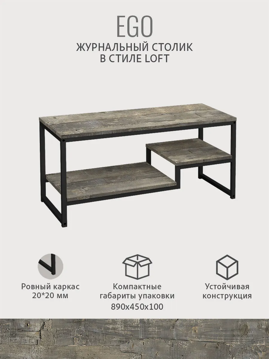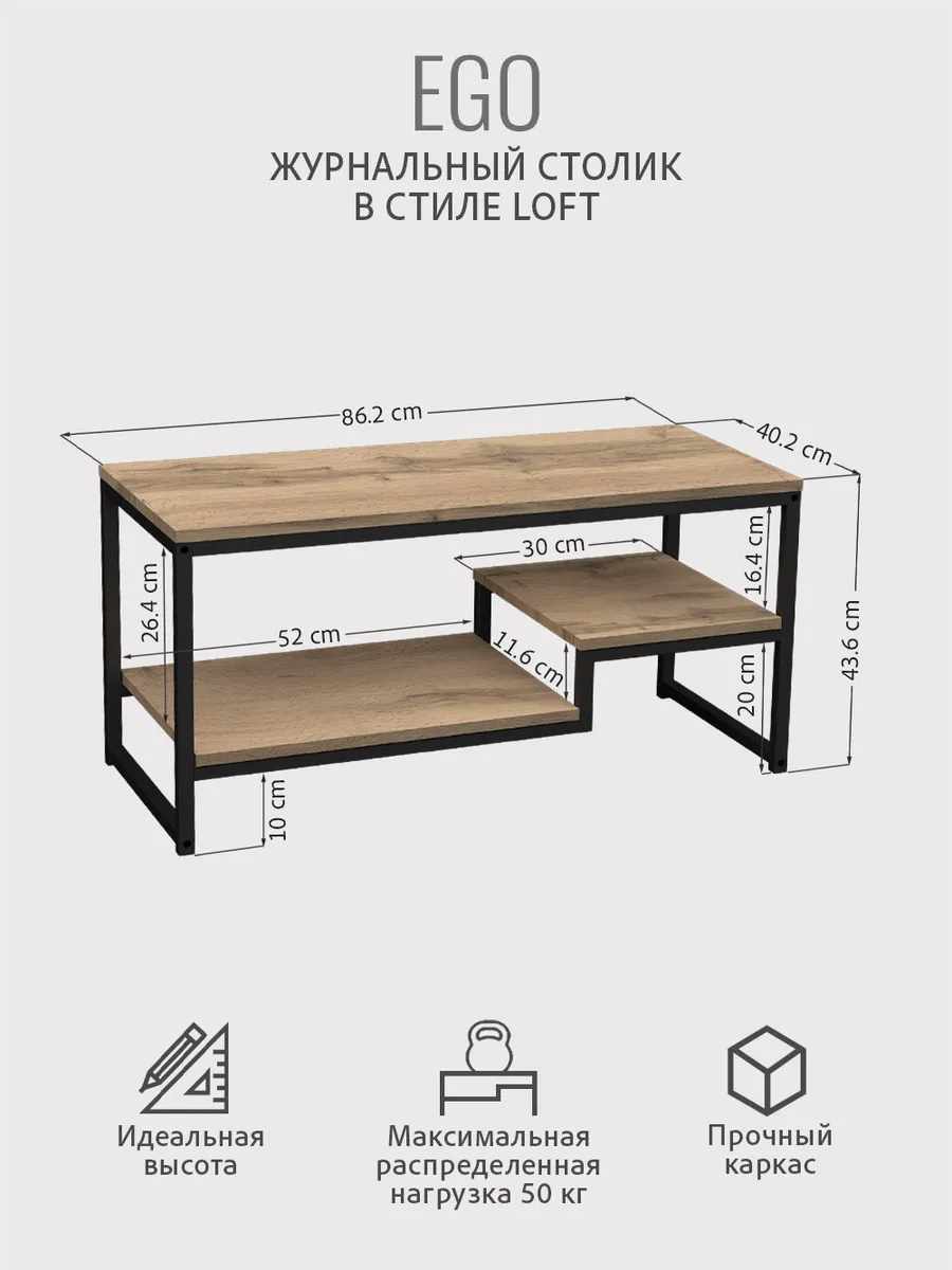 Журнальный стол серии EGO loft - гармоничный объект интерьера. Этот элемент мебели добавит штрих уюта как в гостиную, так и в кухню. Он придаст стиль лофт или скандинавский дизайн комнаты.