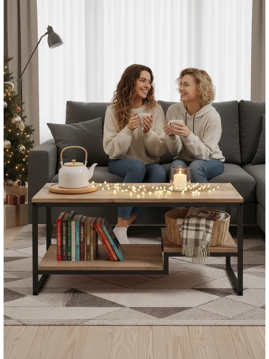 Он изготовлен из металлического профиля 20х20мм окрашенного в стойкую порошковую краску черного матового цвета, полки высокого качества ЛДСП, толщиной 16мм. Благодаря жетскому каркасу стол выдерживает высокие нагрузки до 50кг, на него можно поставить при желании аквариум, телевизор и даже использовать как тумбу - лавку в прихожую, подойдет для использования в детской комнате. Надежная упаковка стола для гостиной позволяет доставить его в целости.